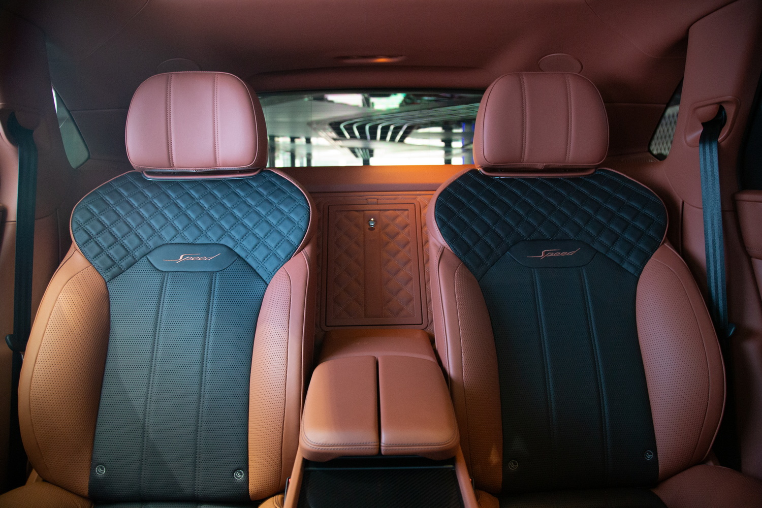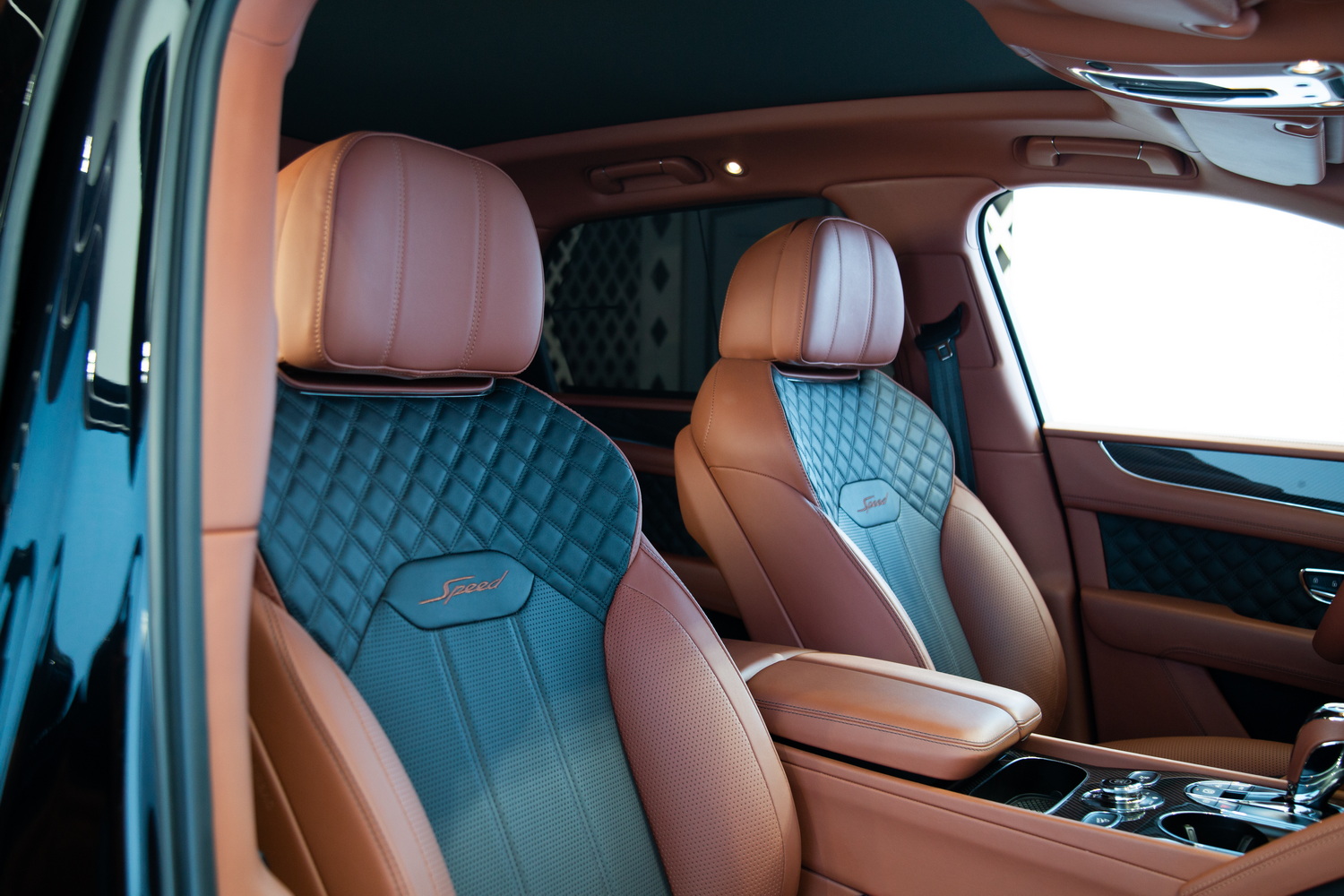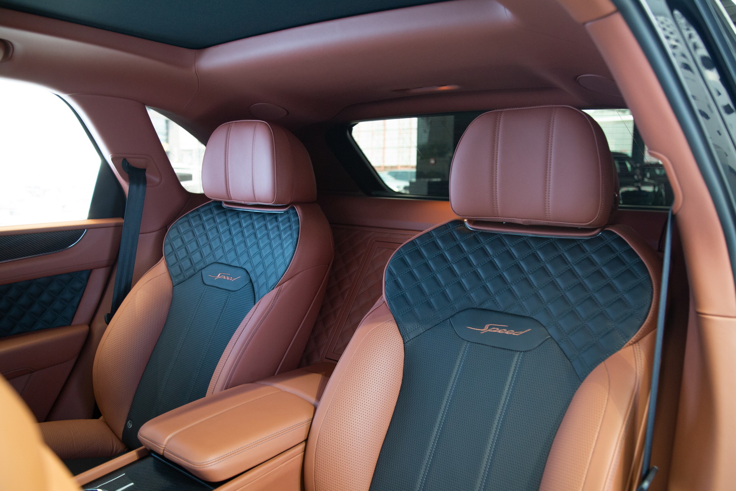 Indulge in the opulent comfort of the Bentley Bentayga Speed's tan interior, complemented by premium craftsmanship and state-of-the-art features. Experience unparalleled driving pleasure with its exceptional performance on and off the road.