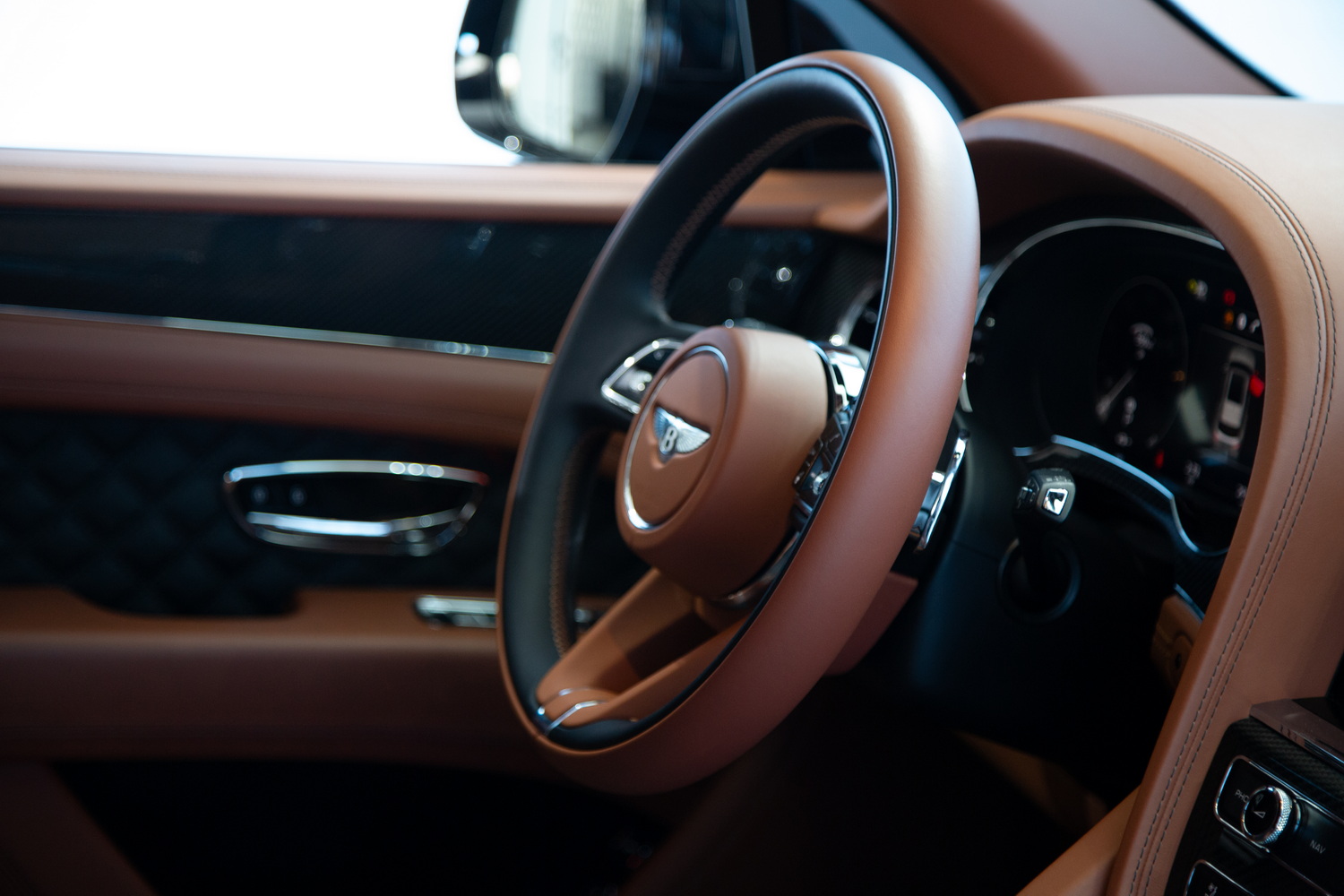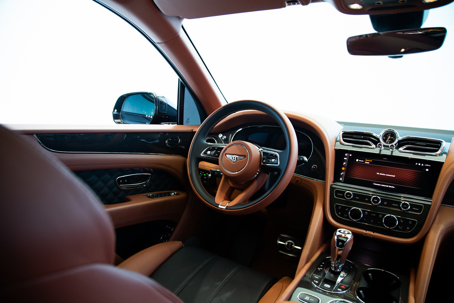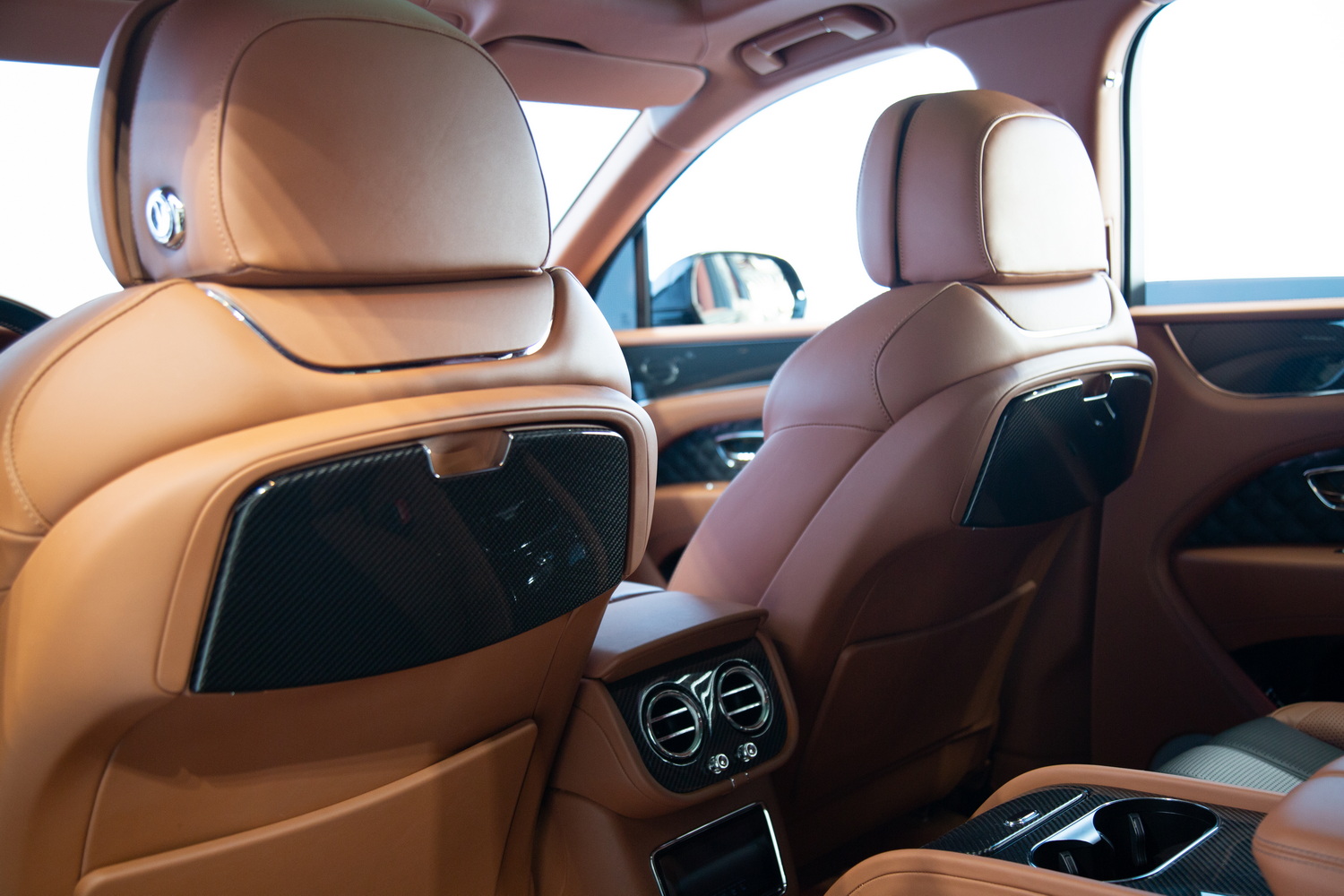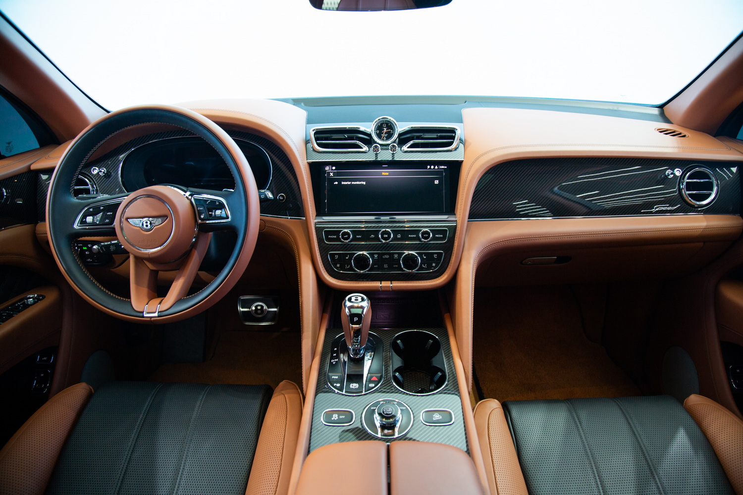 Indulge in the opulent comfort of the Bentley Bentayga Speed's tan interior, complemented by premium craftsmanship and state-of-the-art features. Experience unparalleled driving pleasure with its exceptional performance on and off the road.
