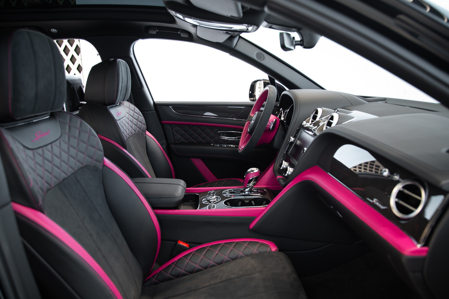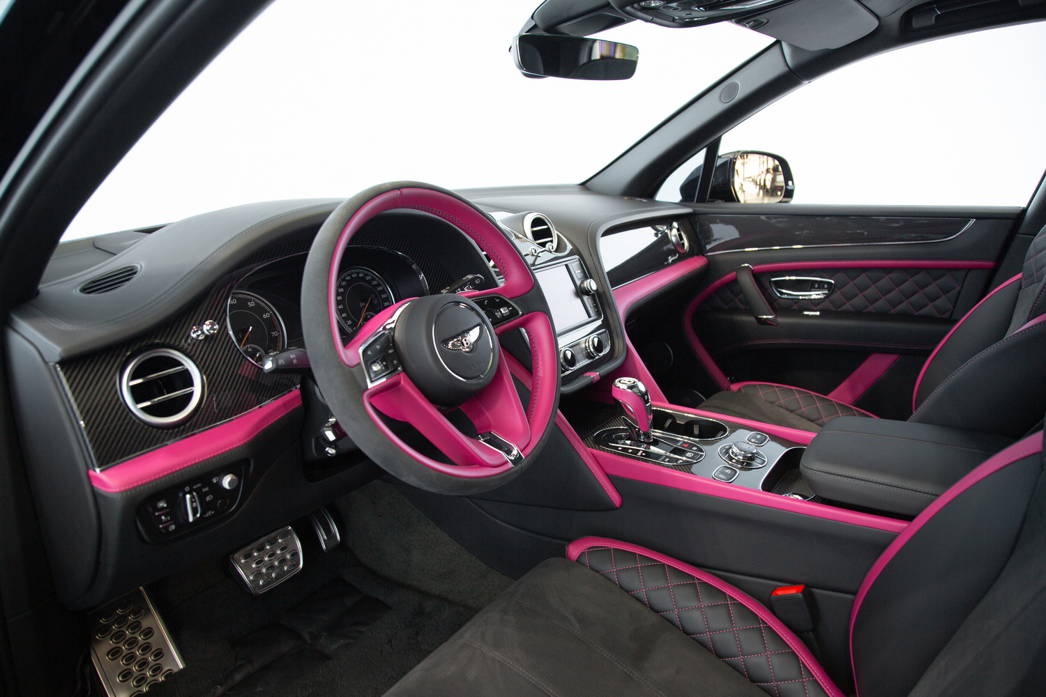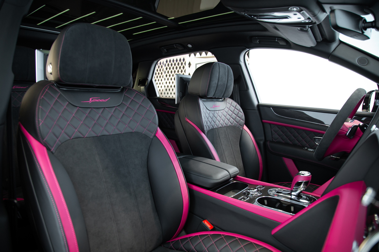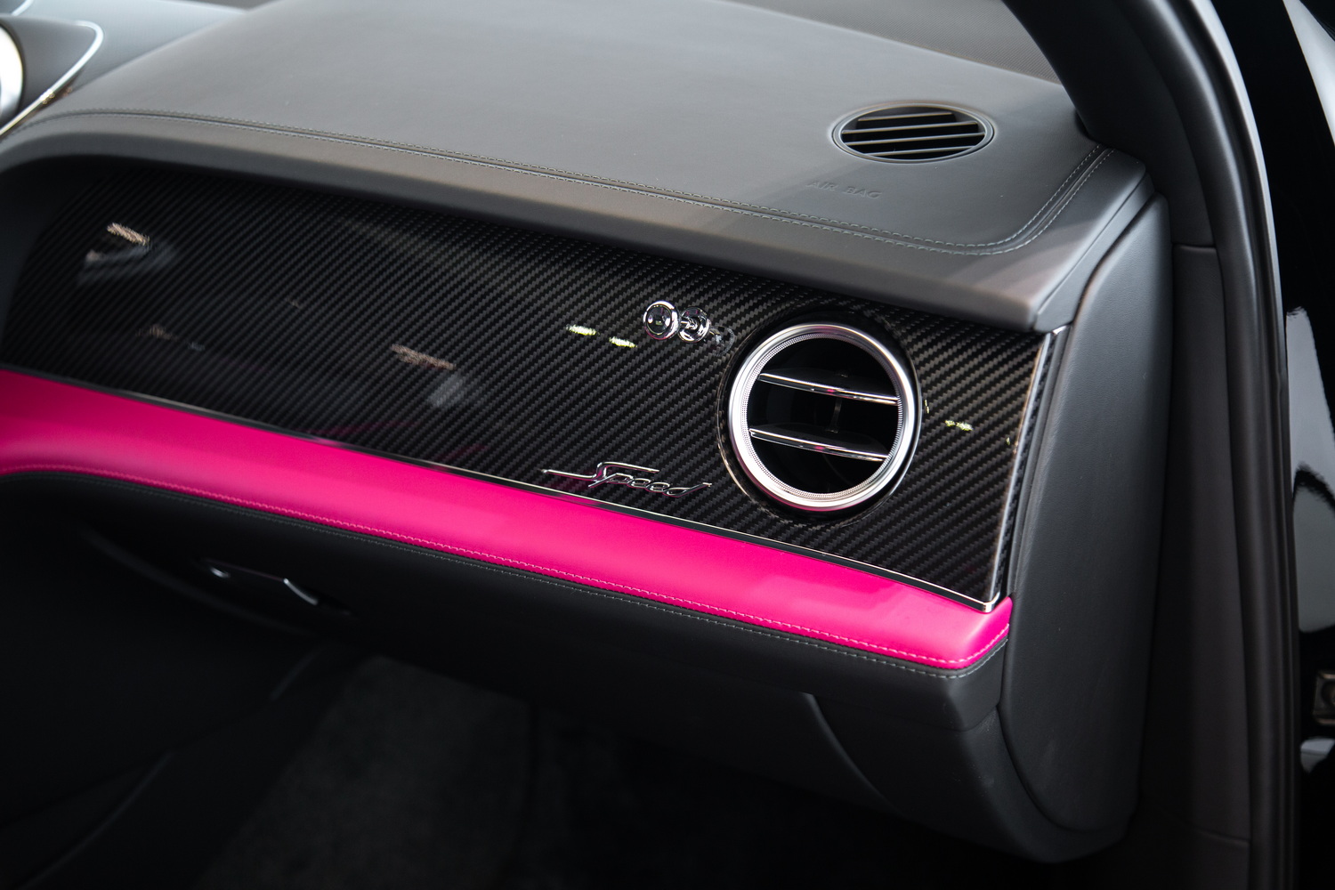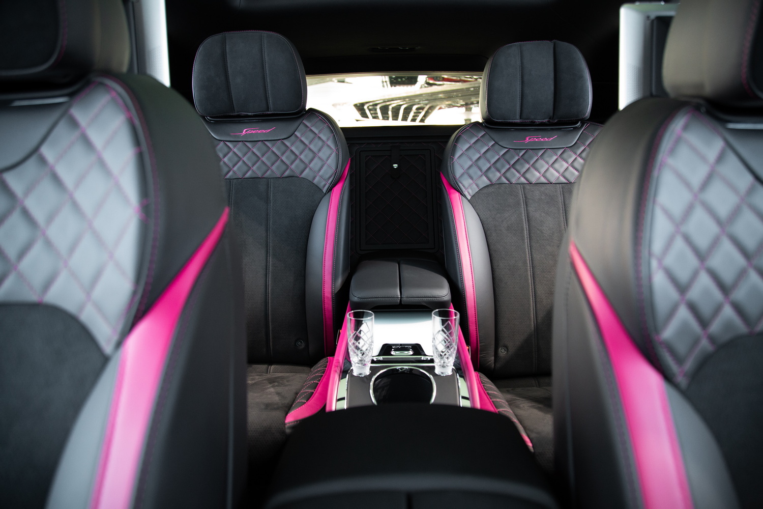 With its sleek black exterior, the 2020 Bentley Bentayga Speed exudes a commanding presence and refined elegance. The two-tone black and magenta interior creates a striking contrast, enveloping you in a world of luxurious comfort and style. Meticulously crafted with the finest materials, the cabin offers a harmonious blend of exquisite design and practicality.