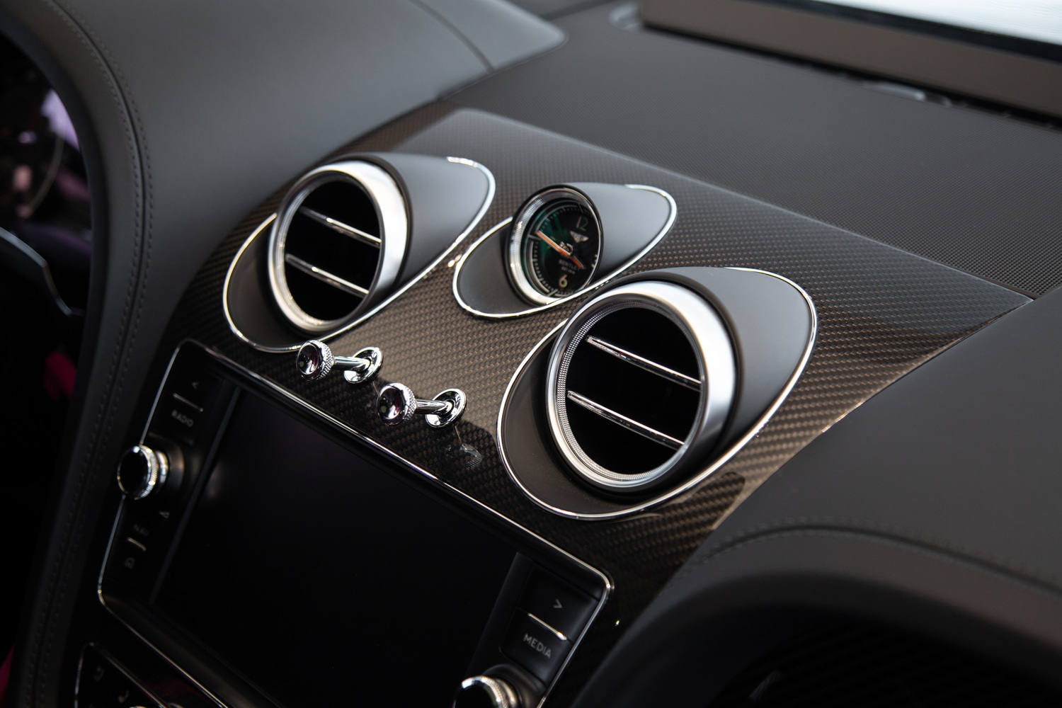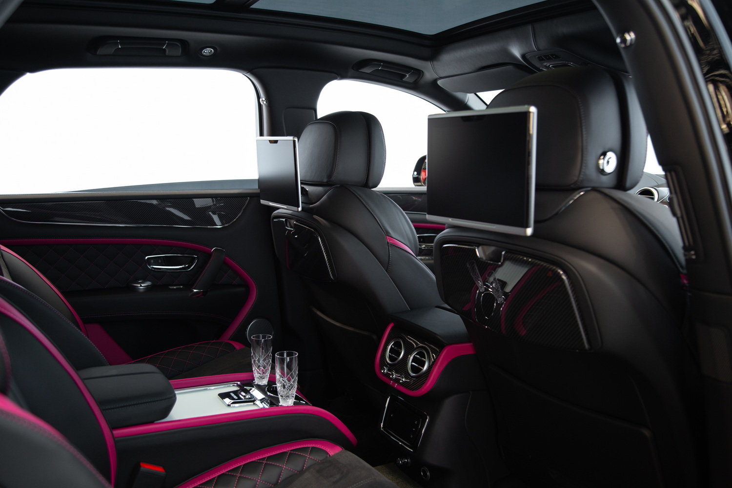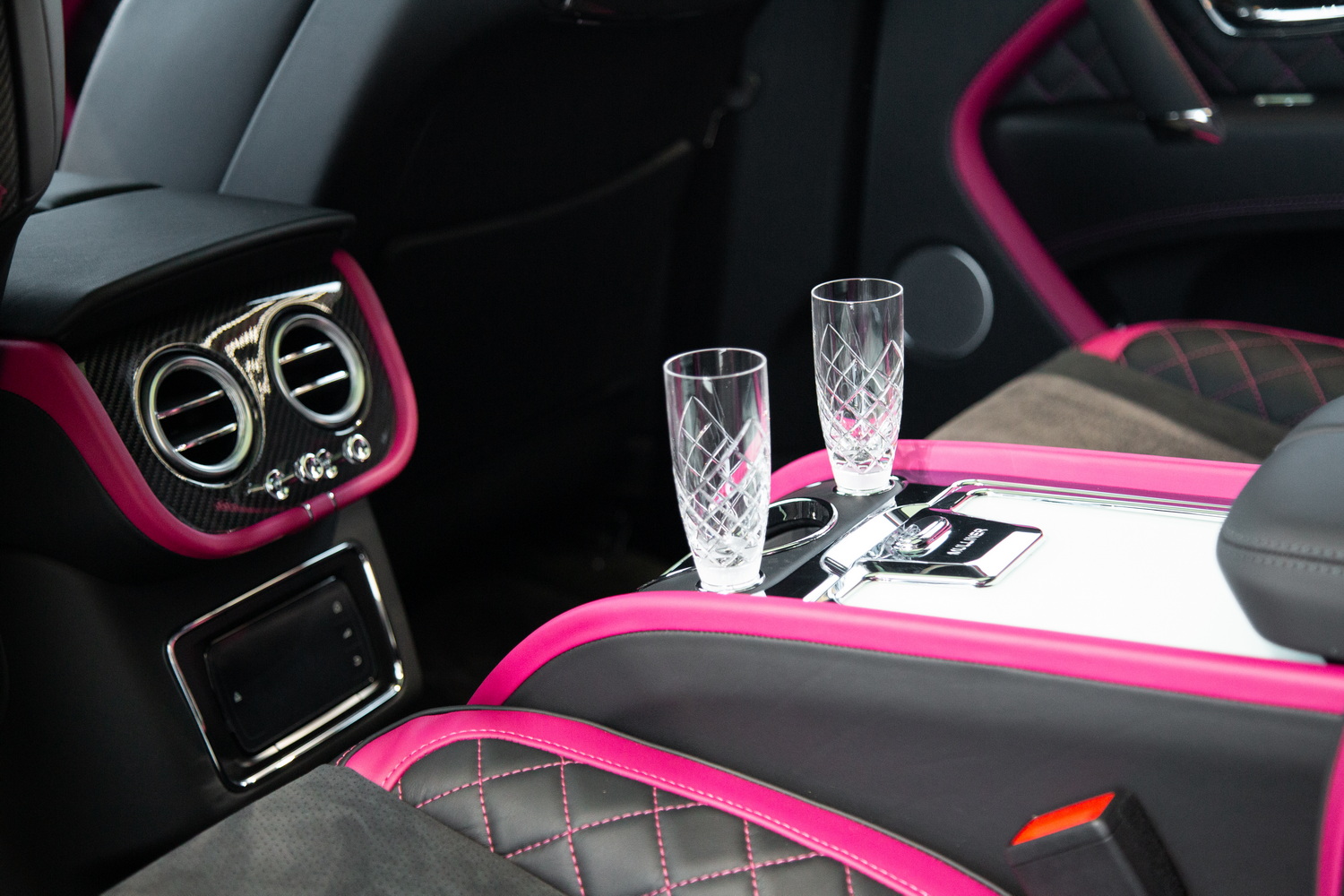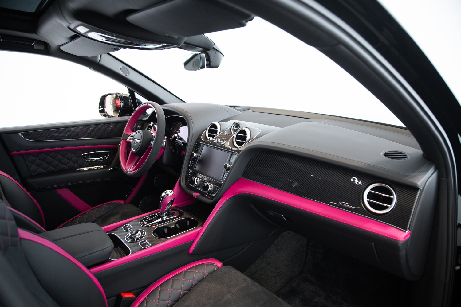 With its sleek black exterior, the 2020 Bentley Bentayga Speed exudes a commanding presence and refined elegance. The two-tone black and magenta interior creates a striking contrast, enveloping you in a world of luxurious comfort and style. Meticulously crafted with the finest materials, the cabin offers a harmonious blend of exquisite design and practicality.