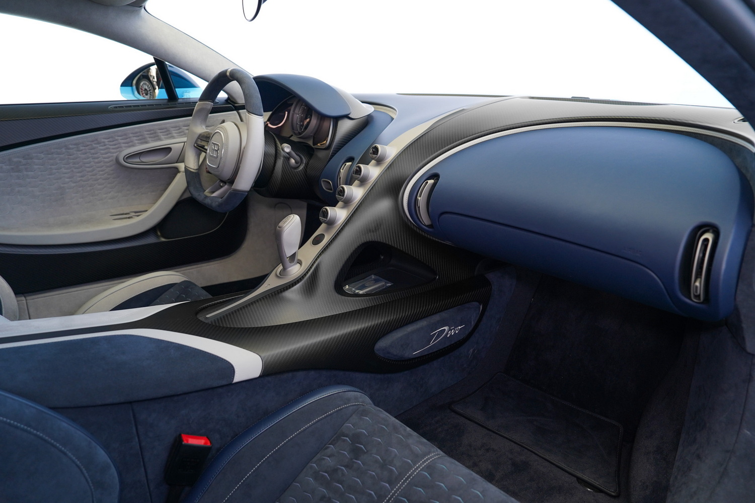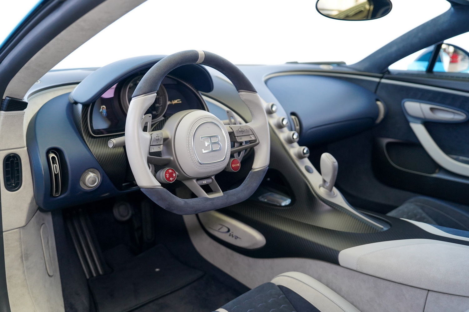 Inside, the Blue and Grey Alcantara cabin reflects Bugatti’s commitment to driver-focused minimalism and bespoke craftsmanship. Every detail—from the contrast stitching and carbon fibre accents to the lightweight performance seats—is crafted with precision. The interior design balances comfort with a pure racing ethos, ensuring the driver feels connected to every heartbeat of the W16 engine.