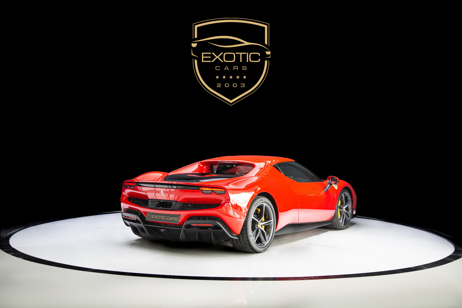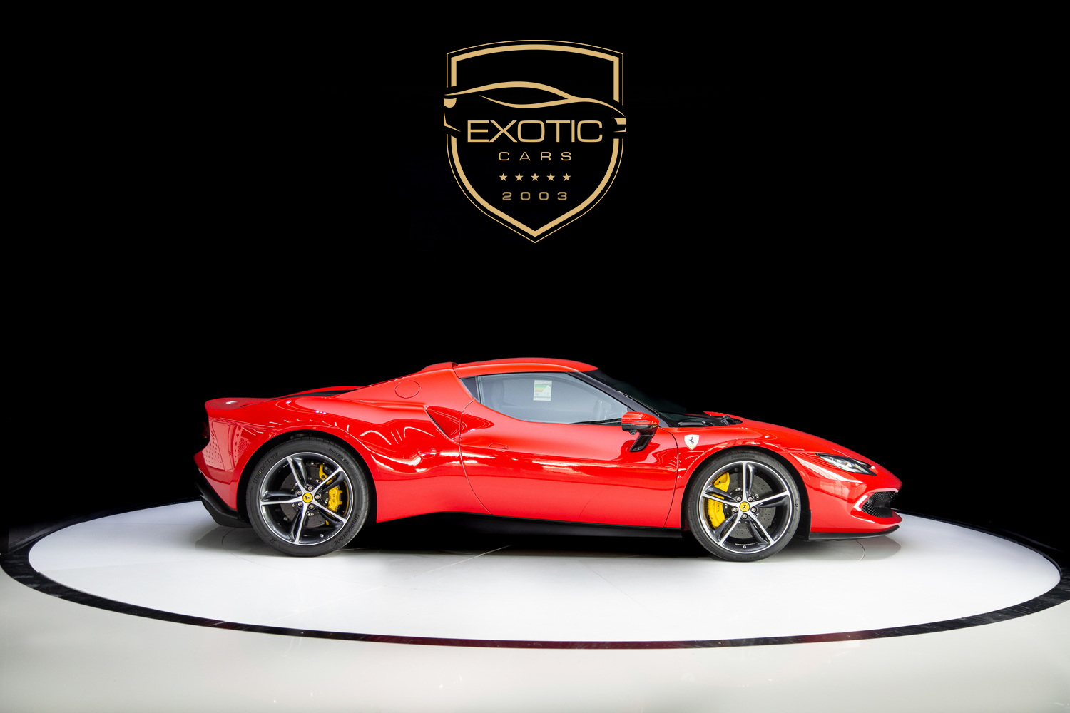 Welcome to Exotic Cars Dubai, your ultimate destination for luxury automotive excellence. Feast your eyes on the exquisite new 2023 Ferrari 296 GTB, a true marvel of engineering and design. With its striking red exterior and refined black interior, this Ferrari is a perfect blend of power and elegance.