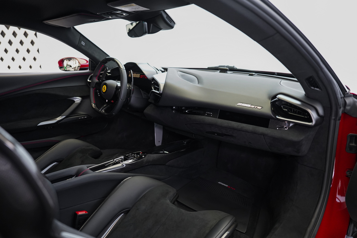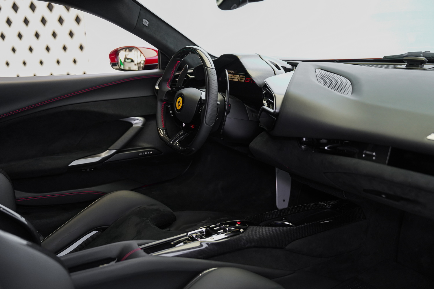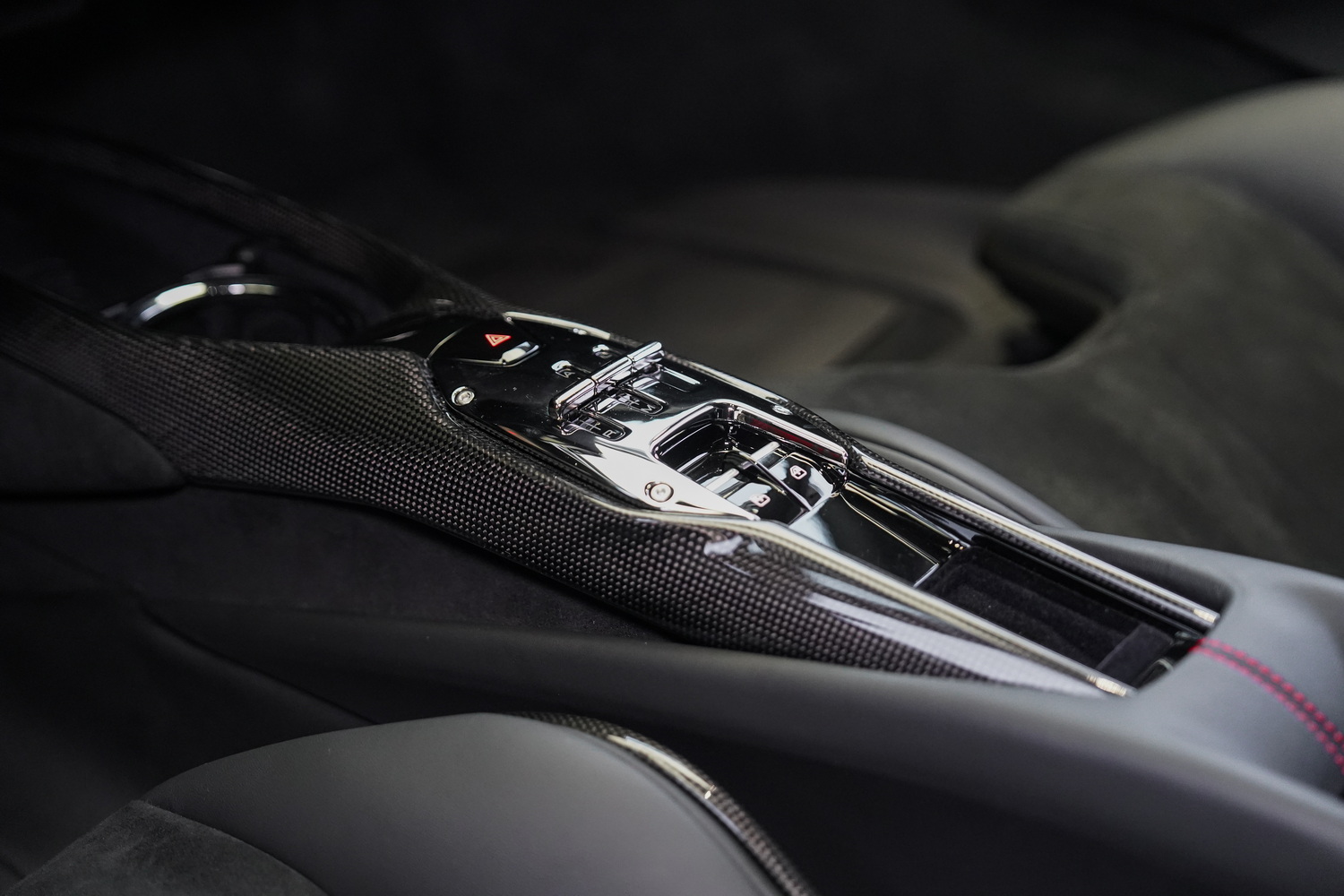 Inside, the Black leather and Alcantara interior embodies Ferrari’s dedication to the driver. The minimalist, driver-focused cockpit features digital instrumentation, carbon fibre trim, and contrast red stitching. Every surface reflects meticulous craftsmanship, from the multifunction steering wheel to the race-inspired paddle shifters — all designed to put performance and luxury at your fingertips.