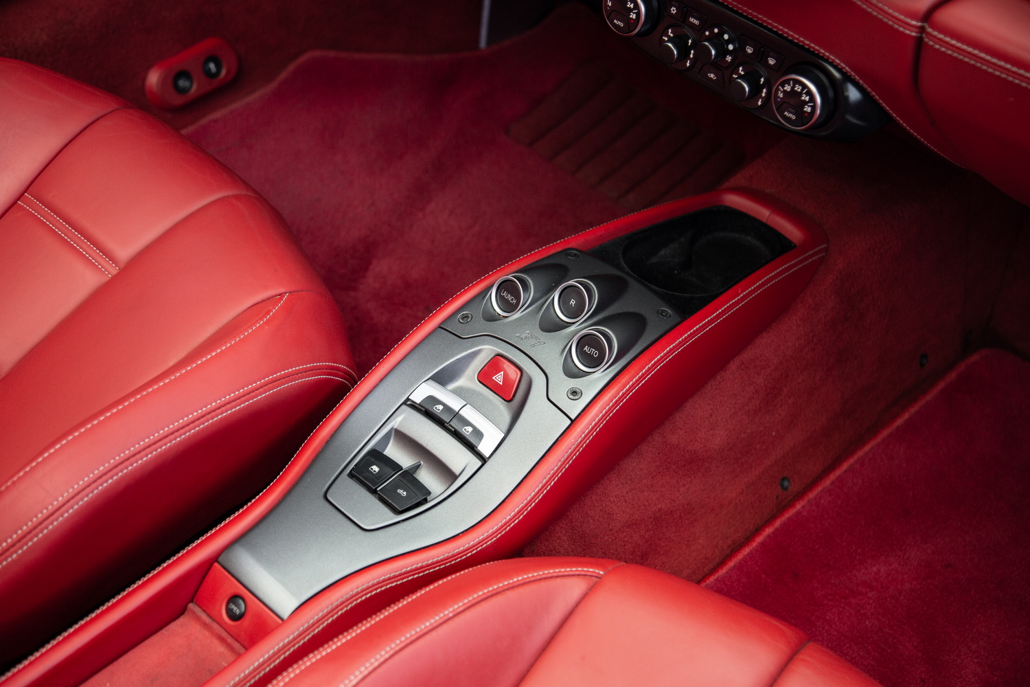 The interior of the 458 Spider is a testament to Ferrari’s dedication to craftsmanship and driver-focused design. The red interior features premium leather upholstery, meticulously crafted to ensure both comfort and style. The sport seats are supportive during spirited drives, while the advanced dashboard and intuitive controls keep all necessary functions within easy reach.