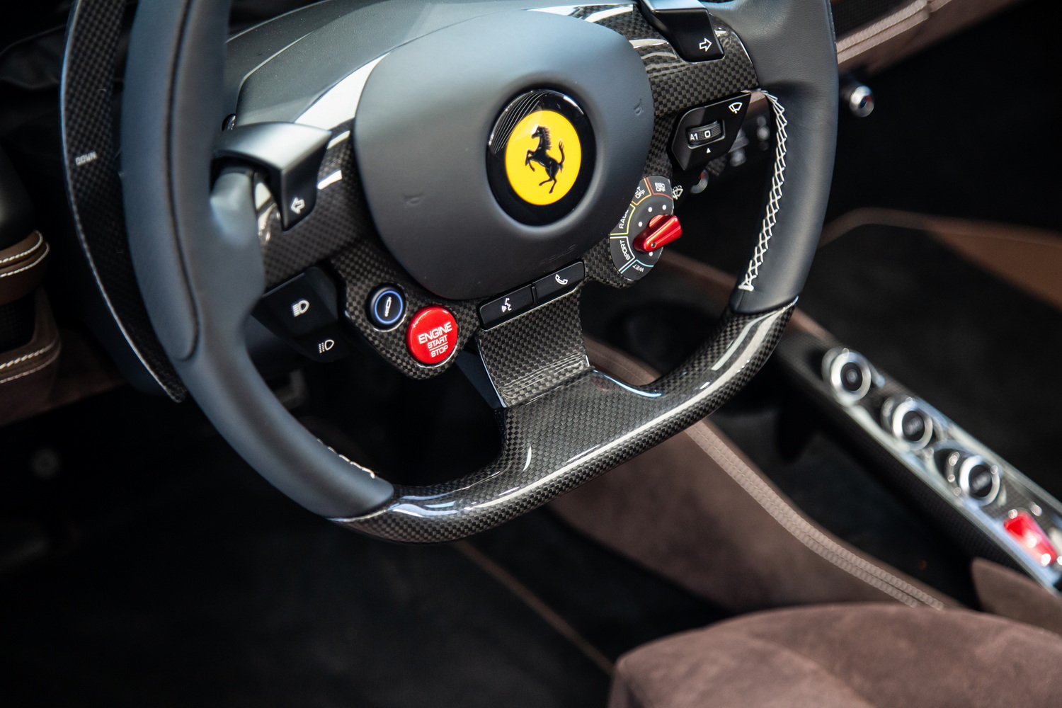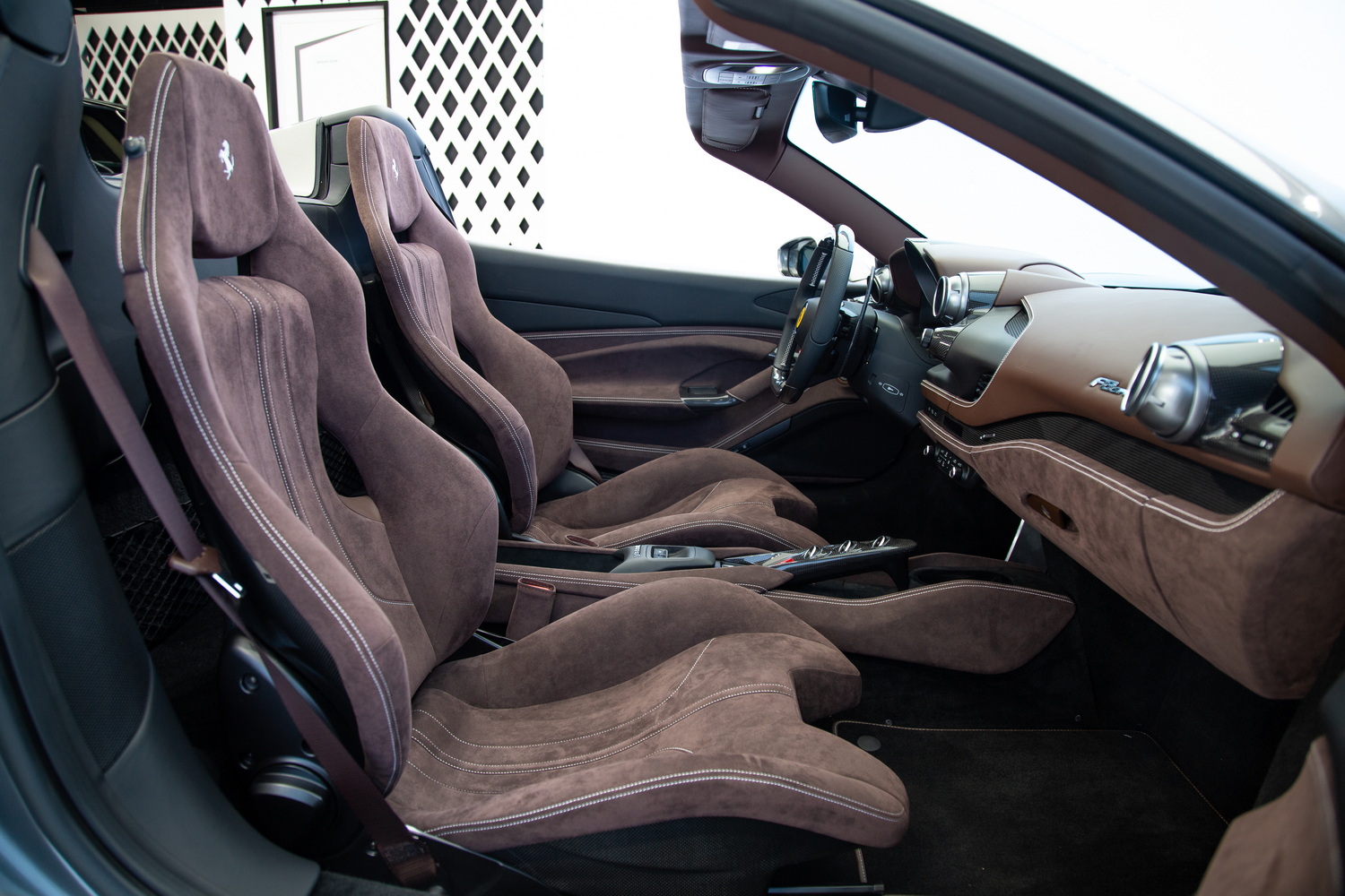 Introducing the epitome of Italian engineering and luxury - the new 2022 Ferrari F8 Spider, now available at Exotic Cars Dubai. This exquisite supercar is presented in a sophisticated grey exterior, perfectly complemented by a full carbon exterior package that not only enhances its sleek, aerodynamic design but also underscores its high-performance capabilities. Step inside to discover a cabin where luxury meets sportiness - the full Alcantara tan interior exudes a warm, inviting ambiance, while the interior carbon trim adds a touch of modern sophistication. This harmonious blend of materials creates an environment that is both visually stunning and tactilely pleasing, ensuring every drive is an experience in comfort and luxury. The F8 Spider is more than just a statement of style; it's a showcase of Ferrari's commitment to delivering unparalleled performance and driving pleasure. Its powerful engine and advanced aerodynamics promise an exhilarating driving experience, making it a perfect choice for car enthusiasts who seek the thrill of a high-performance sports car combined with the elegance and craftsmanship of one of the world's most prestigious automotive brands. Located in the heart of Dubai, Exotic Cars Dubai is proud to offer this magnificent 2022 Ferrari F8 Spider. It represents an exceptional opportunity for discerning buyers to own a piece of Ferrari's legendary automotive excellence.