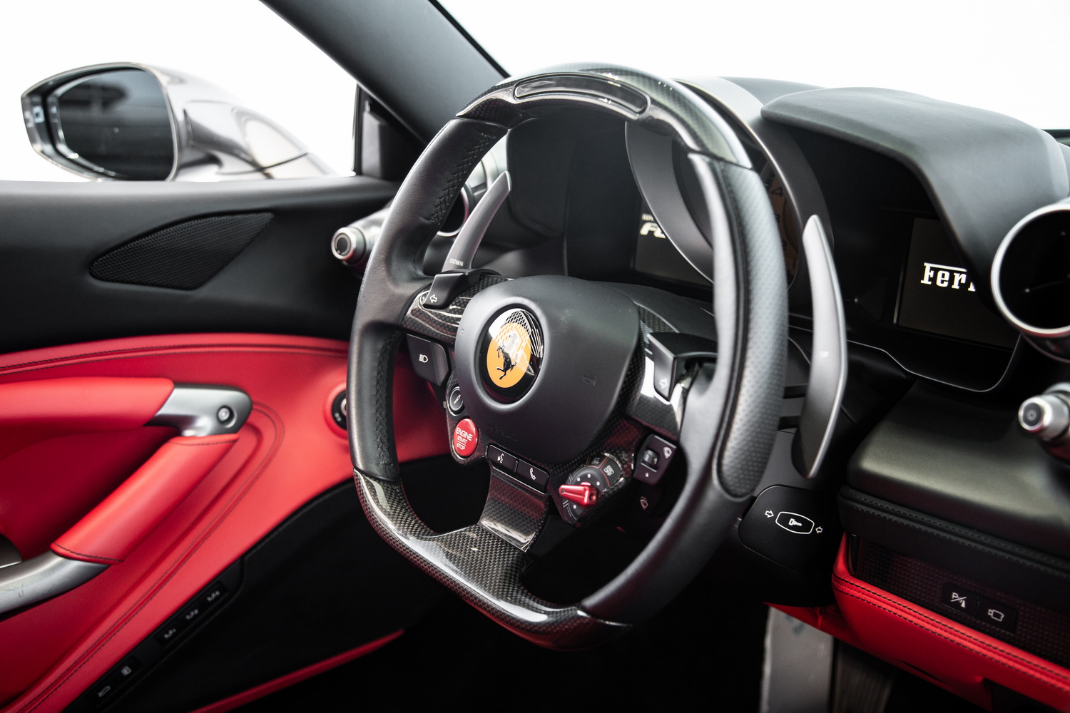 The car's interior is a blend of luxury and functionality. The full interior carbon trim adds a touch of sophistication, while the passenger display ensures that even the co-driver can be engaged in the driving experience. The comfort seats, designed for both support and luxury, ensure that every journey in the F8 Tributo is as comfortable as it is exhilarating.