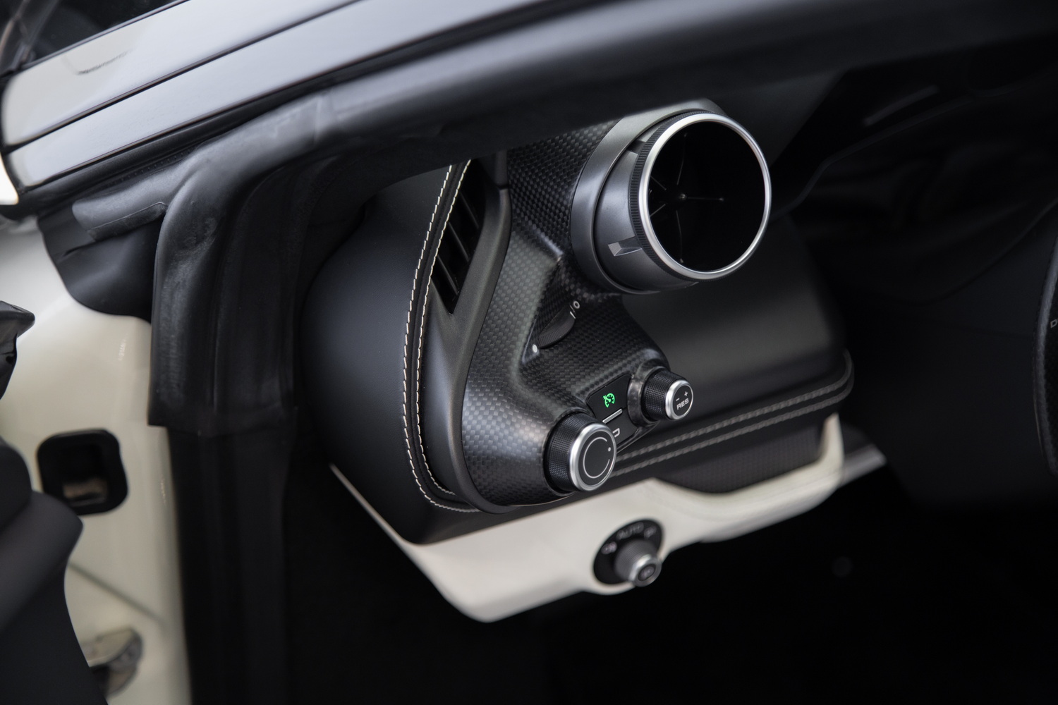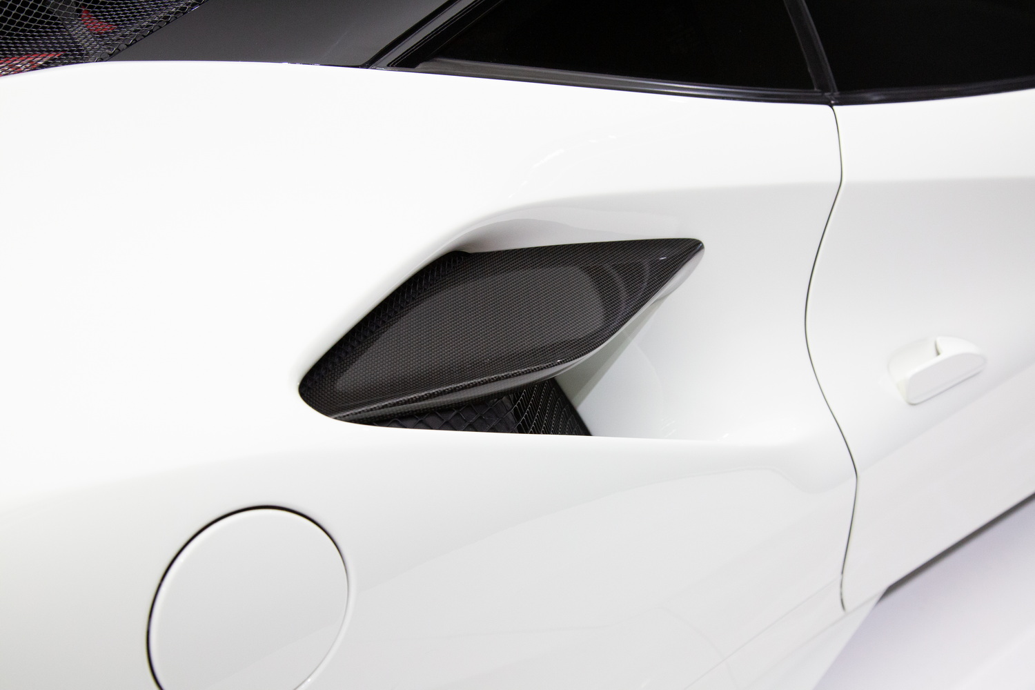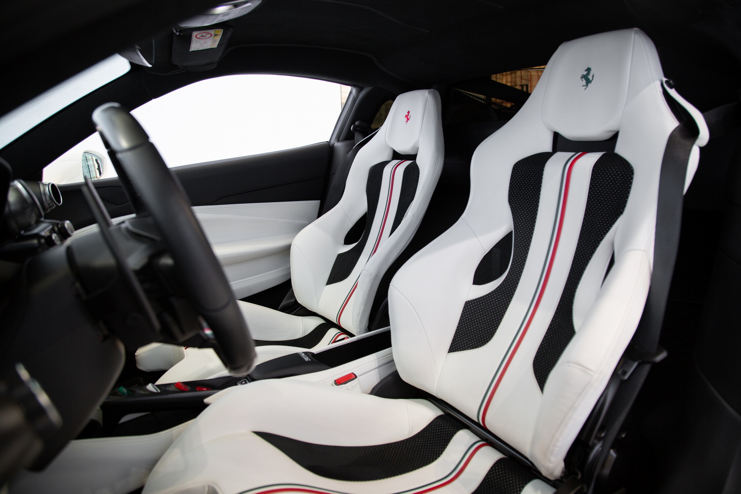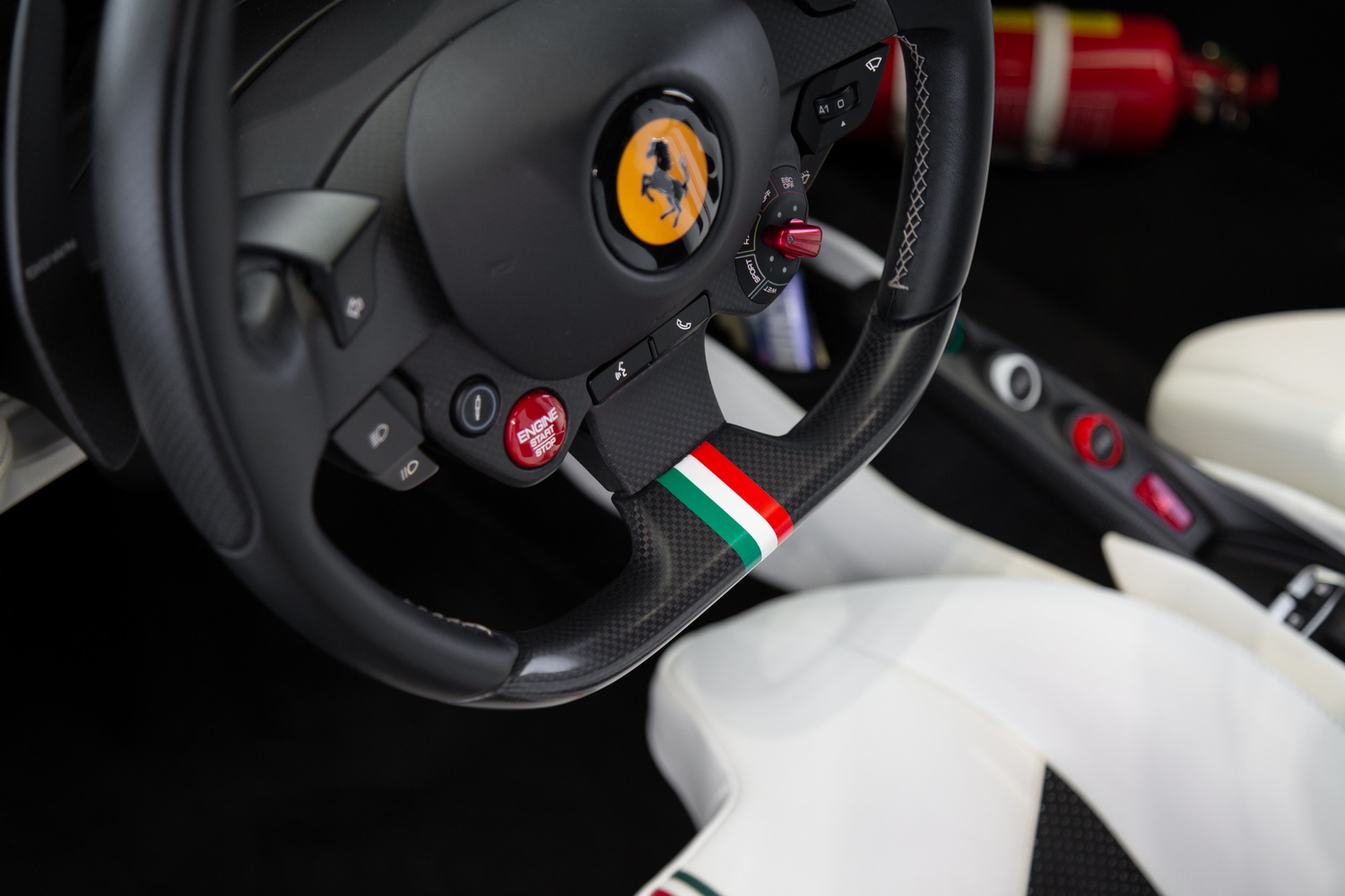 Step inside to experience the luxurious custom ivory interior, designed by Ferrari's own craftsmen to ensure a bespoke and comfortable driving experience. The interior is further enhanced by matte carbon fiber trim that adds a touch of modern elegance to the classic Ferrari aesthetic. With carbon bucket seats, you not only get superior support during high-performance driving but also a unique style that sets this F8 Tributo apart from others.