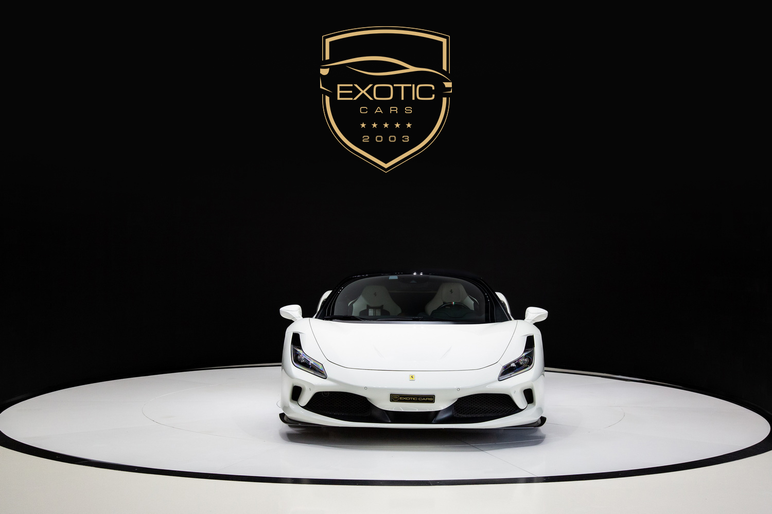 Discover the 2021 Ferrari F8 Tributo, finished in White with a Black + Ivory interior, now available at our flagship showroom.