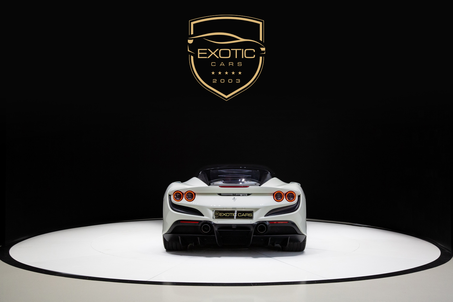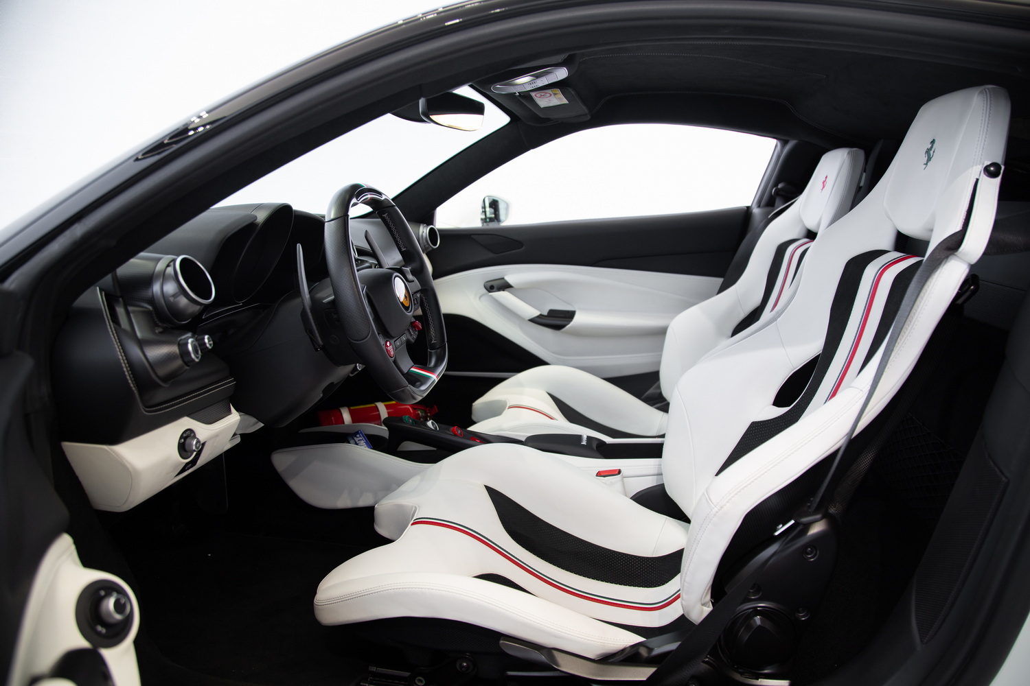 The White exterior showcases the F8’s dramatic lines and sculpted aerodynamics. From the low-slung nose with S-Duct airflow to the louvered rear engine cover and active rear diffuser, every detail is designed for beauty and purpose.