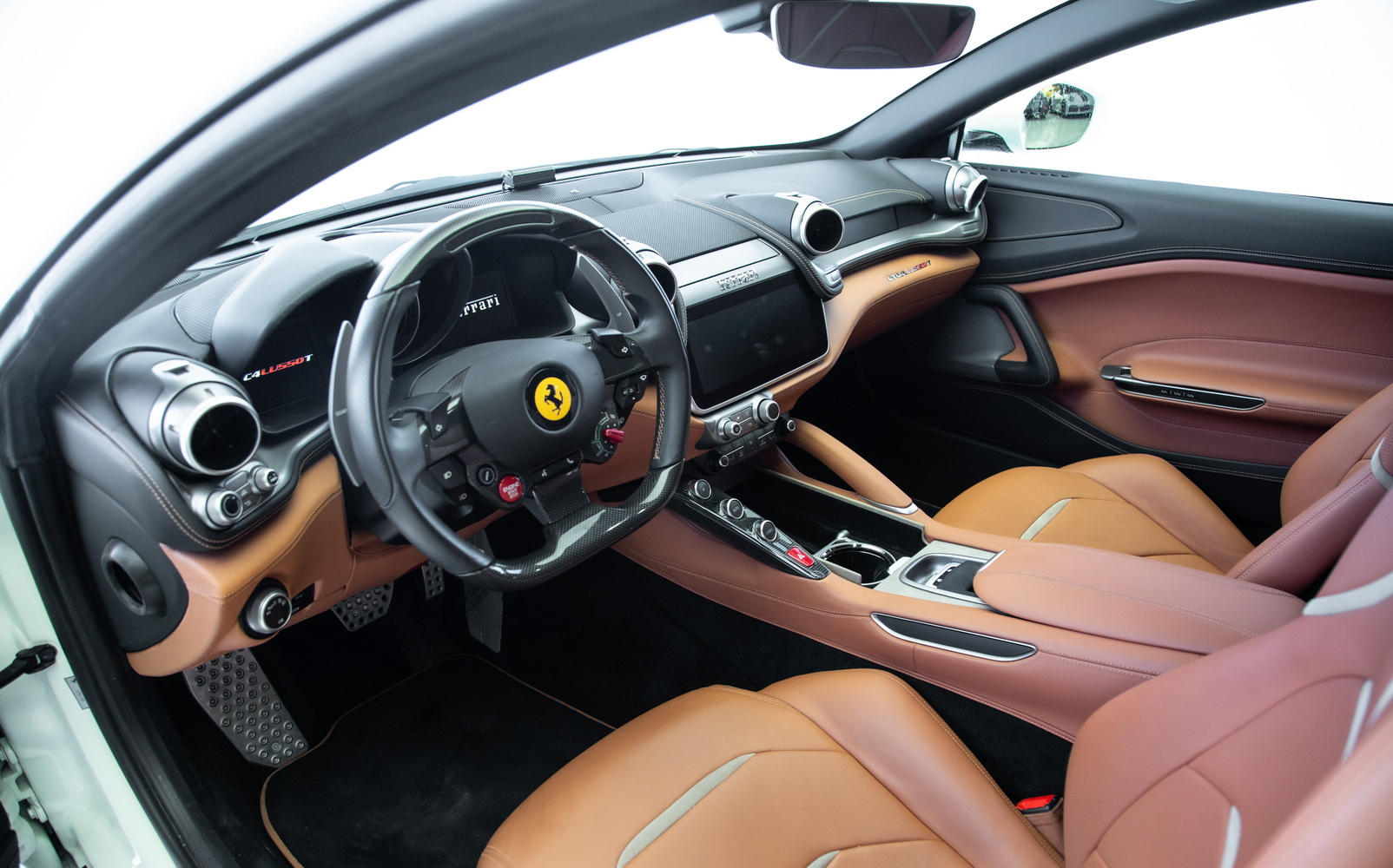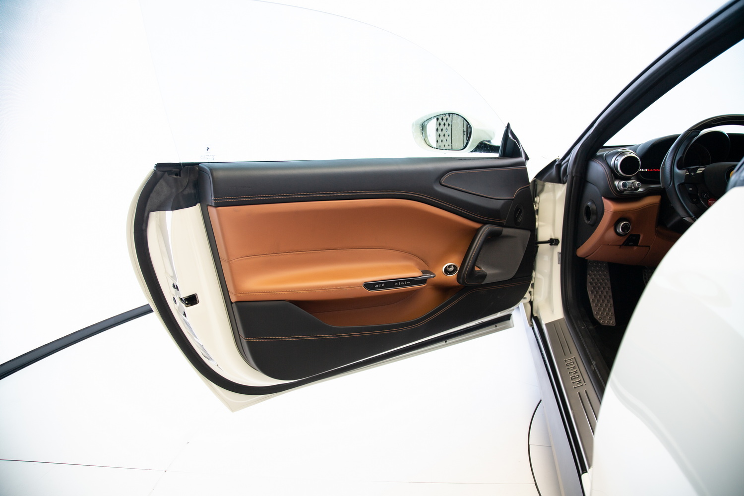 Step inside the cabin and experience pure luxury. The tan interior offers a perfect contrast to the striking white exterior, creating a warm and inviting atmosphere. This Ferrari comes equipped with cutting-edge infotainment and driver assistance systems, providing advanced technology to enhance the driving experience. Plush leather seats, dual-zone climate control, and high-end finishes elevate the overall ambiance, ensuring both driver and passengers travel in utmost comfort.