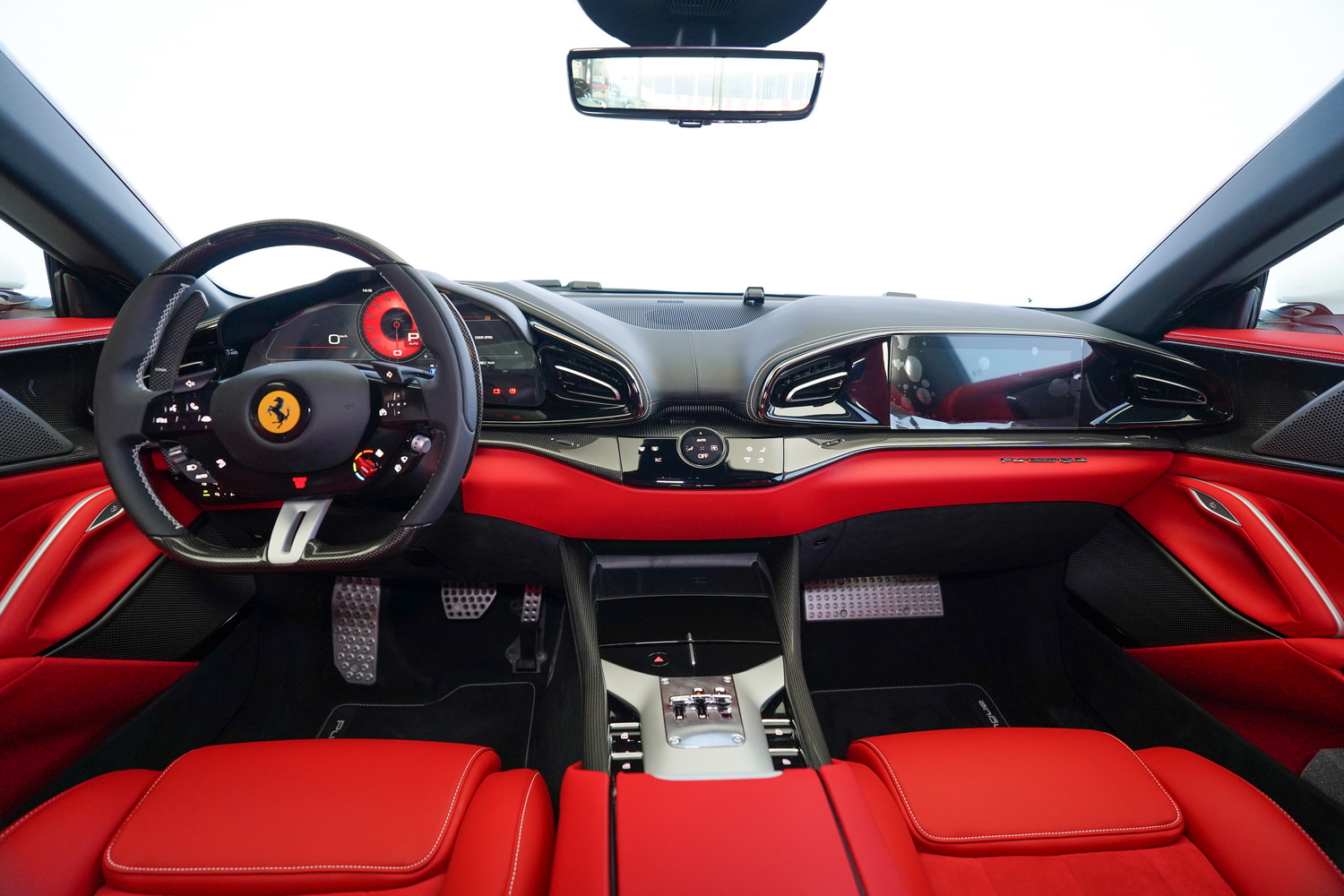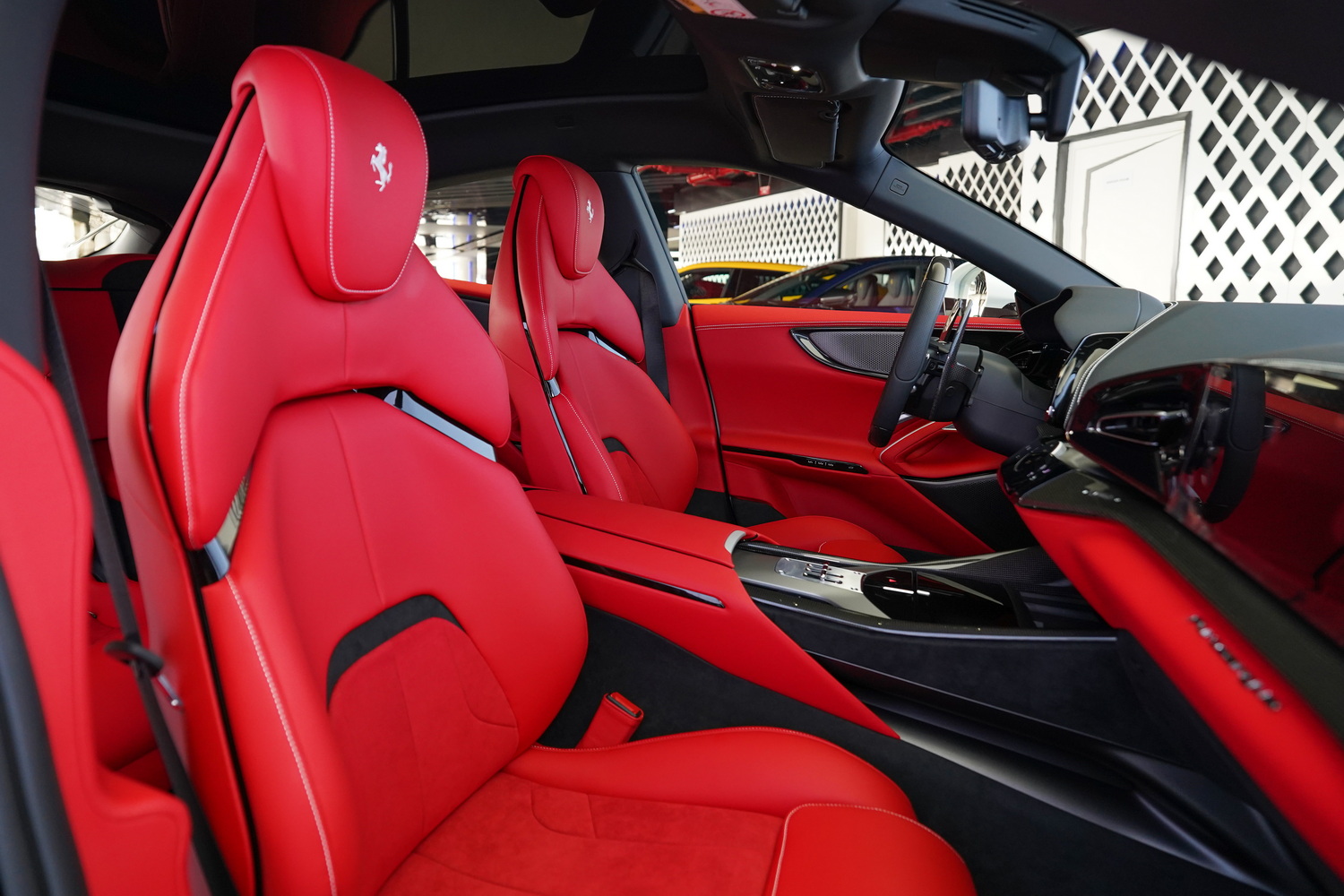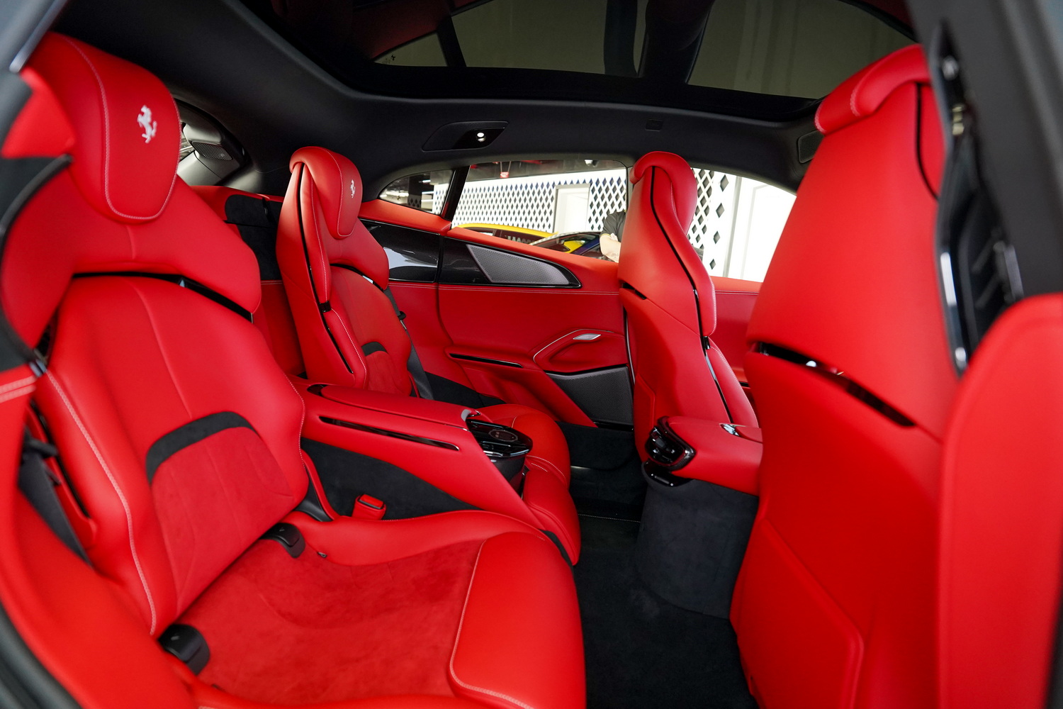 Inside, the red leather interior combines comfort with Ferrari’s signature sporty feel. Premium materials, meticulously crafted details, and advanced infotainment systems enhance every journey. The ergonomically designed seats provide outstanding support for long drives, ensuring passengers enjoy both luxury and performance.