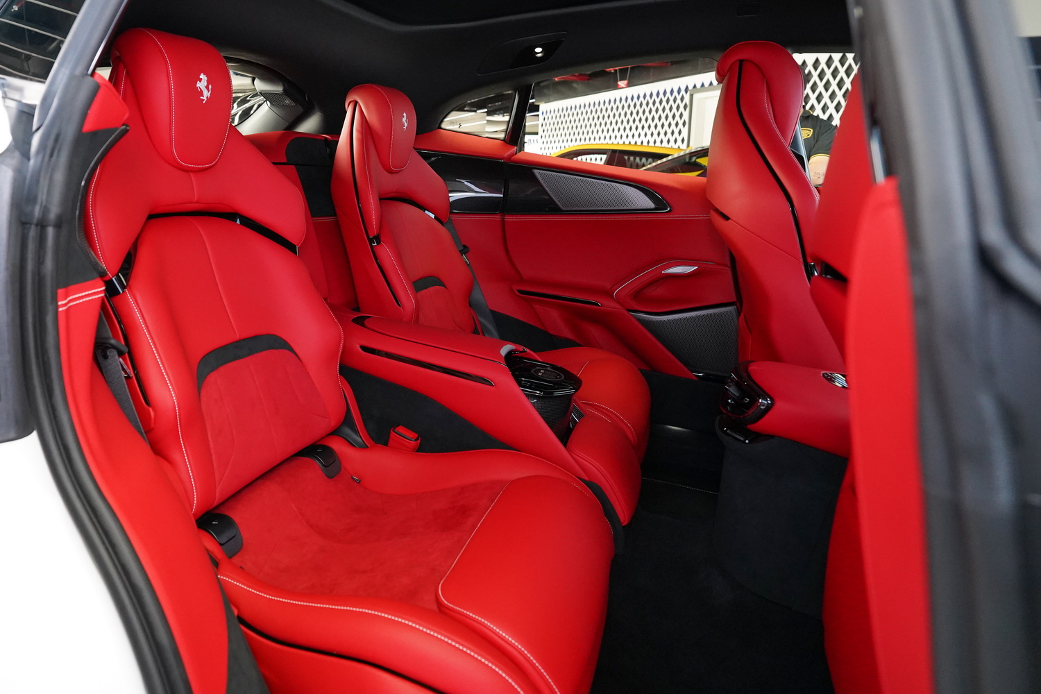 Its striking white exterior commands attention with sleek, aerodynamic lines and signature Ferrari styling. The aggressive front grille, sculpted hood, and dynamic rear design accentuate both performance and elegance. This SUV makes a statement whether on the streets of Dubai or cruising highways in style.