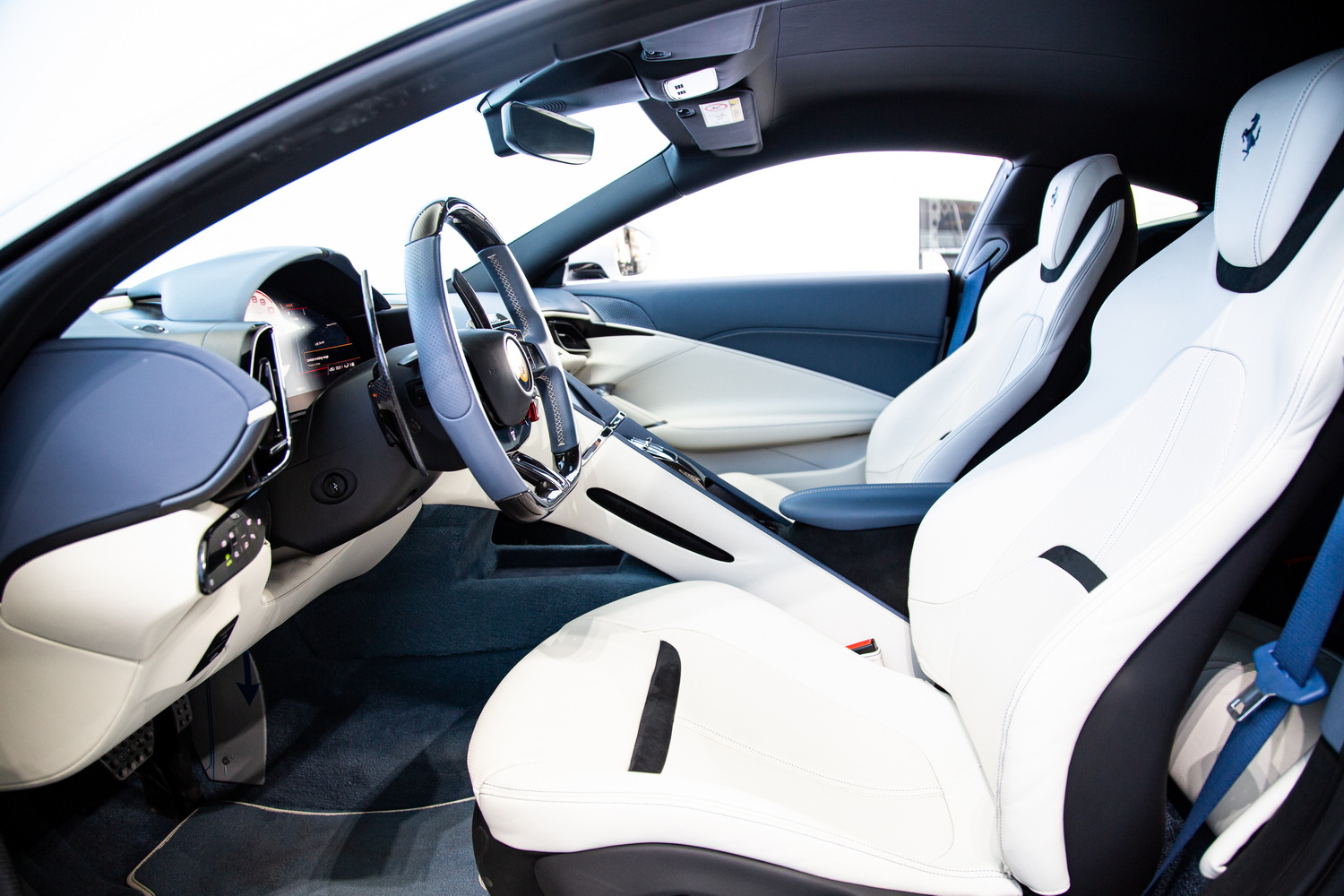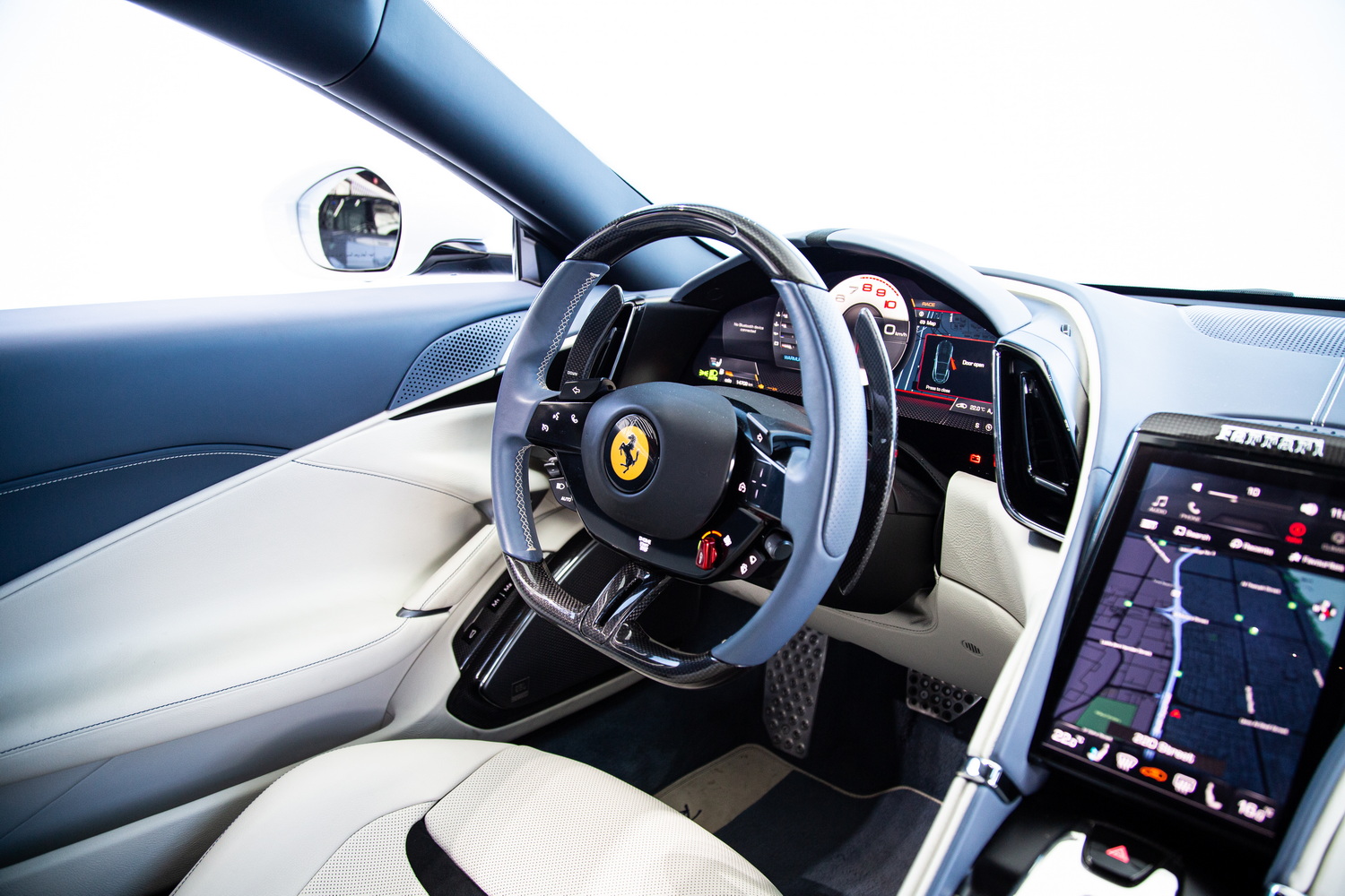 Inside, the ivory and blue interior, complemented by interior carbon trim, creates an environment that is both visually and tactilely stunning. The JBL Sound System provides an immersive audio experience, ensuring every journey is accompanied by a soundtrack that is as exquisite as the drive itself. The passenger display adds a layer of modernity and convenience, ensuring that every journey is not just a drive, but an experience.
