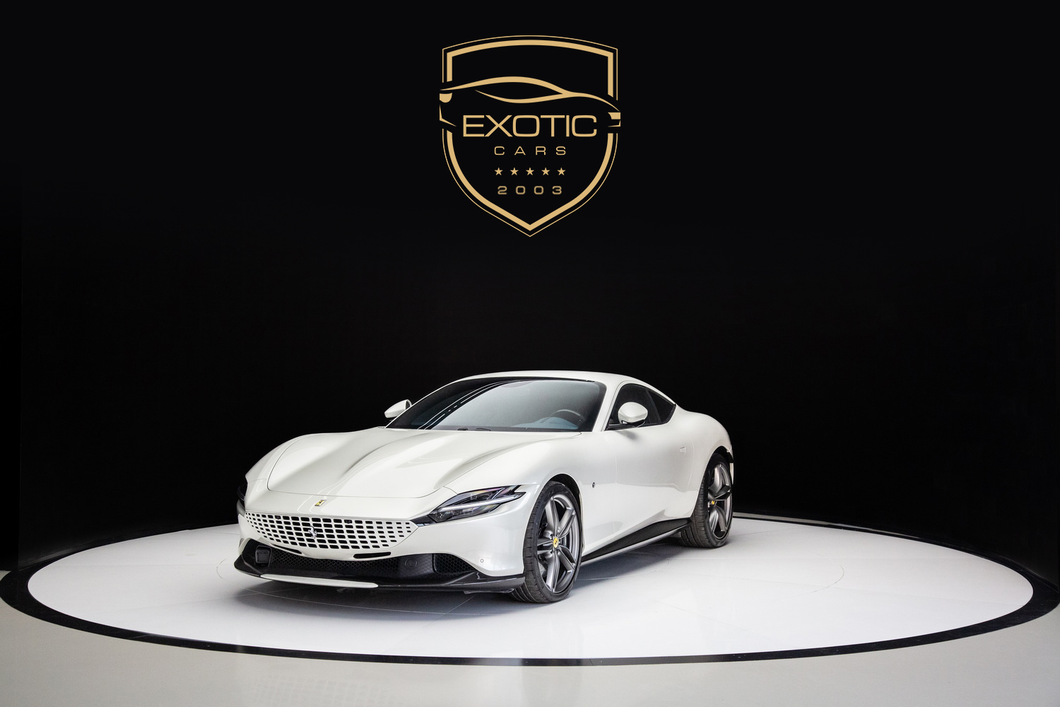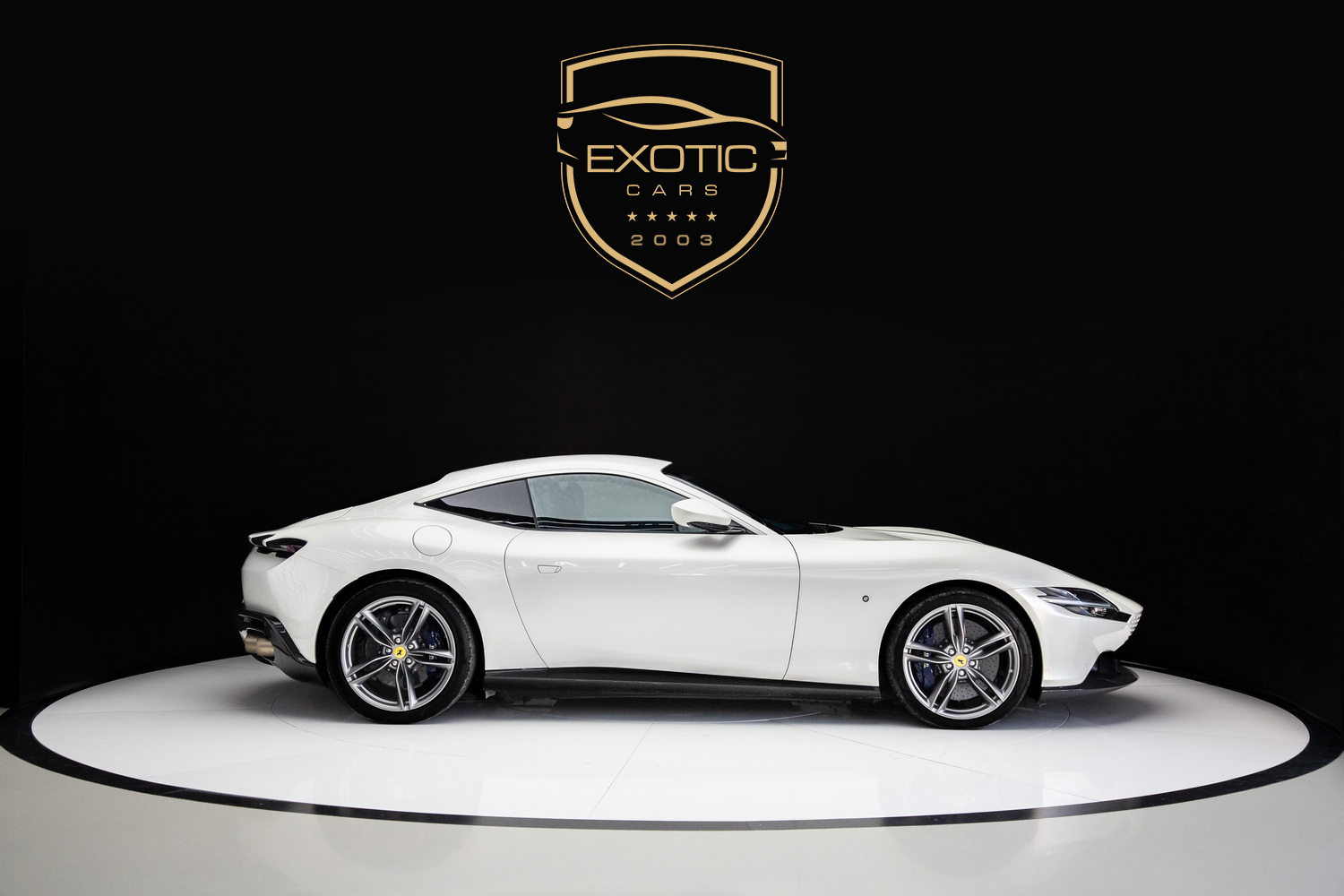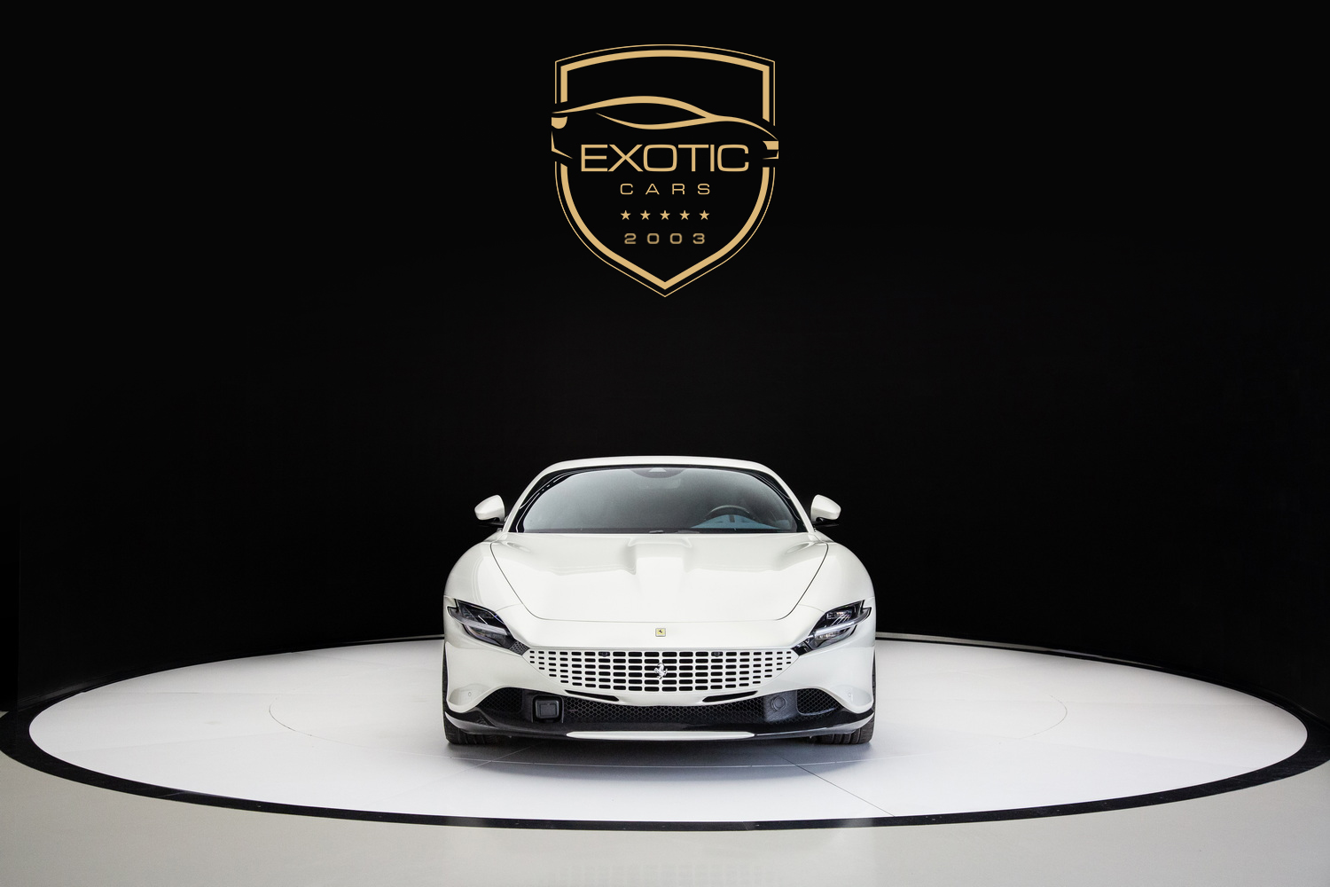 Welcome to Exotic Cars Dubai, where we specialize in providing the ultimate in luxury and performance vehicles. We are delighted to offer this elegant 2022 Ferrari Roma, a modern grand tourer that embodies the spirit of la dolce vita with its sleek design and dynamic capabilities. This model boasts a stunning pearl white exterior and a luxurious blue interior, complemented by full interior and exterior carbon trim and a state-of-the-art JBL sound system, among other premium features.