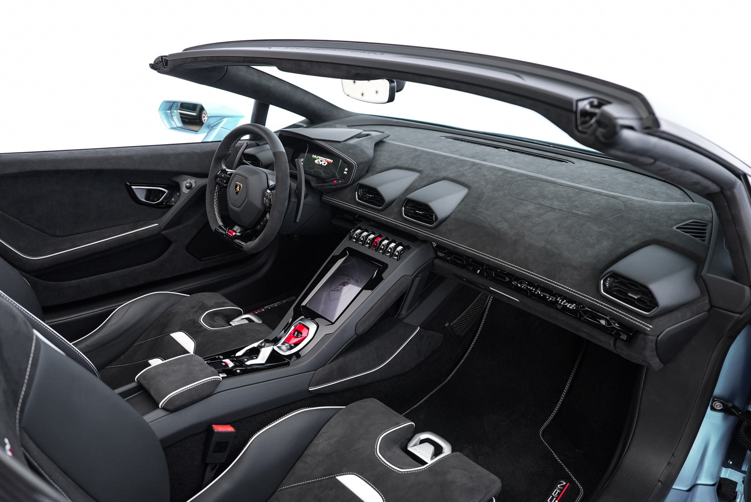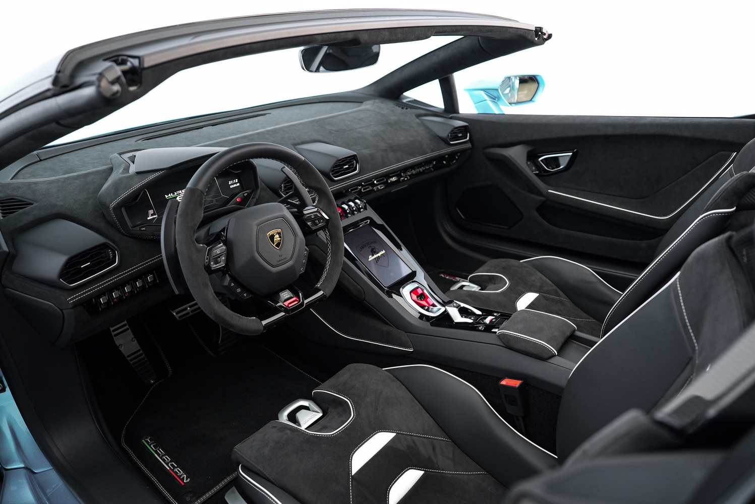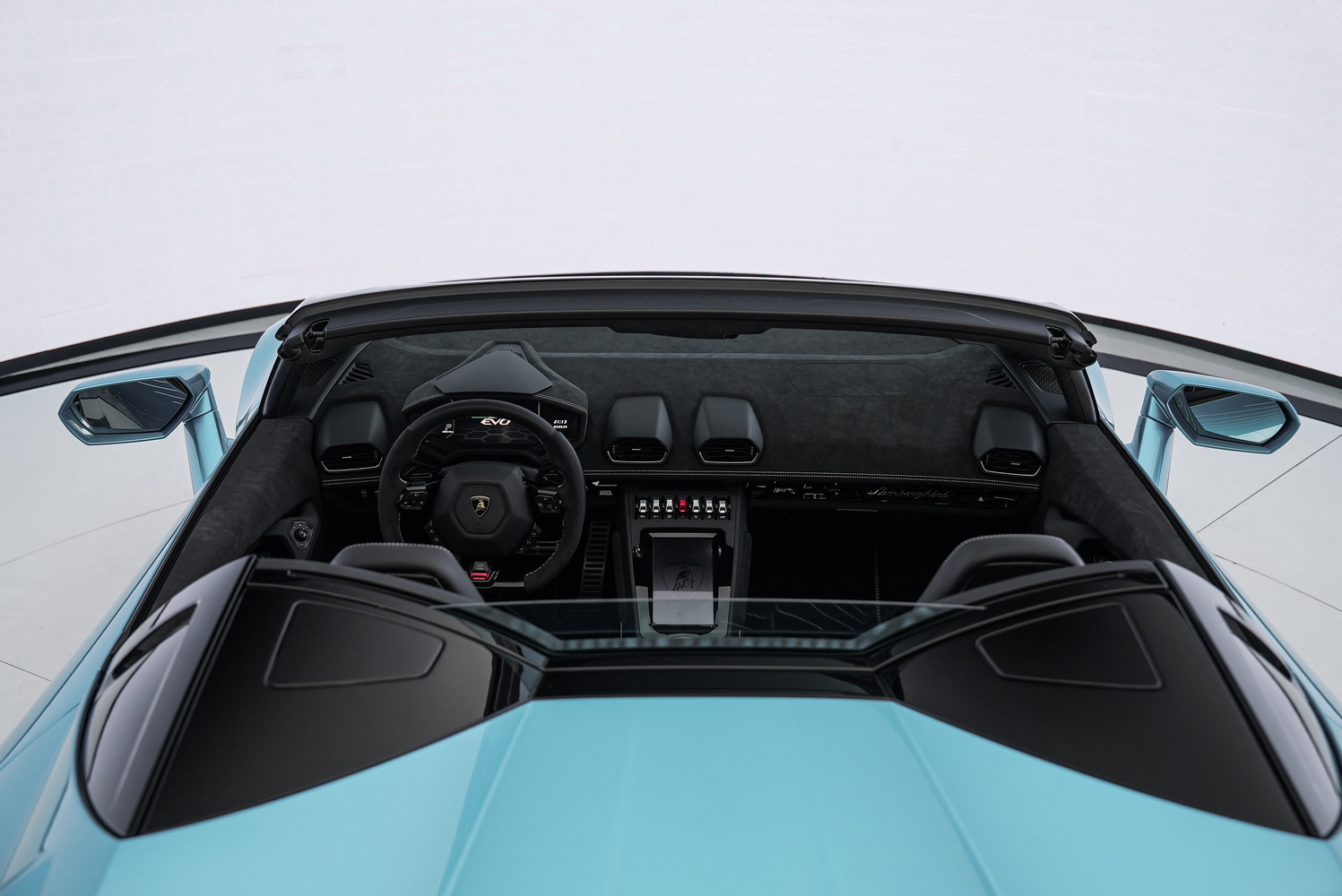 At its core lies a 5.2-liter naturally aspirated V10, delivering 631 horsepower and 600 Nm of torque to all four wheels through a lightning-fast 7-speed dual-clutch transmission. The Huracán EVO Spyder launches from 0–100 km/h in just 3.1 seconds, with a top speed of over 325 km/h.