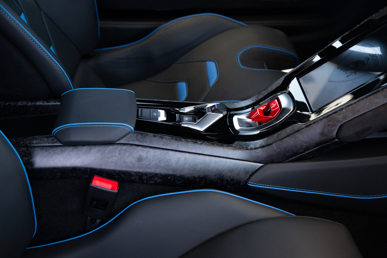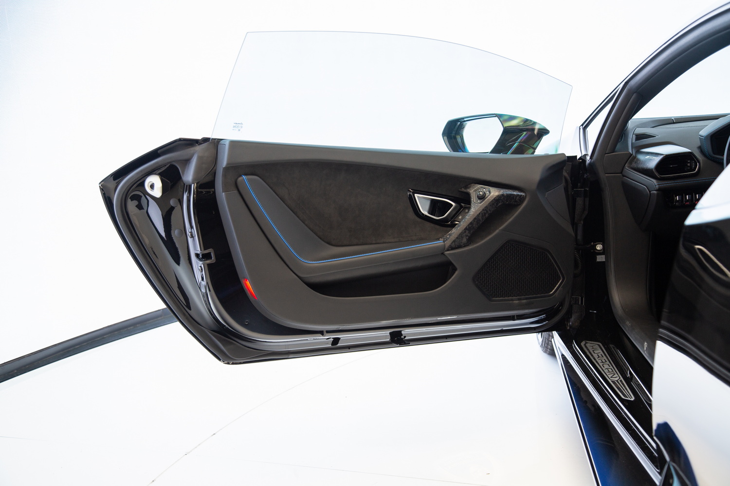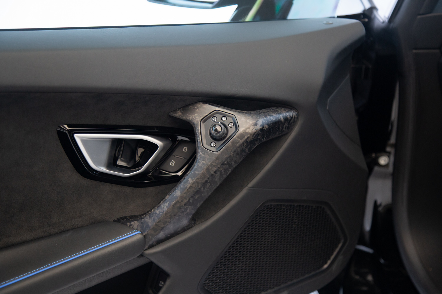 This Huracán EVO's black exterior and black and blue interior are not just about aesthetics; they represent the fusion of performance and style, making it a standout on the road and track alike. The forged carbon interior and carbon bucket seats not only reduce weight but also elevate the cabin's sporty feel, offering occupants a unique blend of comfort and performance.