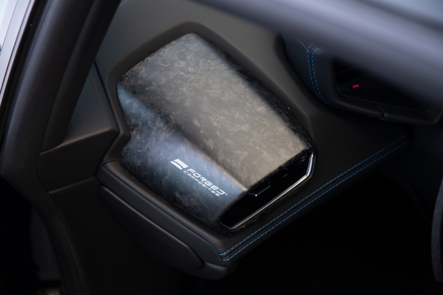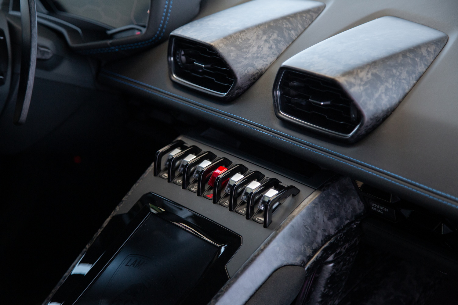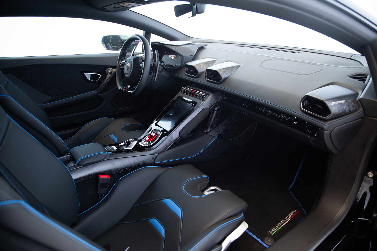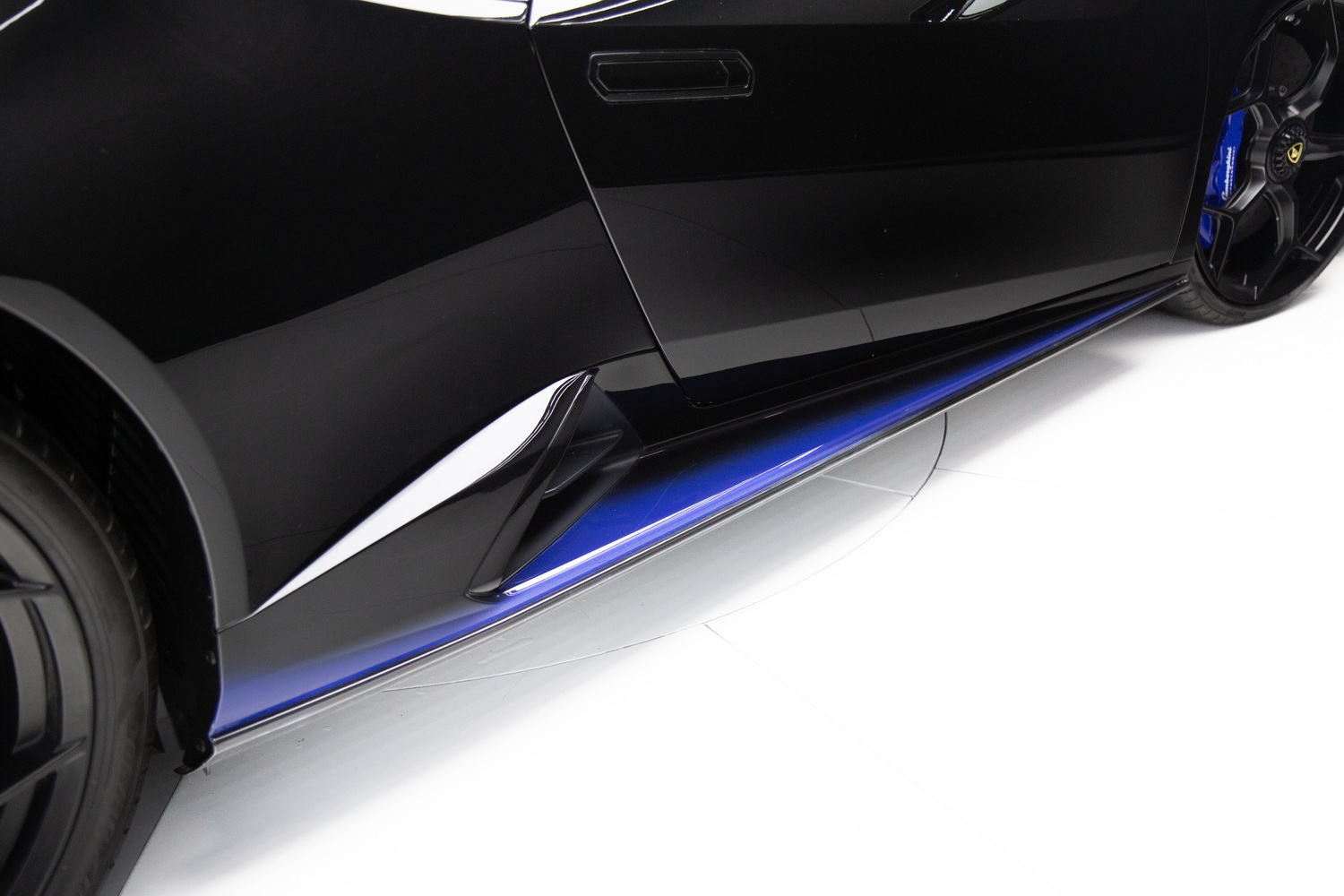 This Huracán EVO's black exterior and black and blue interior are not just about aesthetics; they represent the fusion of performance and style, making it a standout on the road and track alike. The forged carbon interior and carbon bucket seats not only reduce weight but also elevate the cabin's sporty feel, offering occupants a unique blend of comfort and performance.