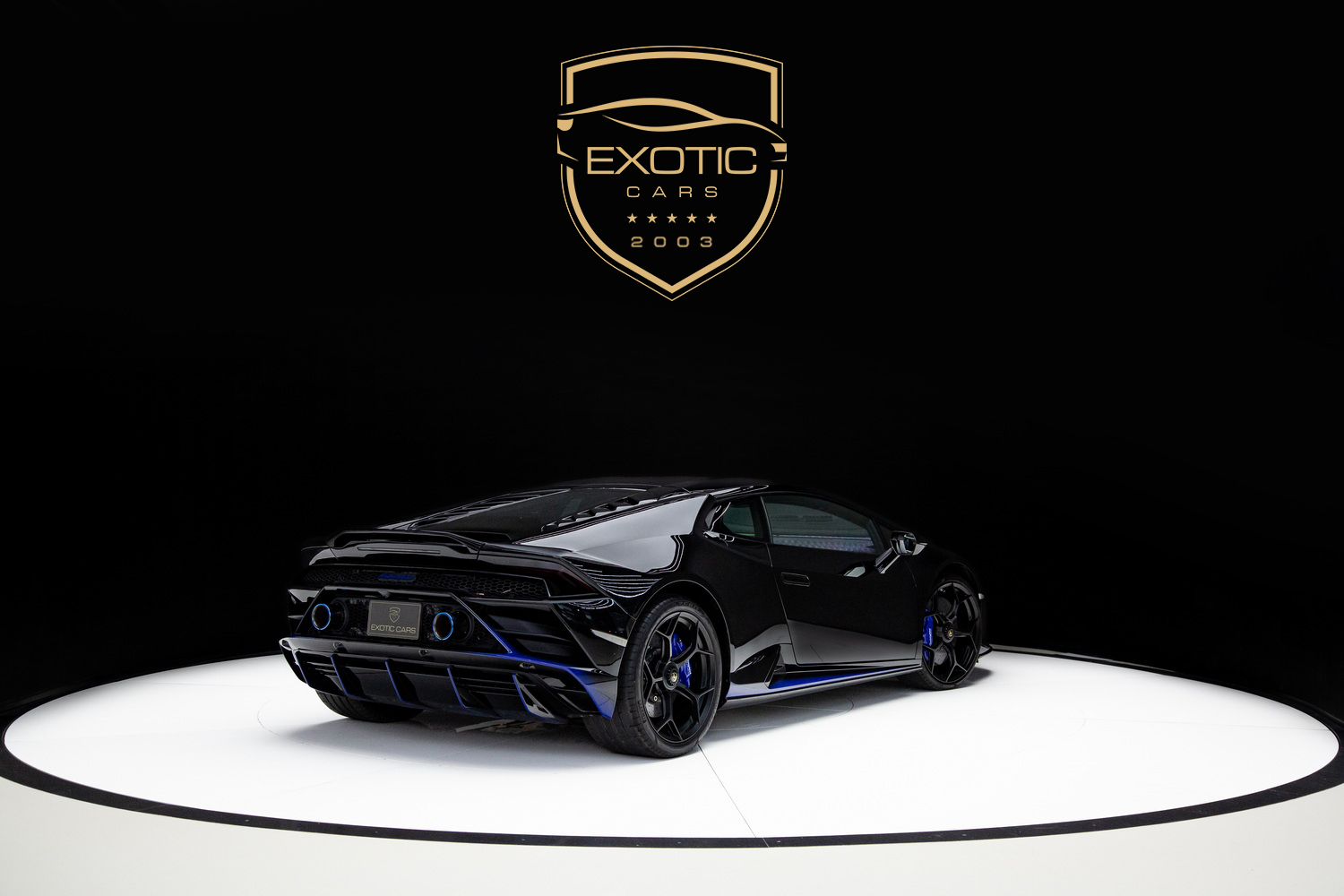 Exotic Cars Dubai proudly presents a breathtaking example of Italian engineering: the 2020 Lamborghini Huracán EVO, a vehicle that embodies the essence of pure performance and aerodynamic design. Available for those who demand the pinnacle of supercar excellence, this Huracán EVO features a sleek black exterior that encapsulates its aggressive and dynamic stance. Inside, the cabin is a masterpiece of design, with a striking black and blue interior that enhances the driving experience, complemented by forged carbon interior accents and carbon bucket seats for a touch of racing-inspired luxury.