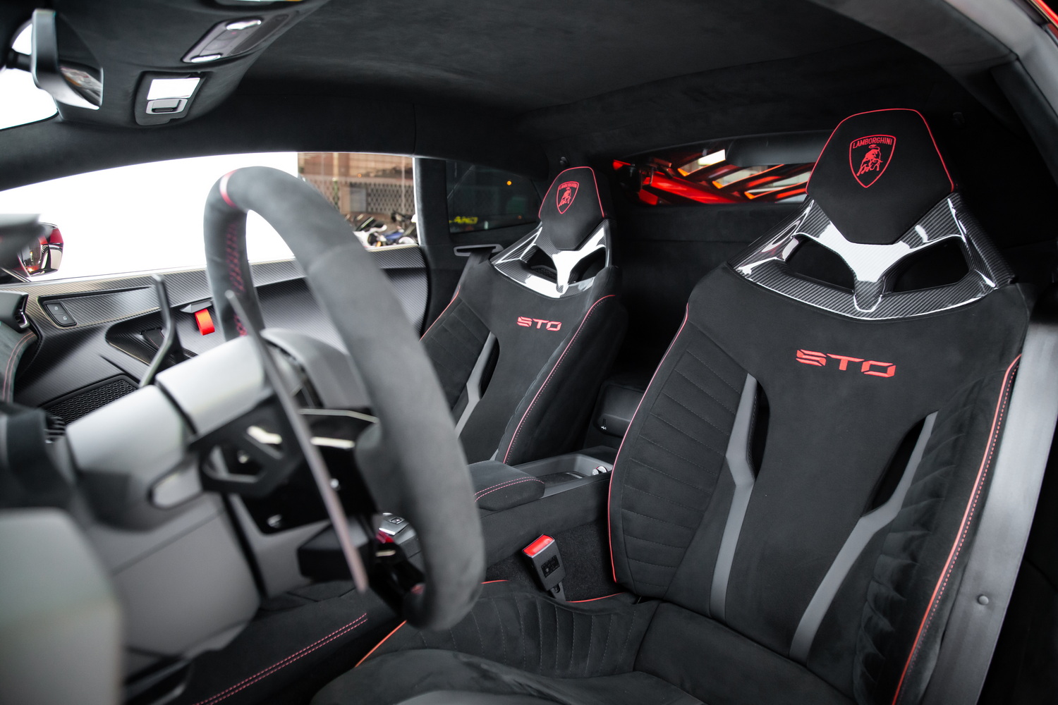 The Huracan STO, an acronym for Super Trofeo Omologata, is engineered for enthusiasts who desire a road-legal race car. The exterior and interior carbon trim not only accentuates its aggressive styling but also contributes to its lightweight and aerodynamic efficiency. Alcantara bucket seats ensure drivers are firmly supported during high-speed maneuvers, enhancing the connection between driver and machine.