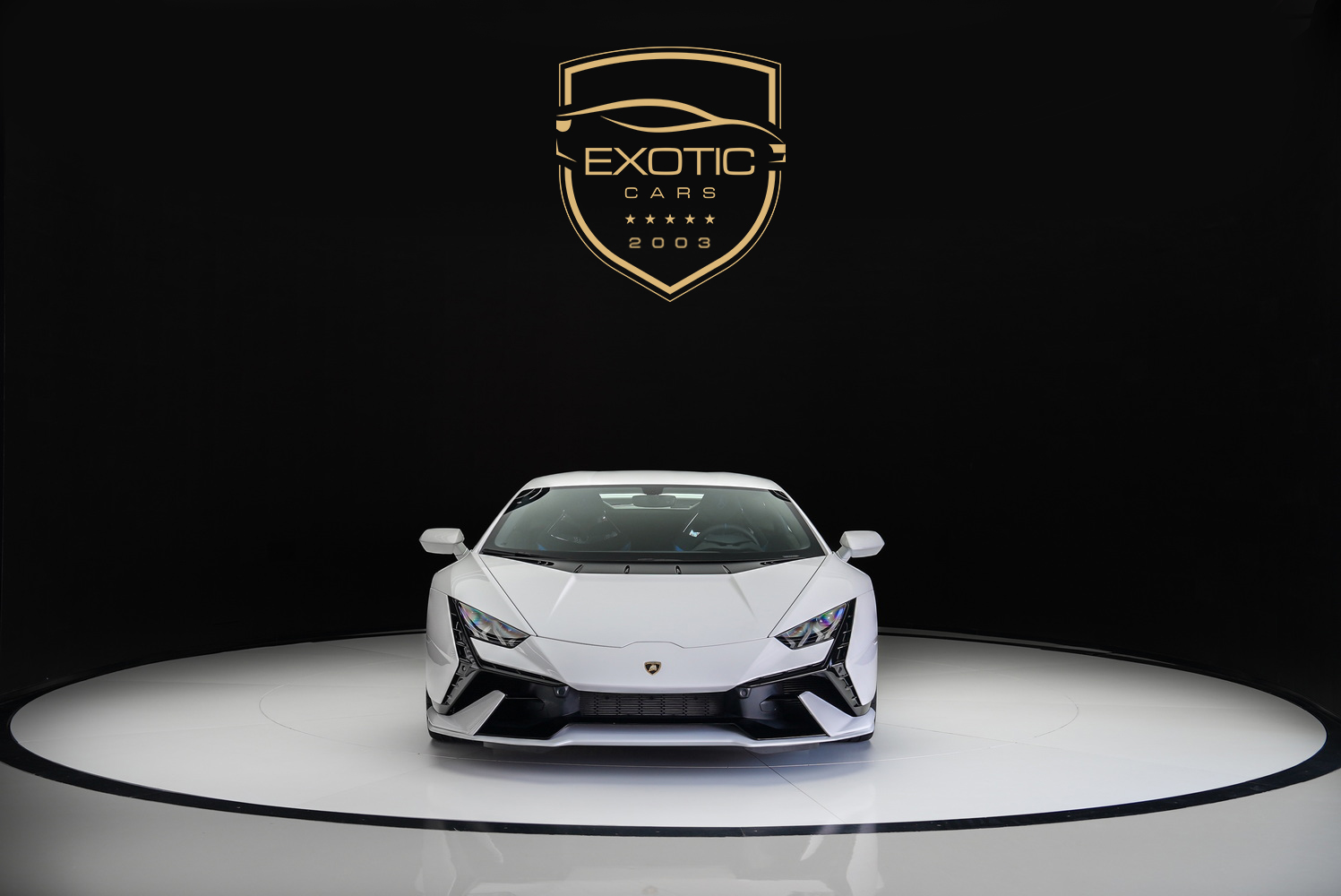 The white exterior of the Lamborghini Huracan Tecnica showcases its aggressive, aerodynamically honed design. With sharp lines, aerodynamic curves, and a menacing front profile, the Tecnica commands attention wherever it goes. The vehicle's LED headlights and rear diffuser emphasise its dynamic nature, while the lightweight design ensures enhanced agility and performance. This Lamborghini combines style and functionality in perfect harmony, making it the ultimate driving machine for thrill-seekers.
