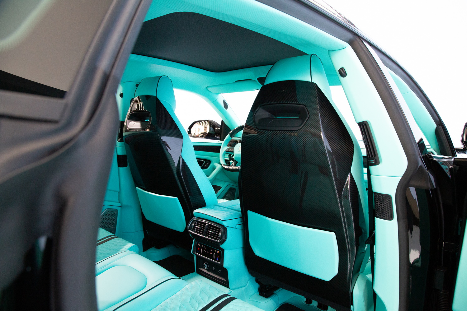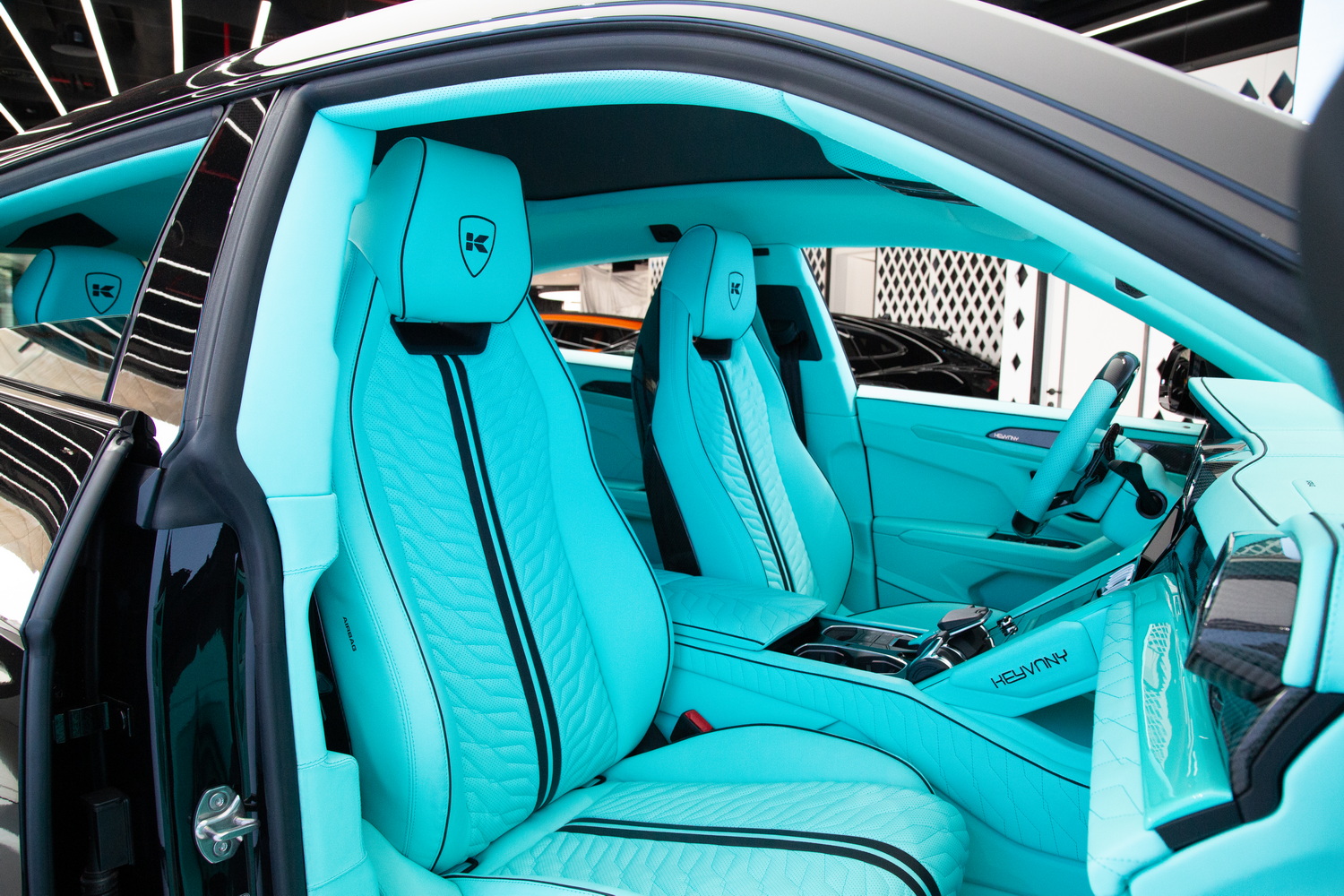 However, the interior is where the luxury truly comes to life. The full Tiffany interior is supplemented with an exhaustive list of Keyvany upgrades, including Carbon Fibre Interior Trim, Exclusive Boot and Foot Mats, and a mesmerizing Starlight Sky. The Individual Leather Design completely refines the interior with Keyvany's exclusive leather, providing an atmosphere of unparalleled opulence.