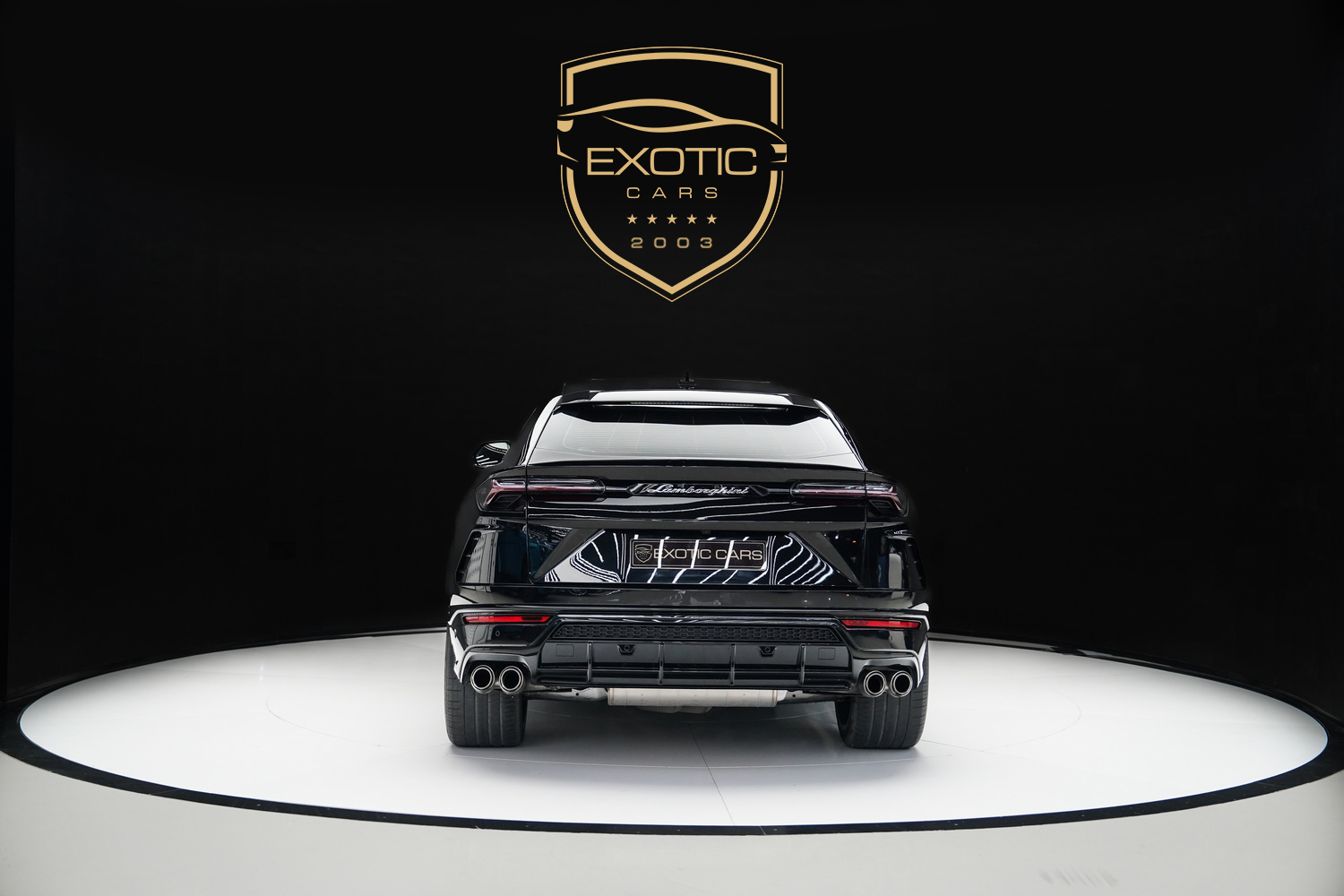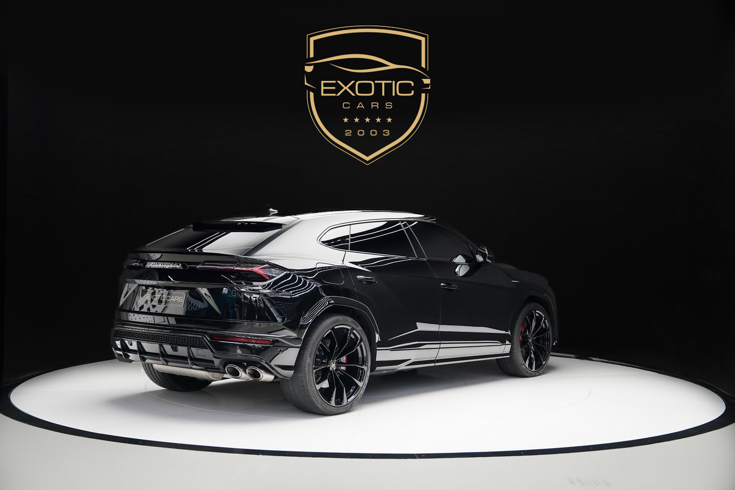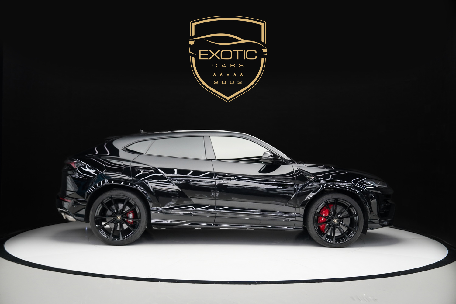 This 2020 Lamborghini Urus, featuring a sleek black exterior and a luxurious red interior, is available for sale in Dubai at Exotic Cars Dubai.