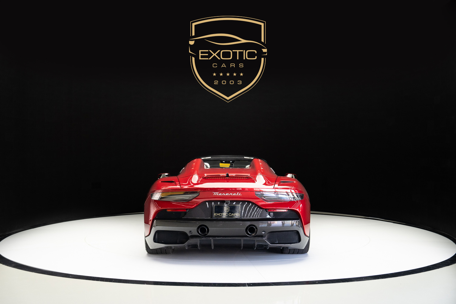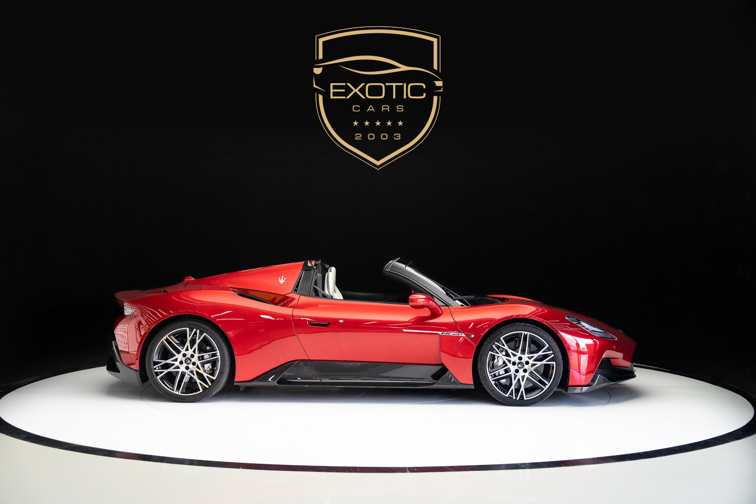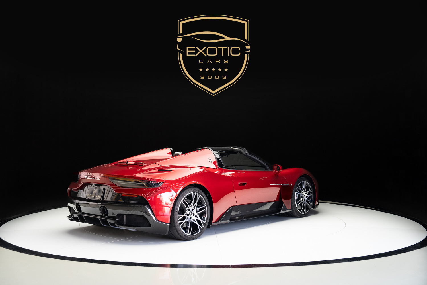 The 2023 Maserati MC20 Cielo Spider, with its red exterior, black interior, and full carbon detailing, is available for sale in Dubai at Exotic Cars Dubai. This is your chance to own one of the most exclusive supercars on the market.