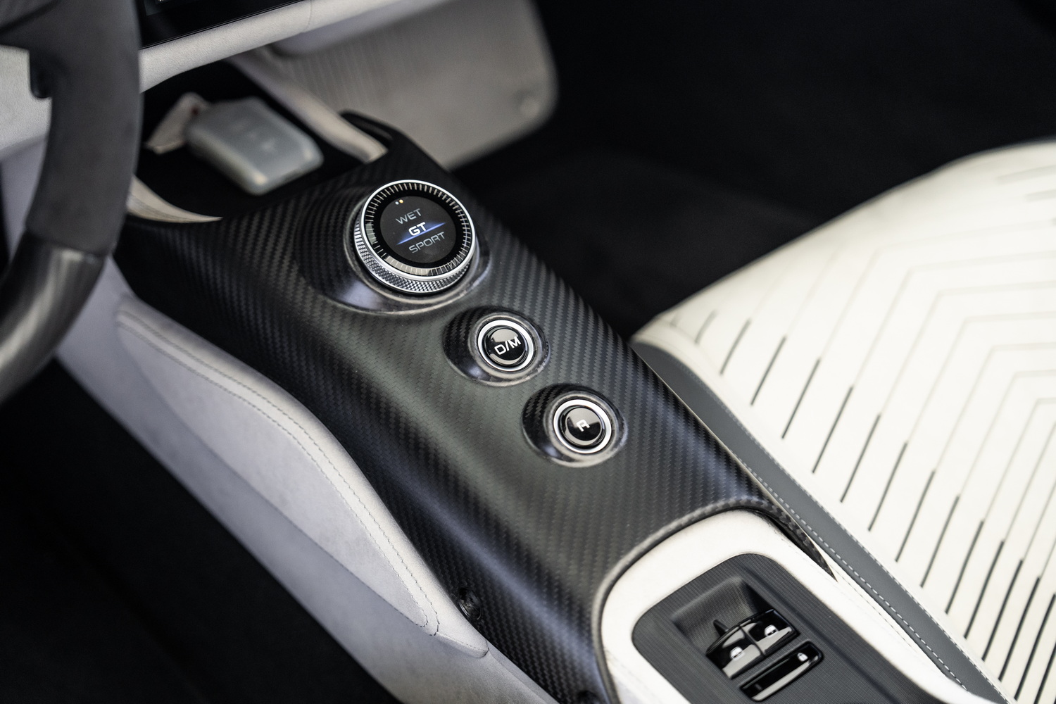 Step inside, and the black interior immerses you in a world of sophistication and advanced technology. Every detail is meticulously crafted, from the premium materials to the ergonomic seating. Full carbon trims add a sporty edge, perfectly complementing the car's high-performance character.