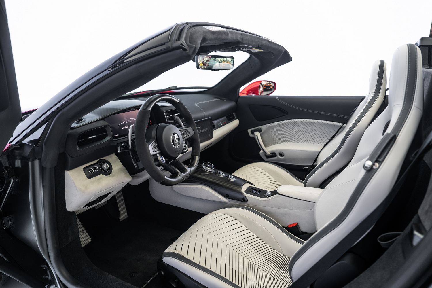 At the heart of the 2023 MC20 Cielo Spider lies a mid-mounted Nettuno V6 engine, delivering blistering acceleration and exceptional handling. The use of carbon fiber throughout ensures a lightweight yet rigid structure, enhancing speed and agility while maintaining safety and comfort.