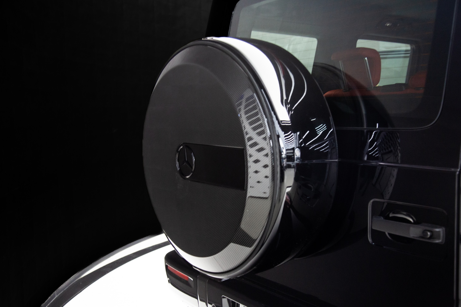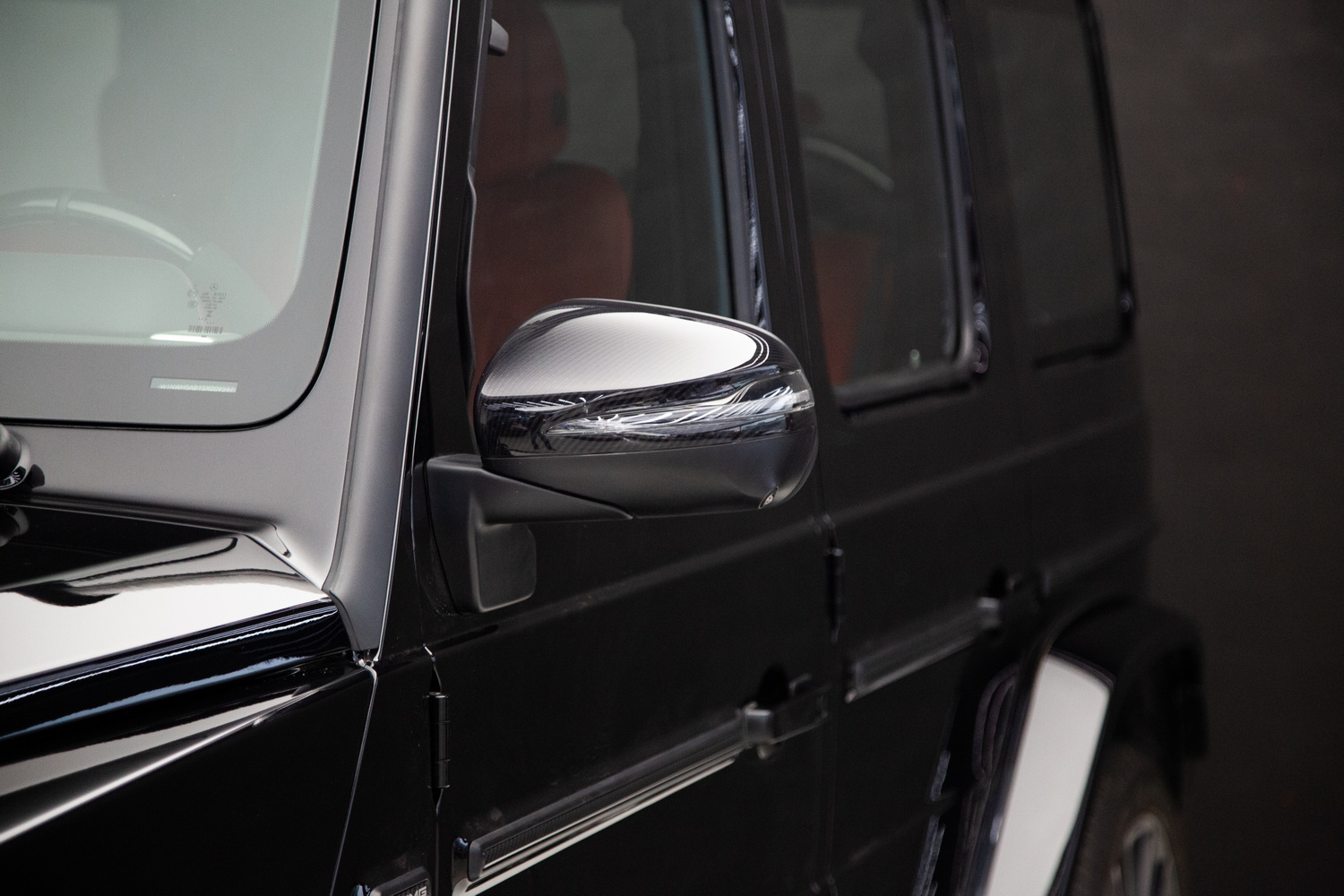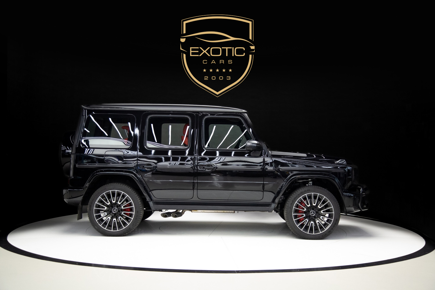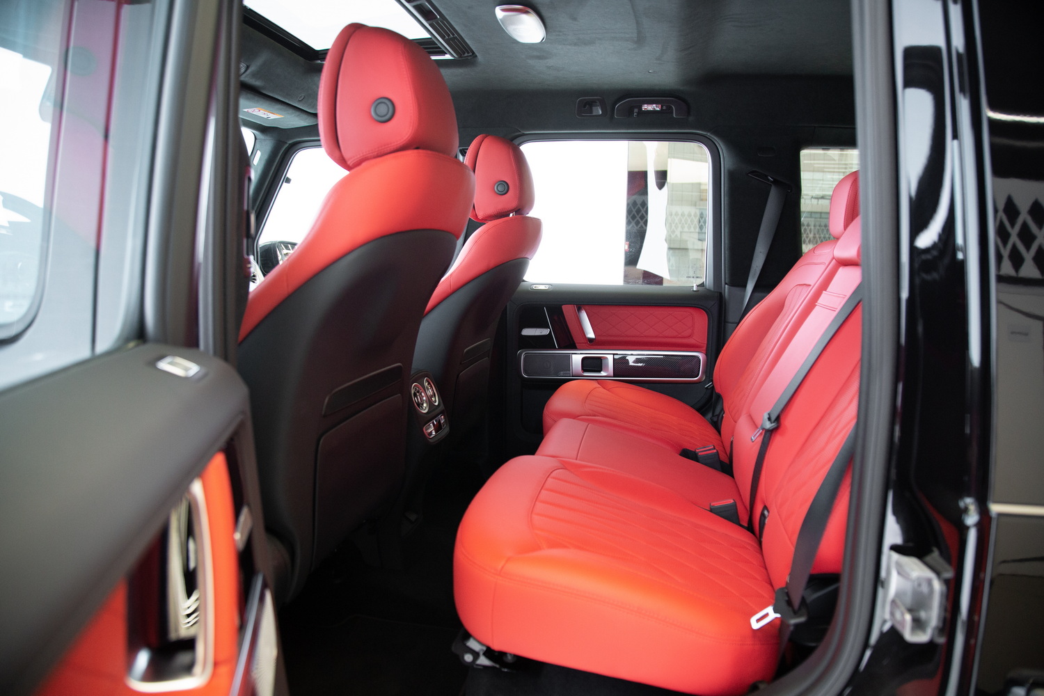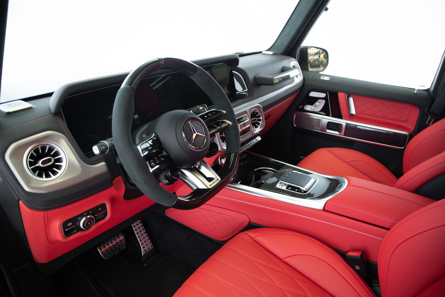 Step inside, and you are greeted by an opulent red leather interior, offering a perfect blend of style and comfort. The high-quality materials and meticulously crafted details provide a refined driving experience. What sets this model apart is its extensive carbon fibre trim, applied both inside and out. The interior carbon accents highlight the G63 AMG's performance-driven design while adding a modern, sophisticated touch. The exterior carbon elements further enhance its aggressive yet refined appearance, making it an ideal choice for those who appreciate both luxury and power.