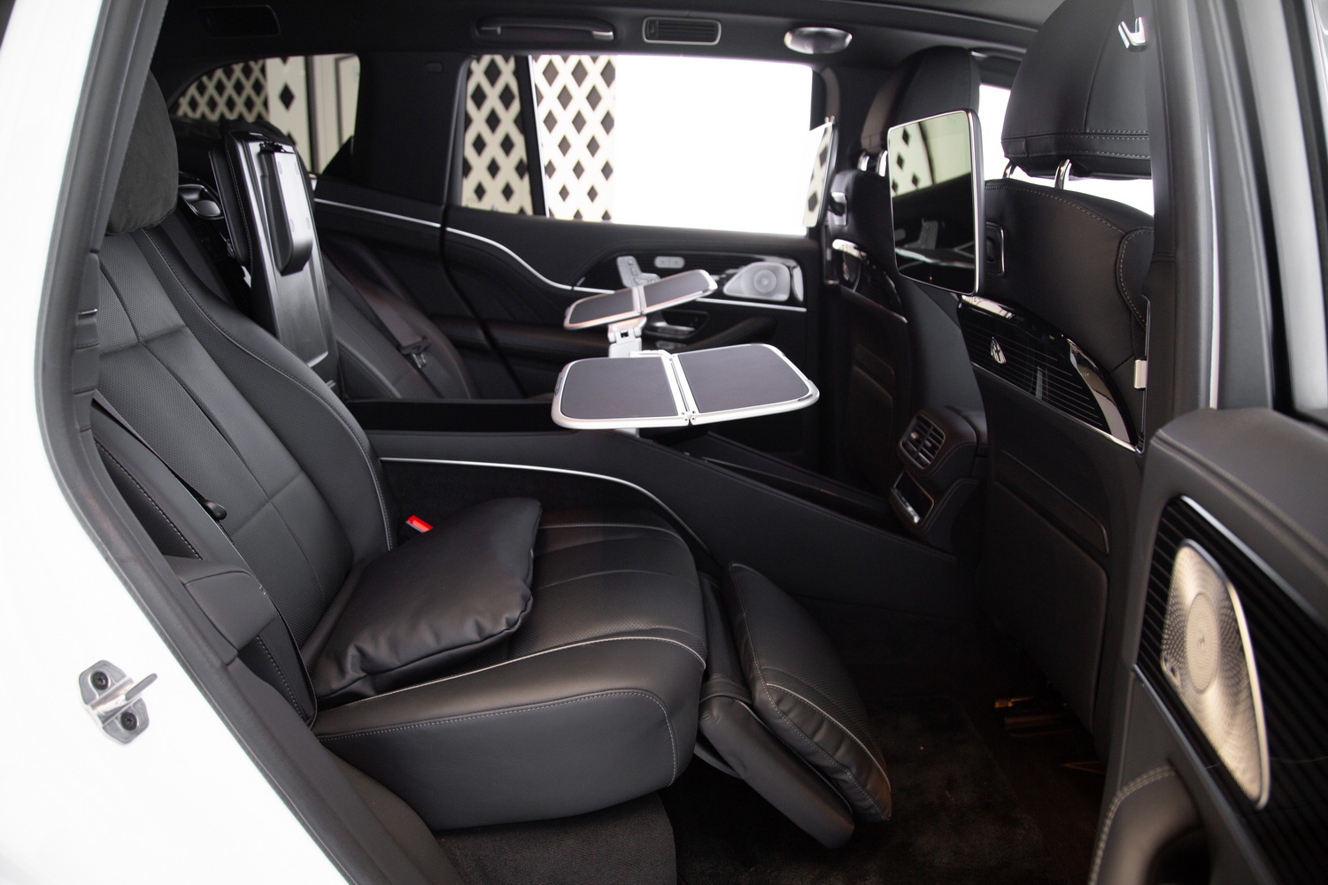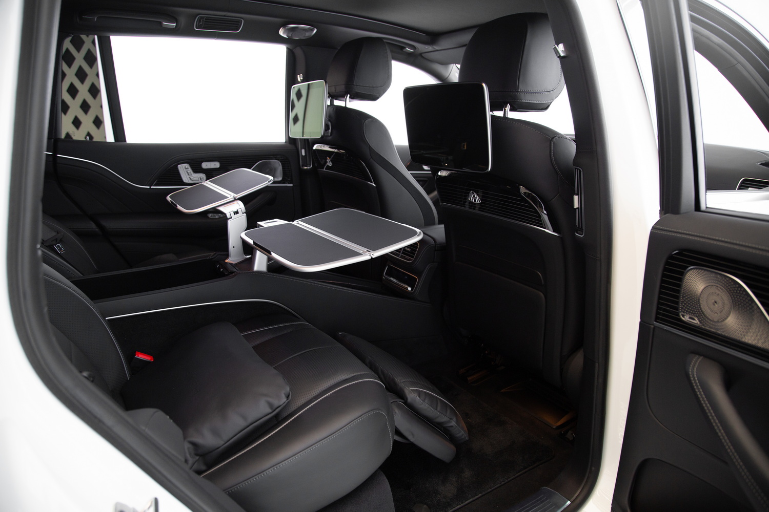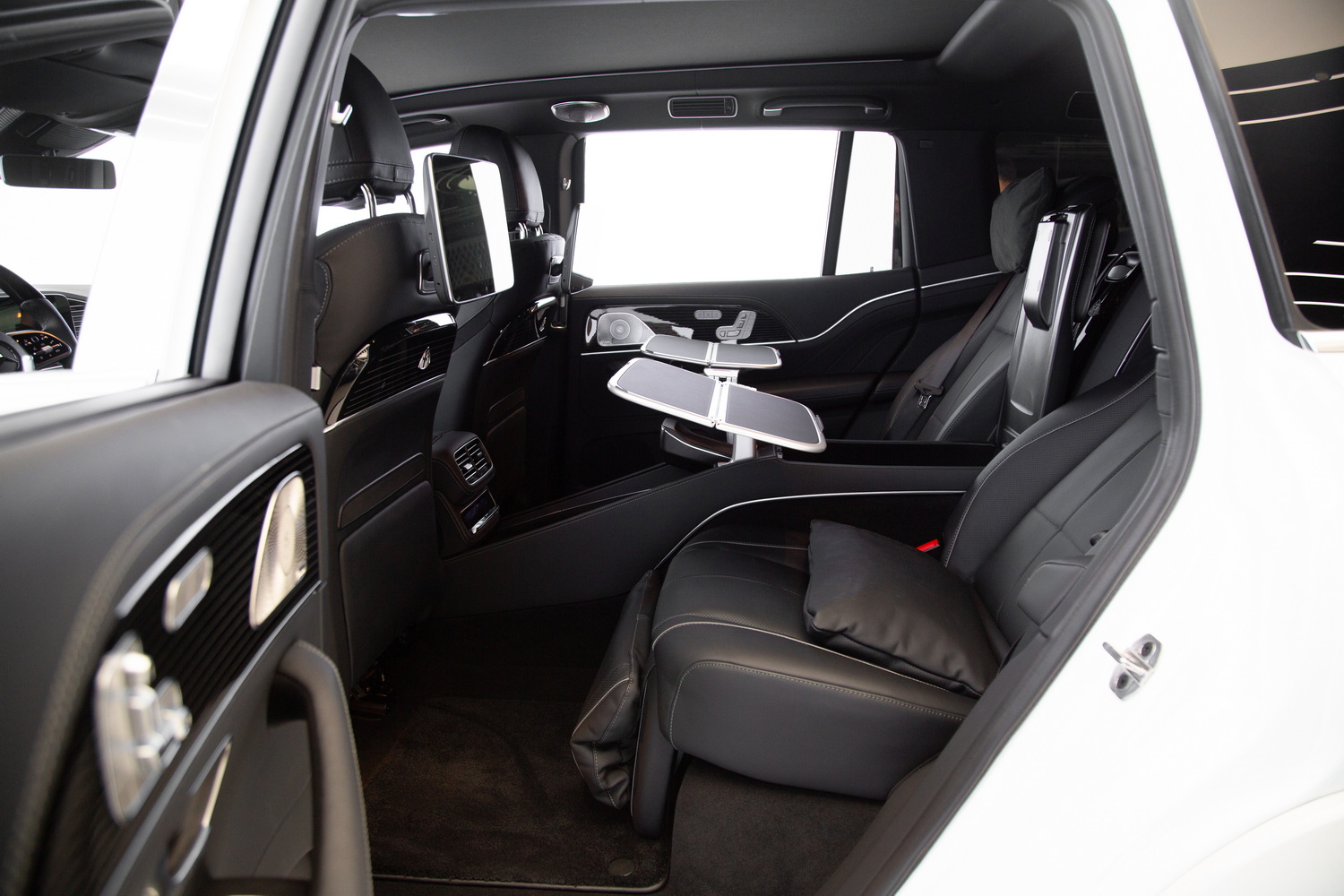 The 2023 Mercedes-Maybach GLS600 stands at the pinnacle of luxury SUVs, combining the robustness and versatility of the GLS class with the exquisite luxury for which Maybach is renowned. The white exterior of the vehicle exudes elegance and purity, perfectly complementing the luxurious black interior, which is designed to provide a first-class travel experience. The VIP seats offer unrivaled comfort and support, while the rear entertainment system and picnic tables ensure passengers enjoy a delightful and engaging journey.