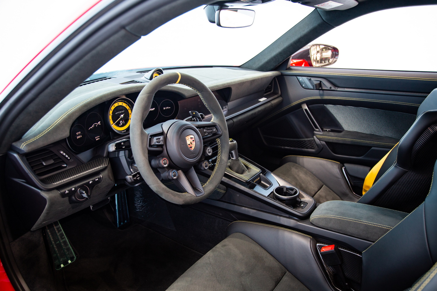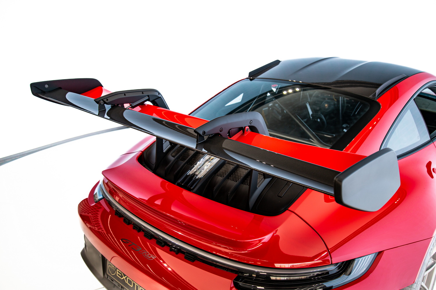Welcome to the world of automotive perfection with the exclusive 2023 Porsche 911 GT3RS Weissach. Adorned in a captivating red exterior and sleek black interior, this limited-edition supercar is a true masterpiece of engineering and design. The car is equipped with a prestigious Weissach package, further enhancing its performance and aerodynamics.