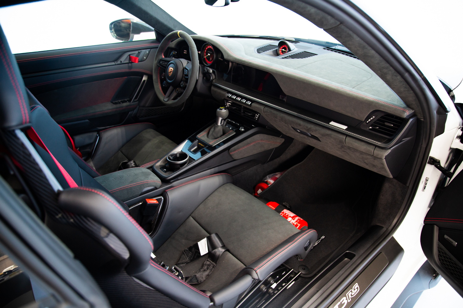 Experience the pinnacle of Porsche engineering with the 2023 Porsche 911 GT3 RS Weissach. This track-focused marvel is a symphony of performance and precision, designed to dominate both the road and the racetrack. With its striking White exterior and meticulously crafted Black interior featuring bold Red stitching, this car is a testament to Porsche's commitment to excellence.
