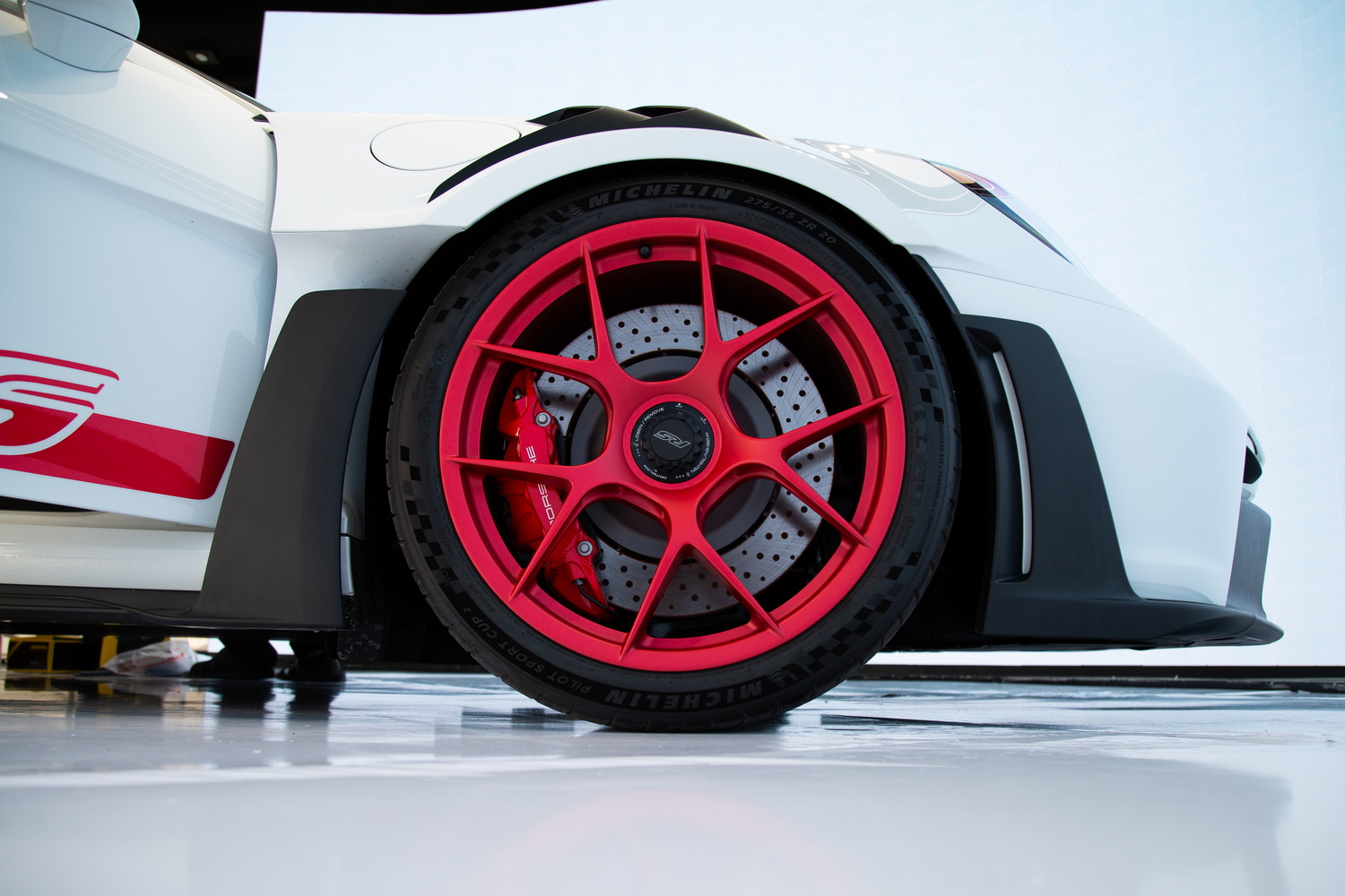 Equipped with the exclusive Weissach Package, this GT3 RS is elevated to new heights. The lightweight matte red aluminium wheels not only enhance its aesthetics but also contribute to its agile performance. Exterior and interior carbon fibre components embody the ethos of weight reduction without compromising structural integrity.