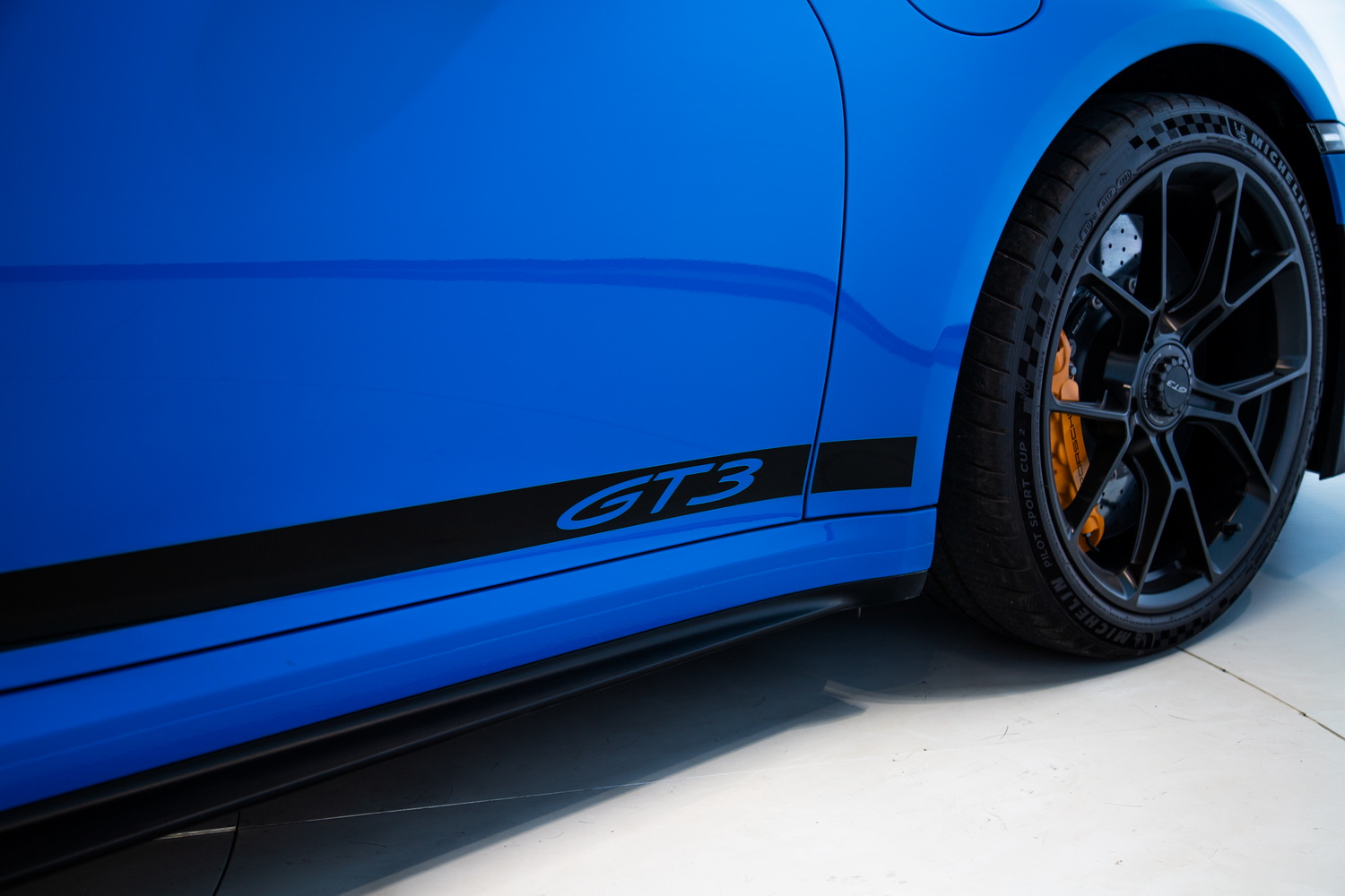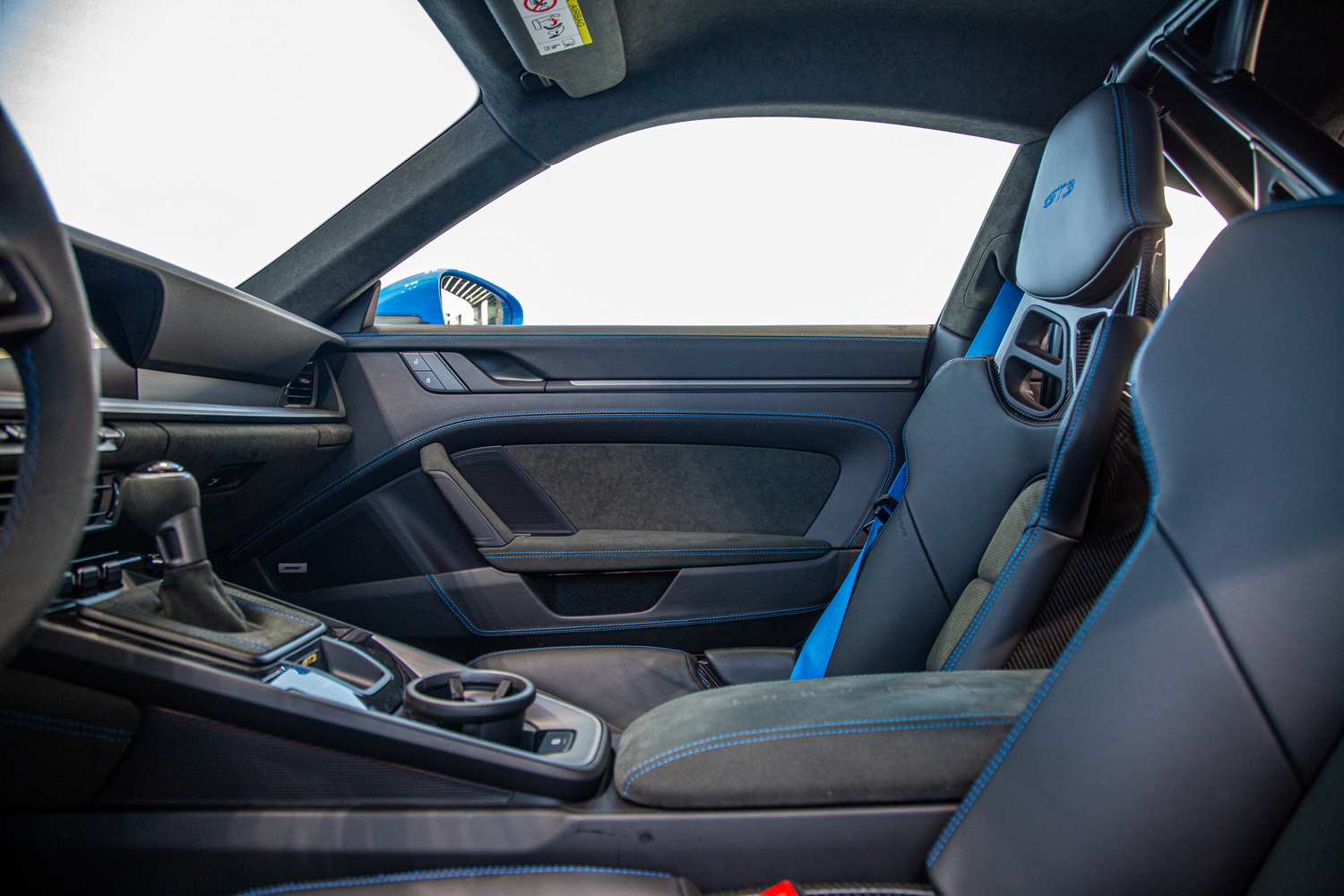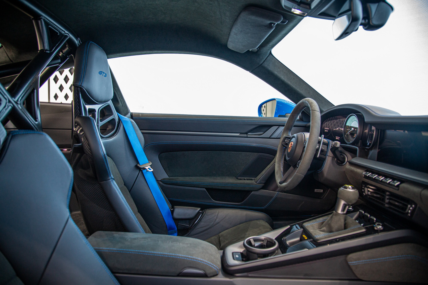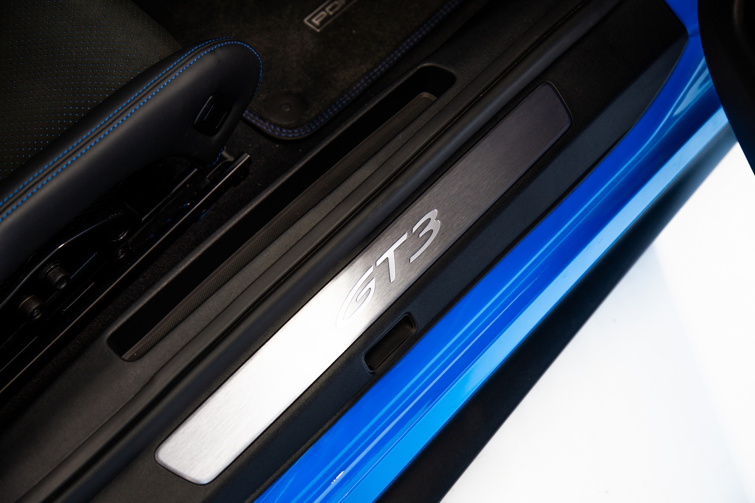 Step into the realm of pure driving exhilaration with the 2022 Porsche GT3. Its captivating blue exterior and sleek black interior design make a striking statement on the road. This high-performance sports car is equipped with a host of cutting-edge features, including carbon bucket seats that hug you perfectly for an unparalleled driving experience.