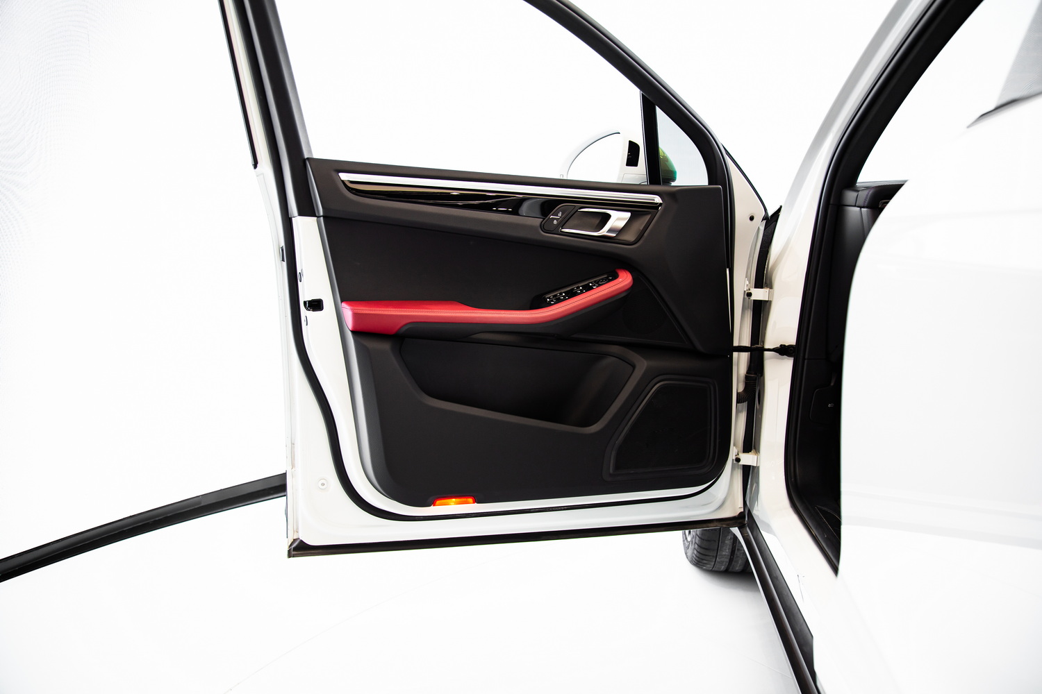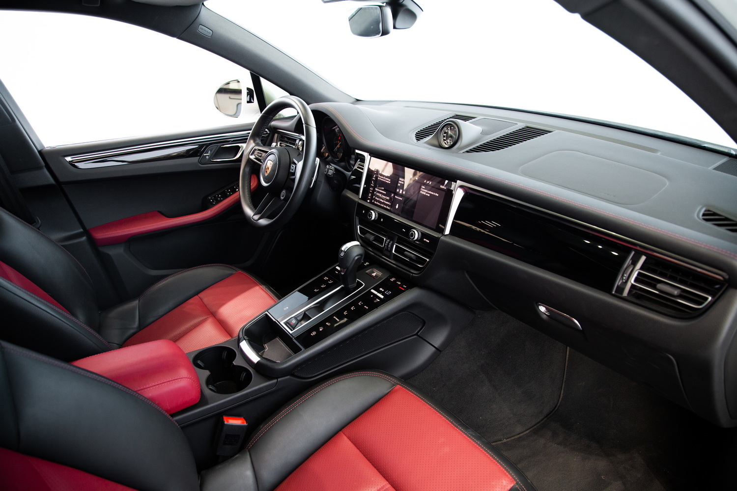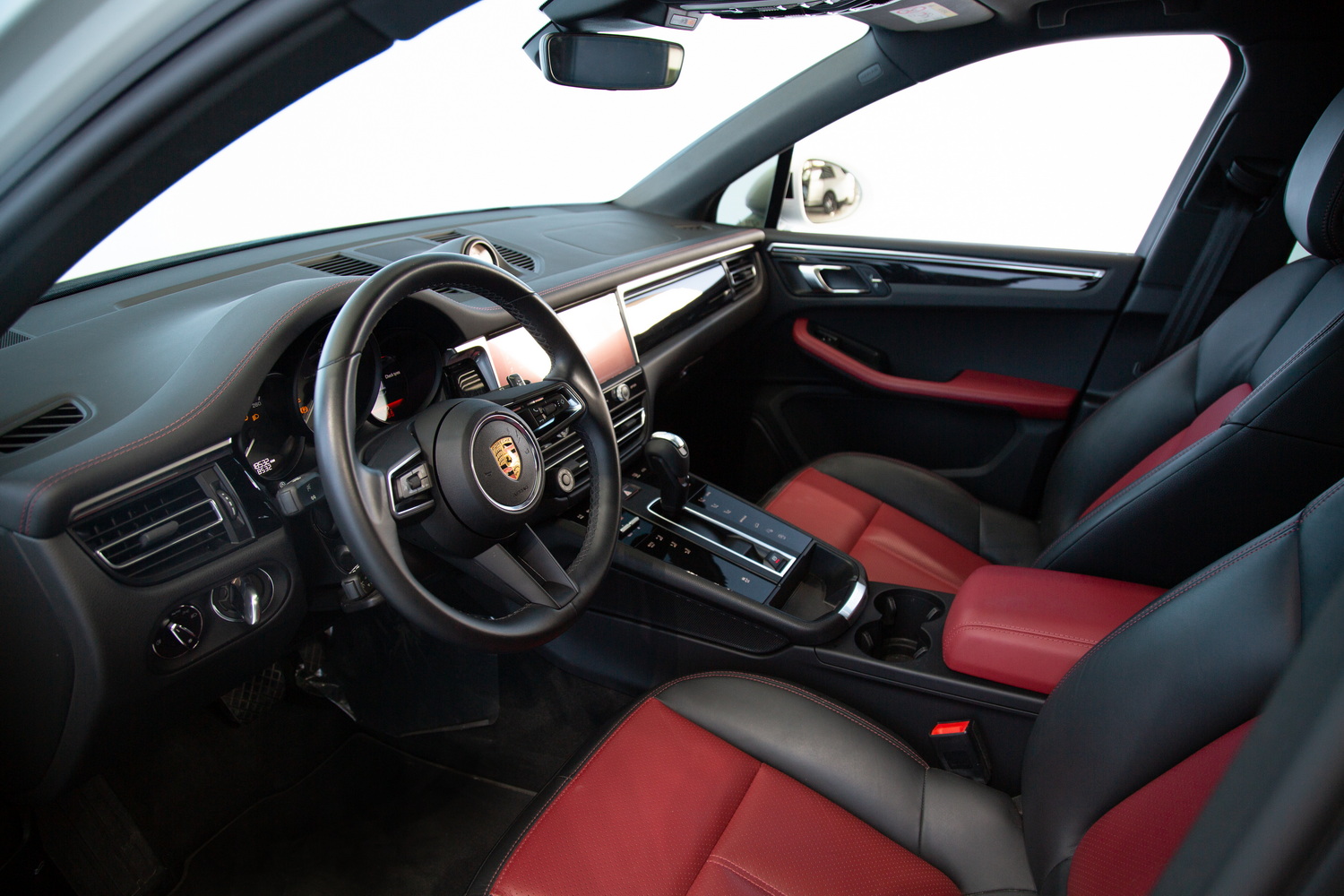 The interior of the Macan is a testament to Porsche's commitment to luxury and functionality. The two-tone black and red interior offers a striking contrast, creating an ambiance of sporty elegance. Every detail, from the meticulously stitched leather seats to the state-of-the-art infotainment system, has been designed with the driver and passengers in mind, ensuring a driving experience that's both exhilarating and comfortable.