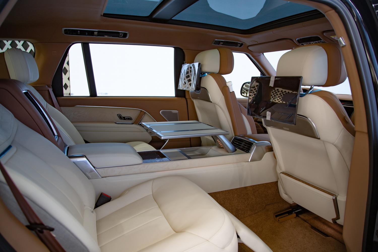 Experience the ultimate luxury and refinement with the Full Option 2023 Range Rover SV Autobiography Long Wheel Base. With its sleek black exterior and exquisite two-tone tan and white interior, this SUV commands attention on the road. Step inside and indulge in the Serenity Suite, featuring VIP seats, a beverage chiller, leg rests, and rear entertainment, creating a serene and relaxing environment for every journey.