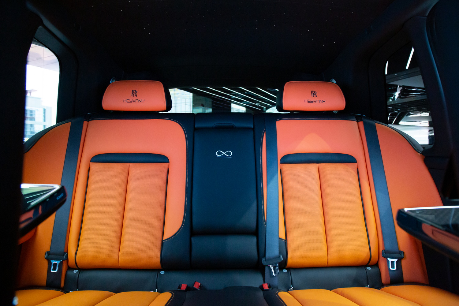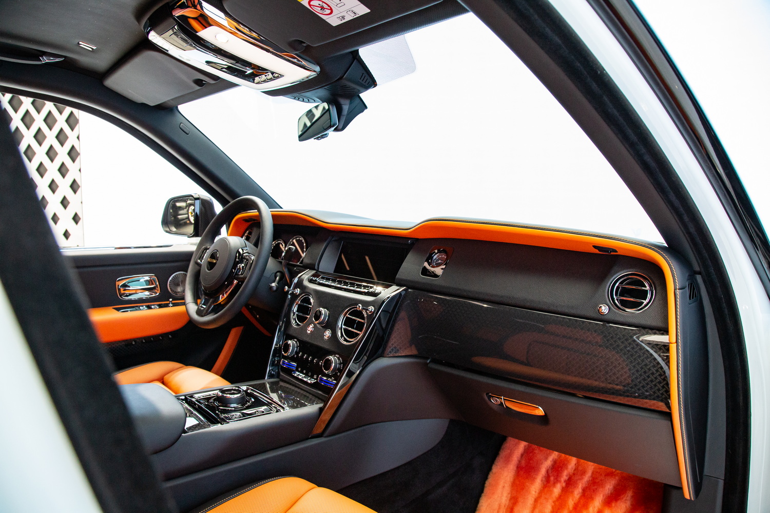 Step inside, and you will instantly realize that this is not just any Rolls Royce Cullinan. The interior is a masterpiece of luxury and meticulous attention to detail. Custom Keyvany leather upholstery transforms the cabin into a decadent retreat, where even the longest journeys feel too short. Complementing this are the finest Keyvany carbon fiber accents and a unique starlight headliner that adds a celestial touch to your drive.