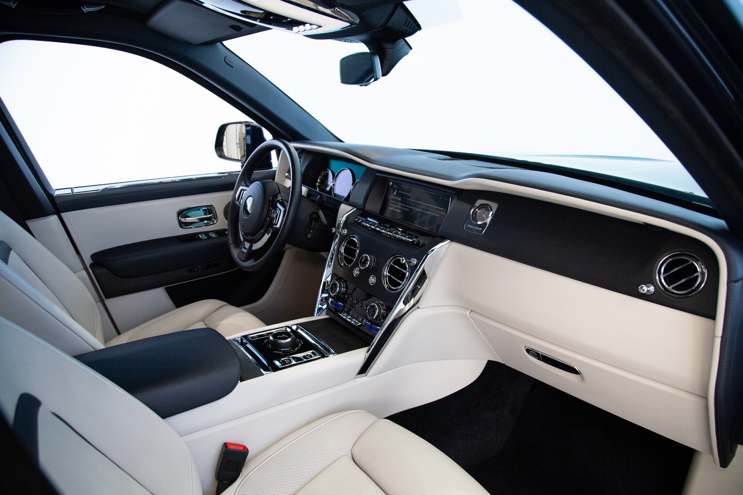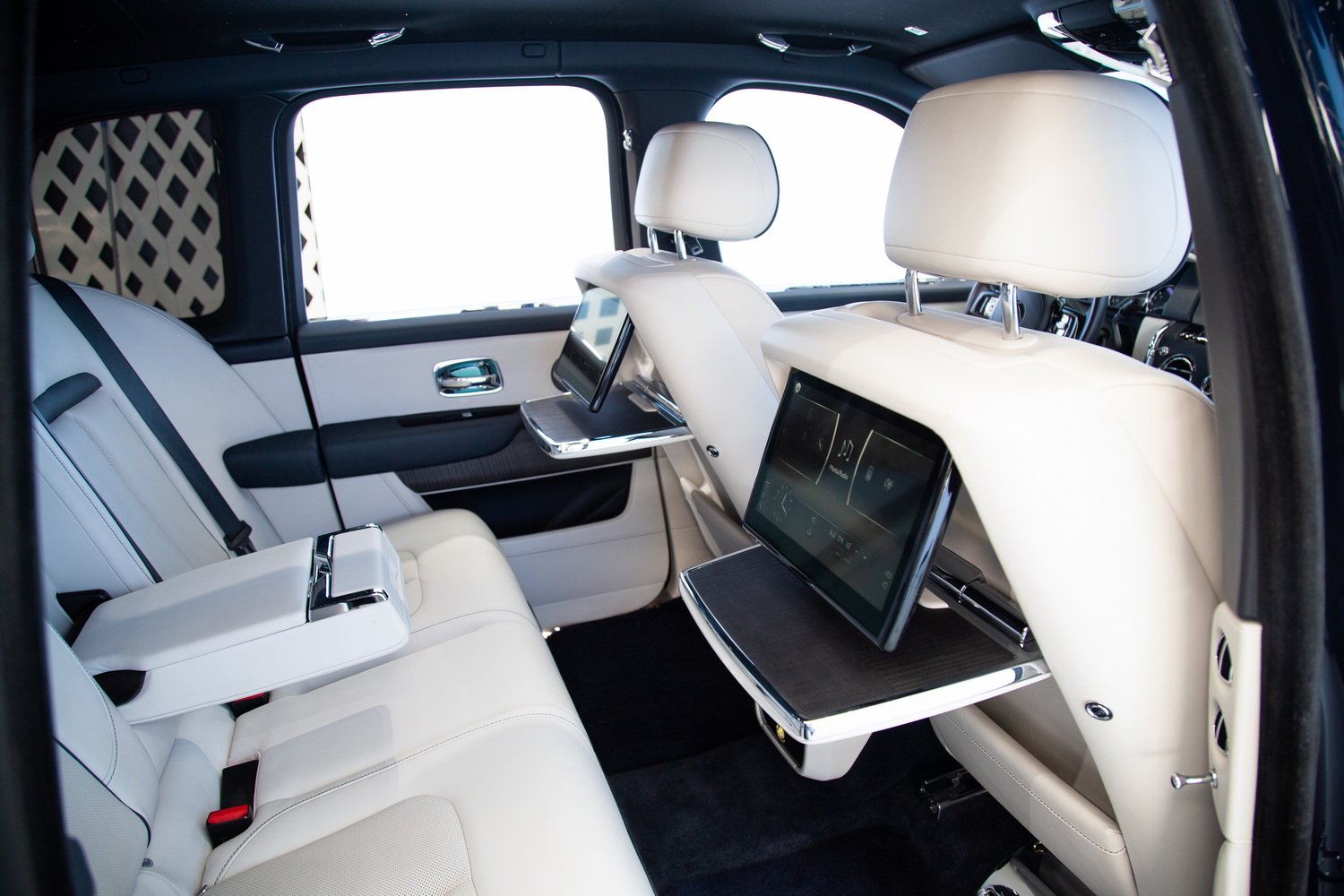 Step into the opulent cabin of the 2021 Rolls Royce Cullinan and immerse yourself in a world of refined luxury. The finest materials and exquisite craftsmanship await, with an ivory interior that exudes sophistication. The luxurious leather seats, beautifully finished with meticulous stitching and attention to detail, provide a truly luxurious experience for both driver and passengers.