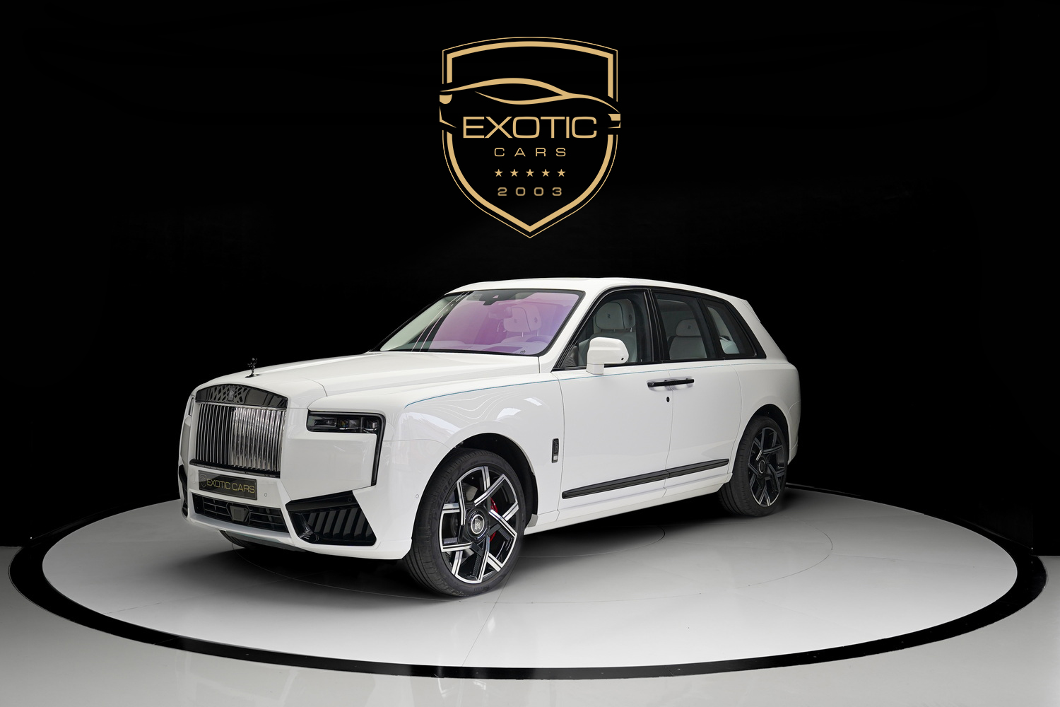 Exotic Cars Dubai proudly presents the 2025 Rolls Royce Cullinan Black Badge. This model offers a bolder, more assertive take on the world’s most luxurious SUV. It features a pristine white exterior and a sleek black interior. This Black Badge edition adds to the Cullinan’s elegance with improved performance, carbon fiber details, and a commanding presence on the road.