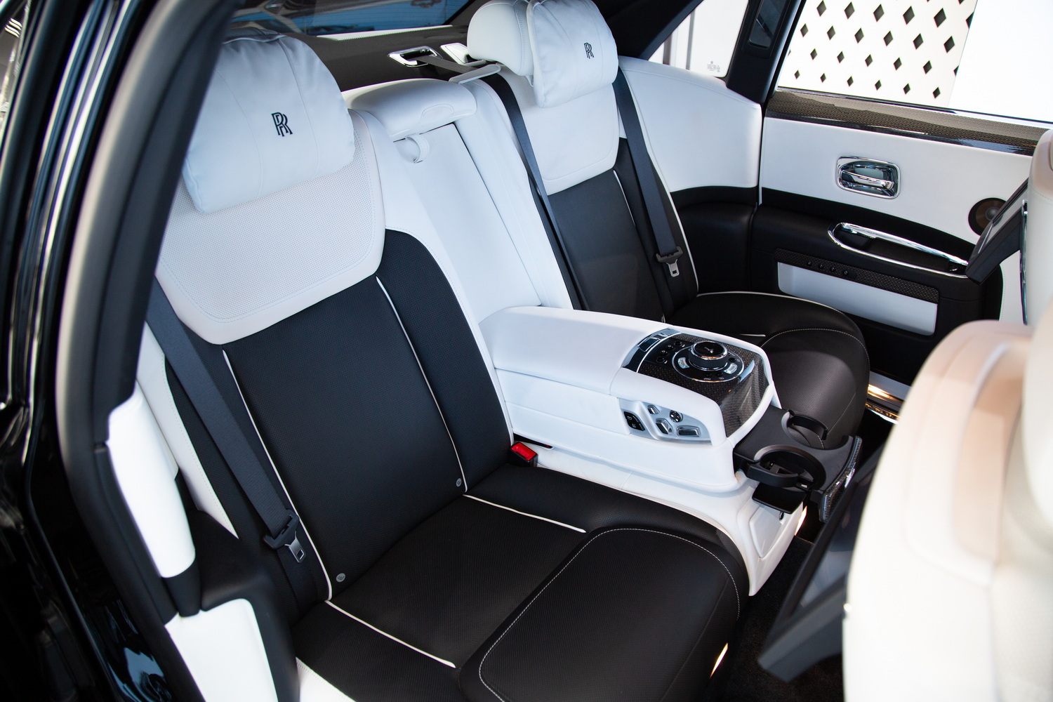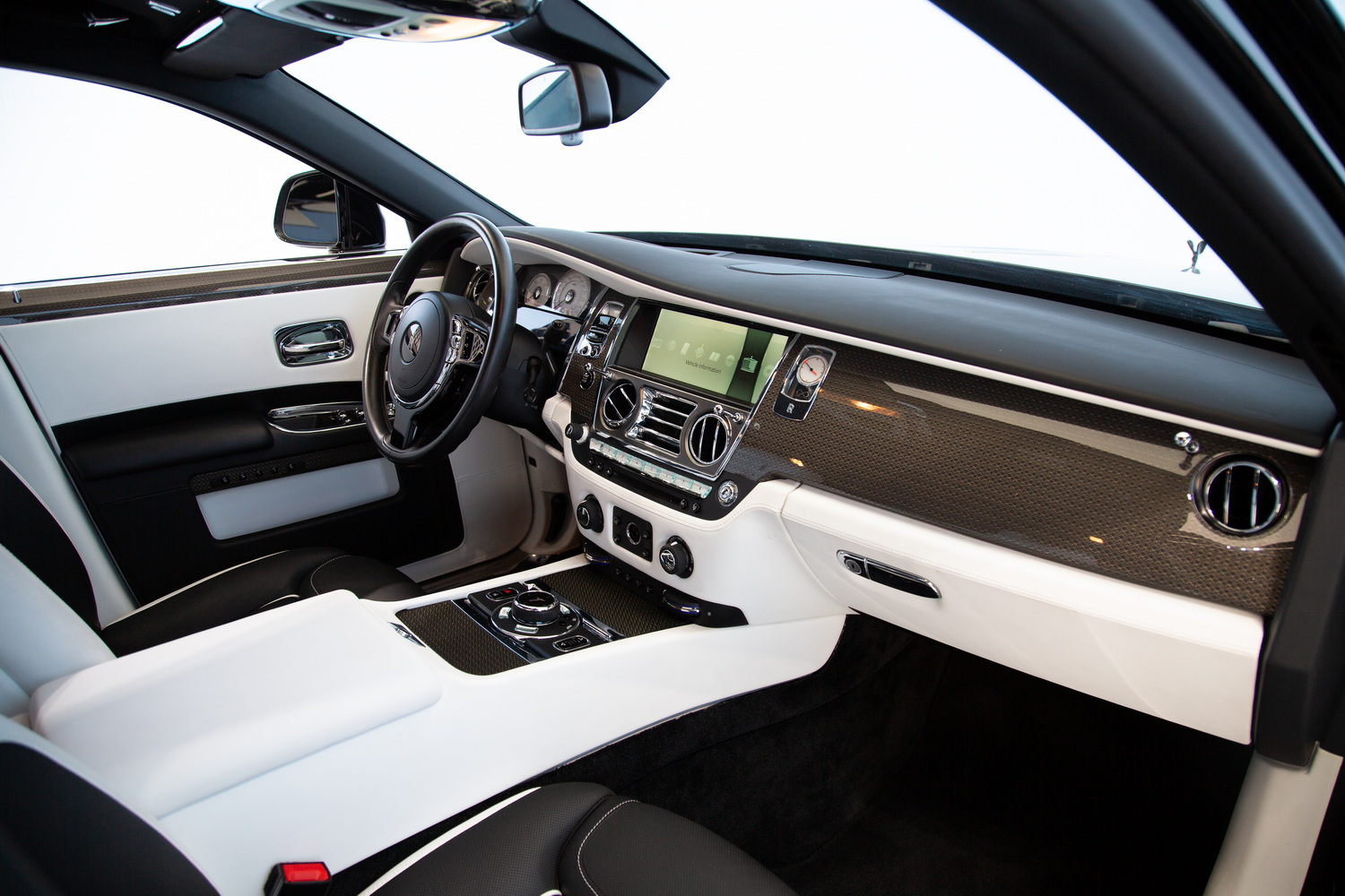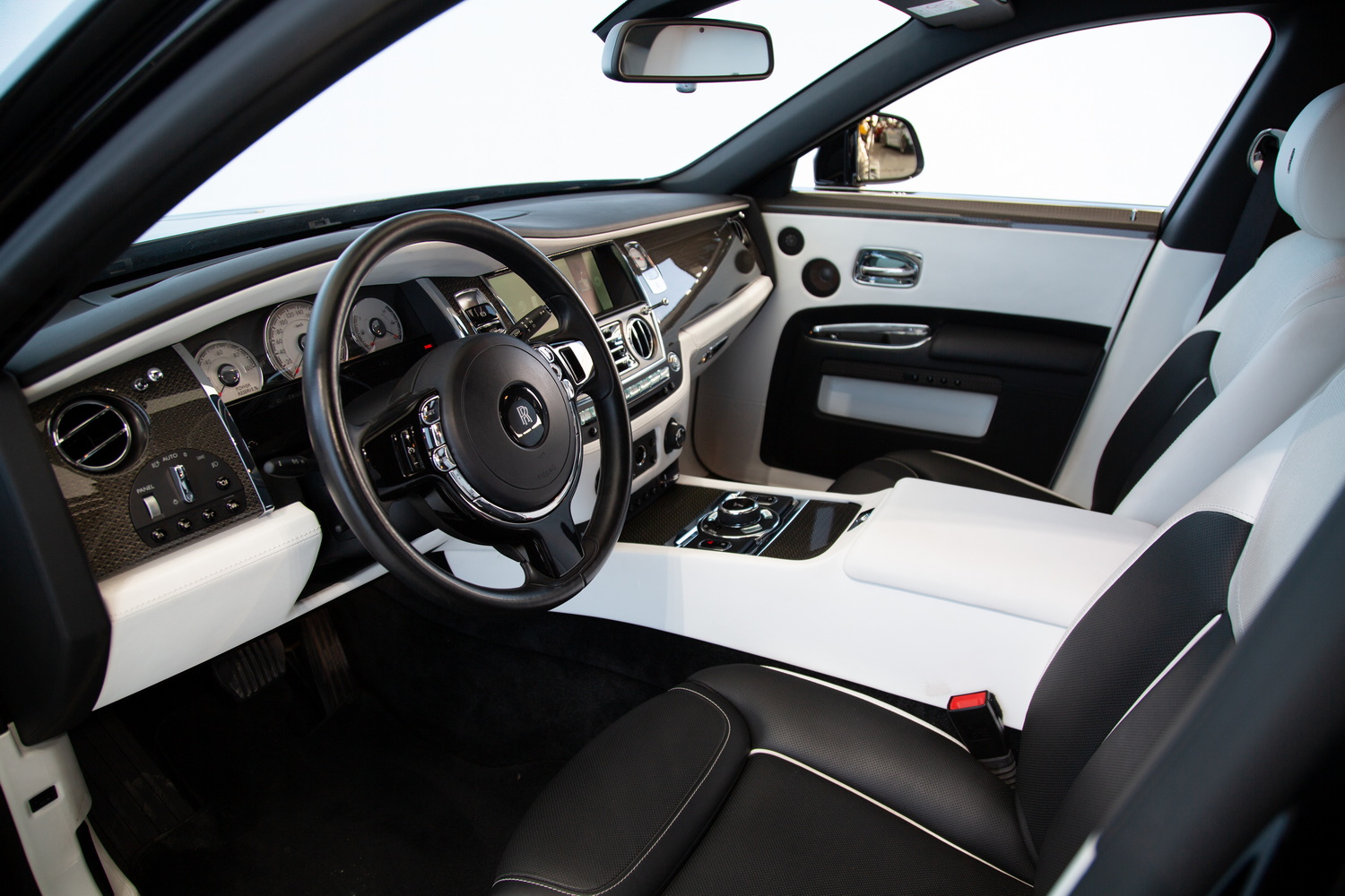 The sleek Black exterior of the 2017 Rolls-Royce Ghost Black Badge exudes sophistication and commands attention on the road, while the luxurious Ivory and Black interior creates a harmonious blend of opulence and refinement. Step inside and immerse yourself in the epitome of comfort and entertainment.