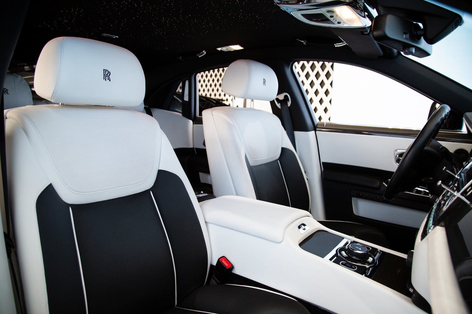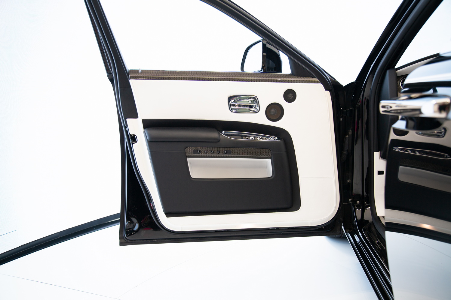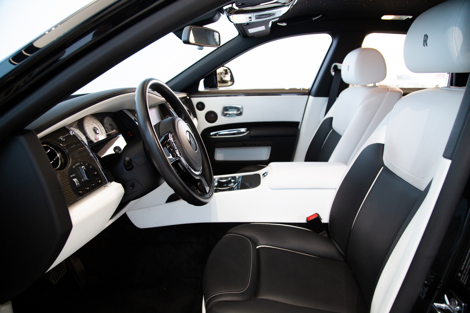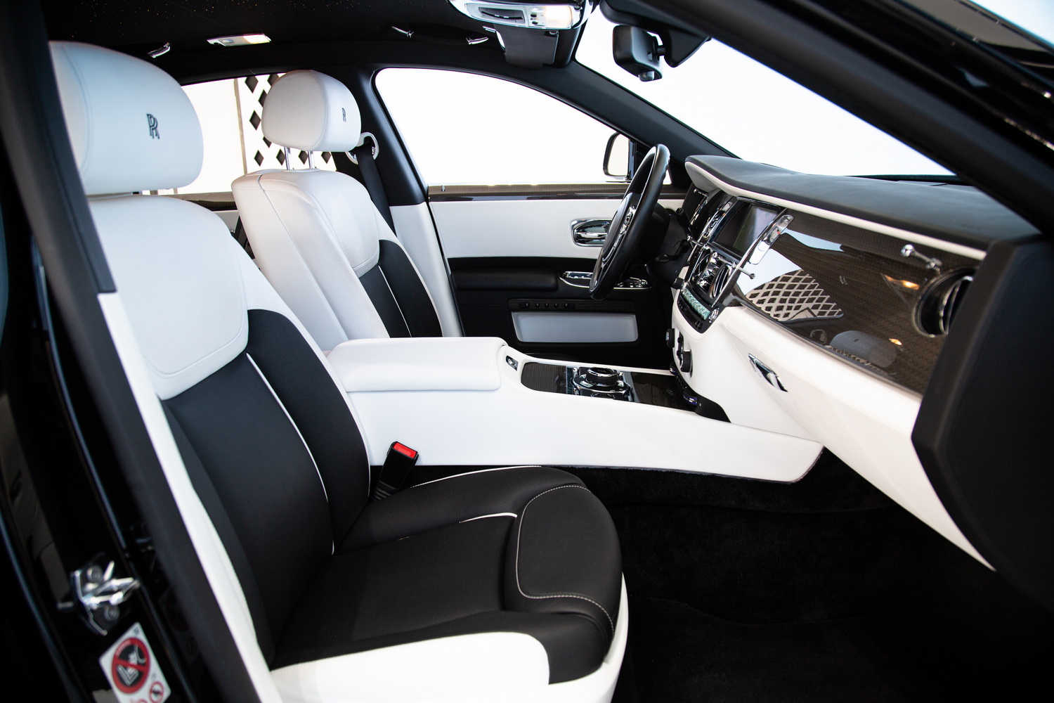 The sleek Black exterior of the 2017 Rolls-Royce Ghost Black Badge exudes sophistication and commands attention on the road, while the luxurious Ivory and Black interior creates a harmonious blend of opulence and refinement. Step inside and immerse yourself in the epitome of comfort and entertainment.