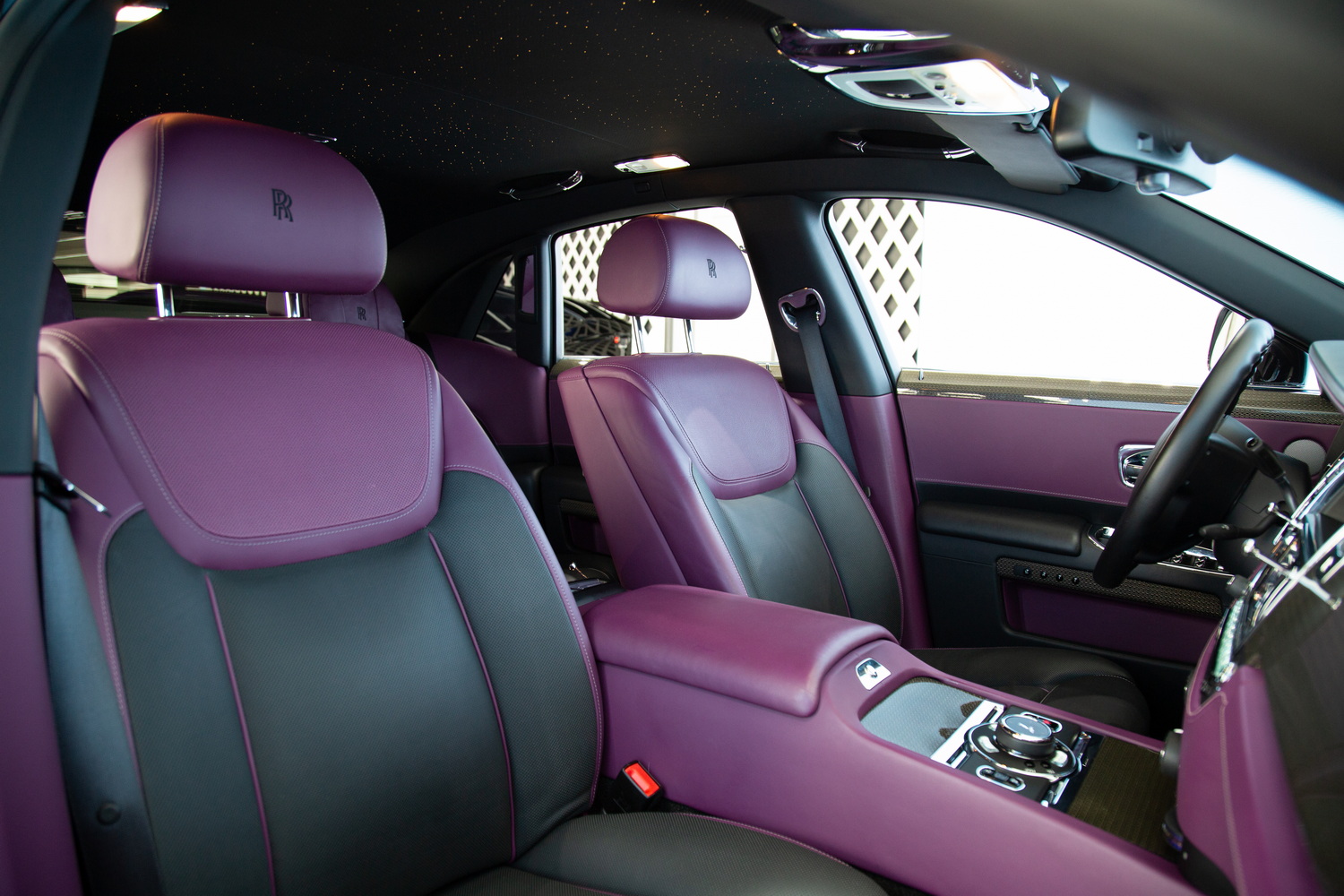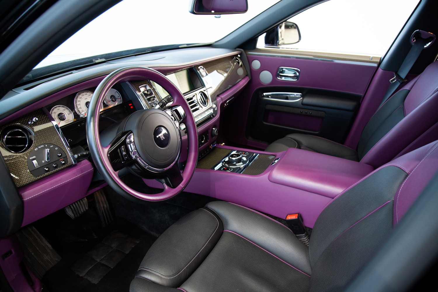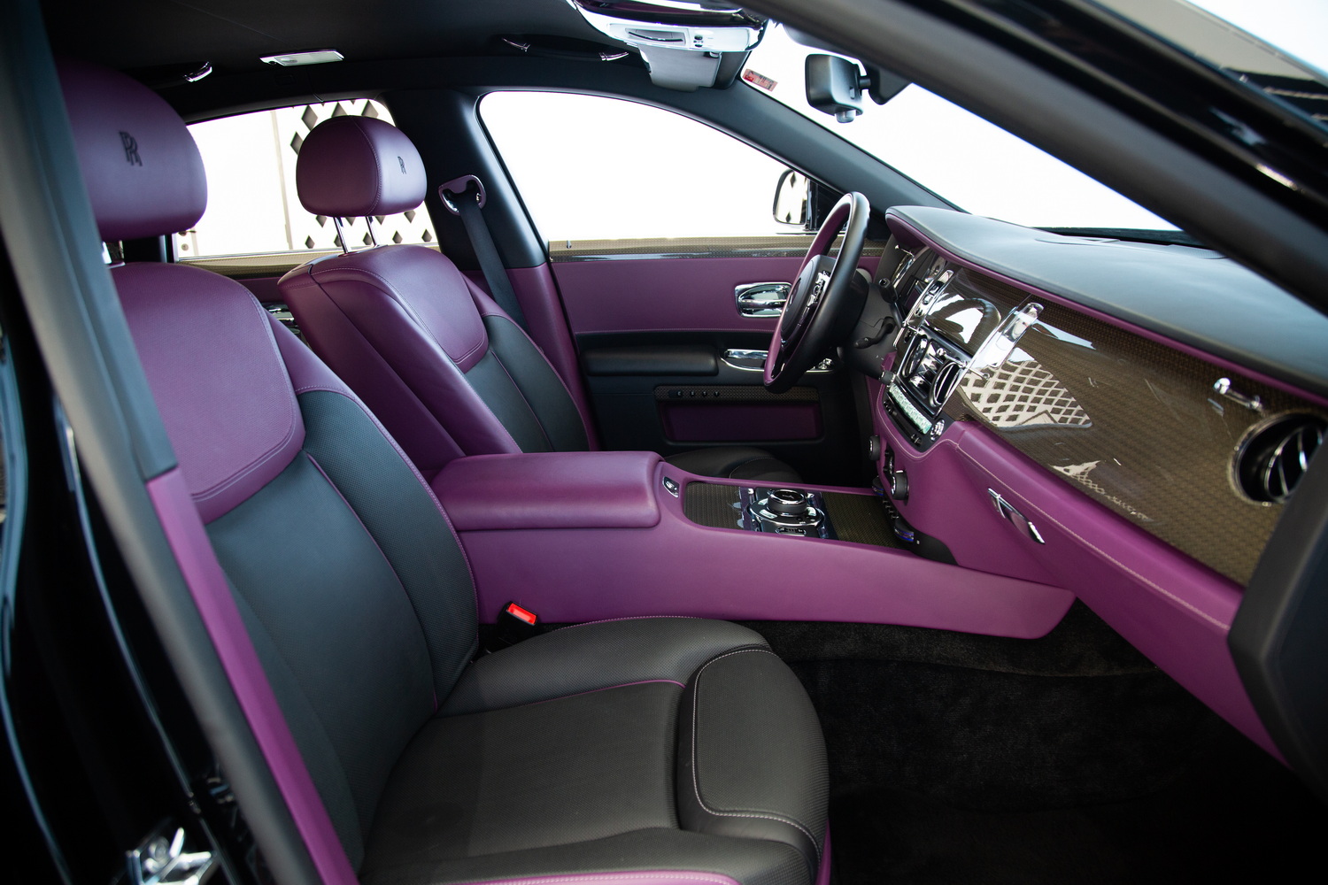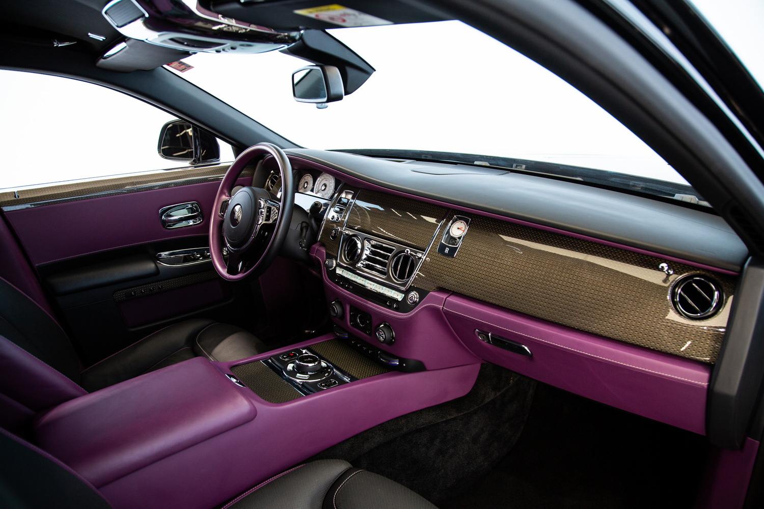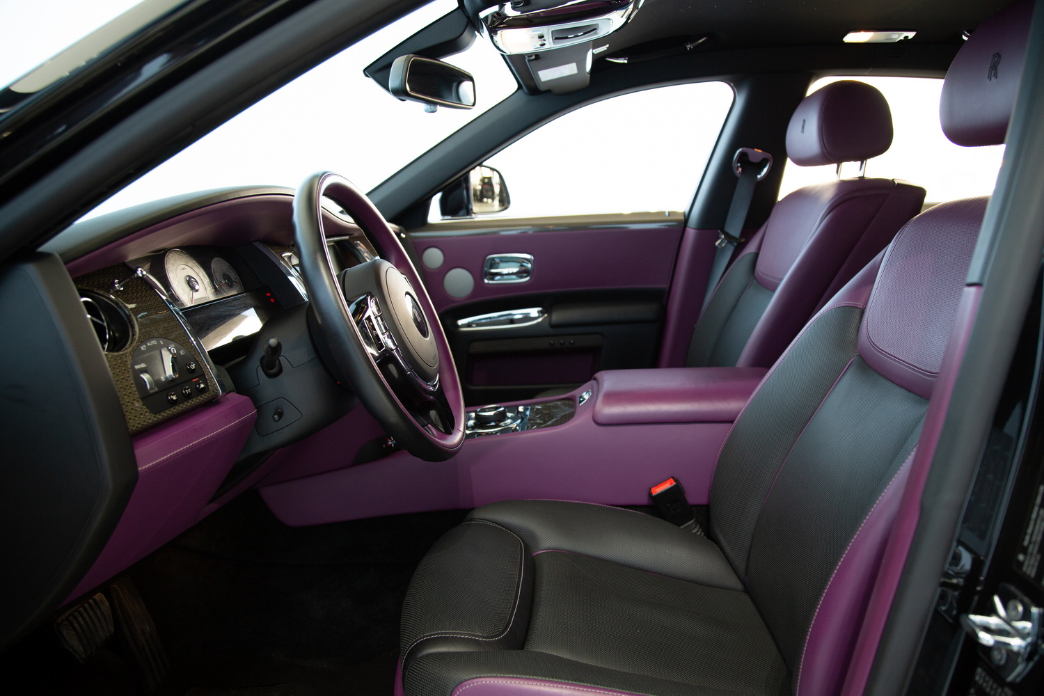 The exterior of the 2017 Rolls-Royce Ghost Black Badge, finished in a captivating Black, exudes timeless elegance and showcases its powerful presence on the road. Complementing the sleek exterior is the luxurious Purple and Black interior, combining opulence and refinement to create a truly unforgettable driving experience.
