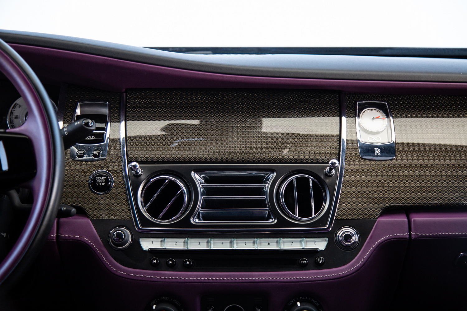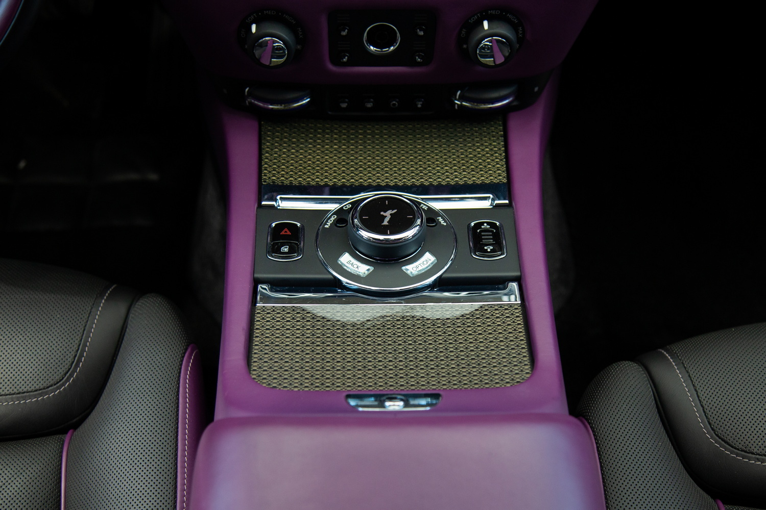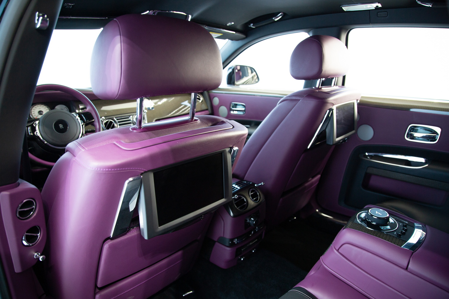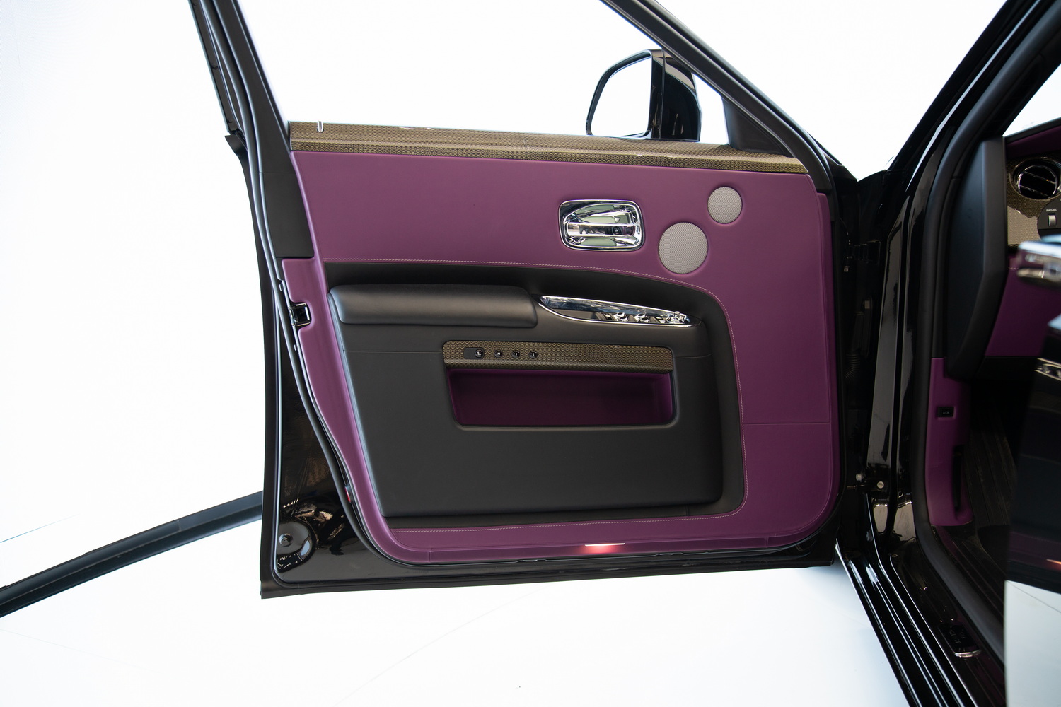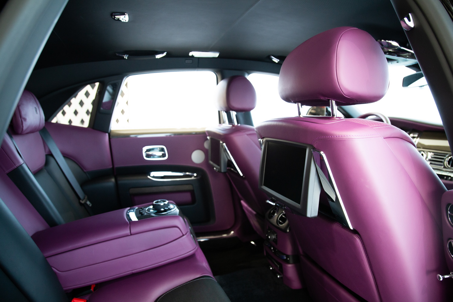 The exterior of the 2017 Rolls-Royce Ghost Black Badge, finished in a captivating Black, exudes timeless elegance and showcases its powerful presence on the road. Complementing the sleek exterior is the luxurious Purple and Black interior, combining opulence and refinement to create a truly unforgettable driving experience.