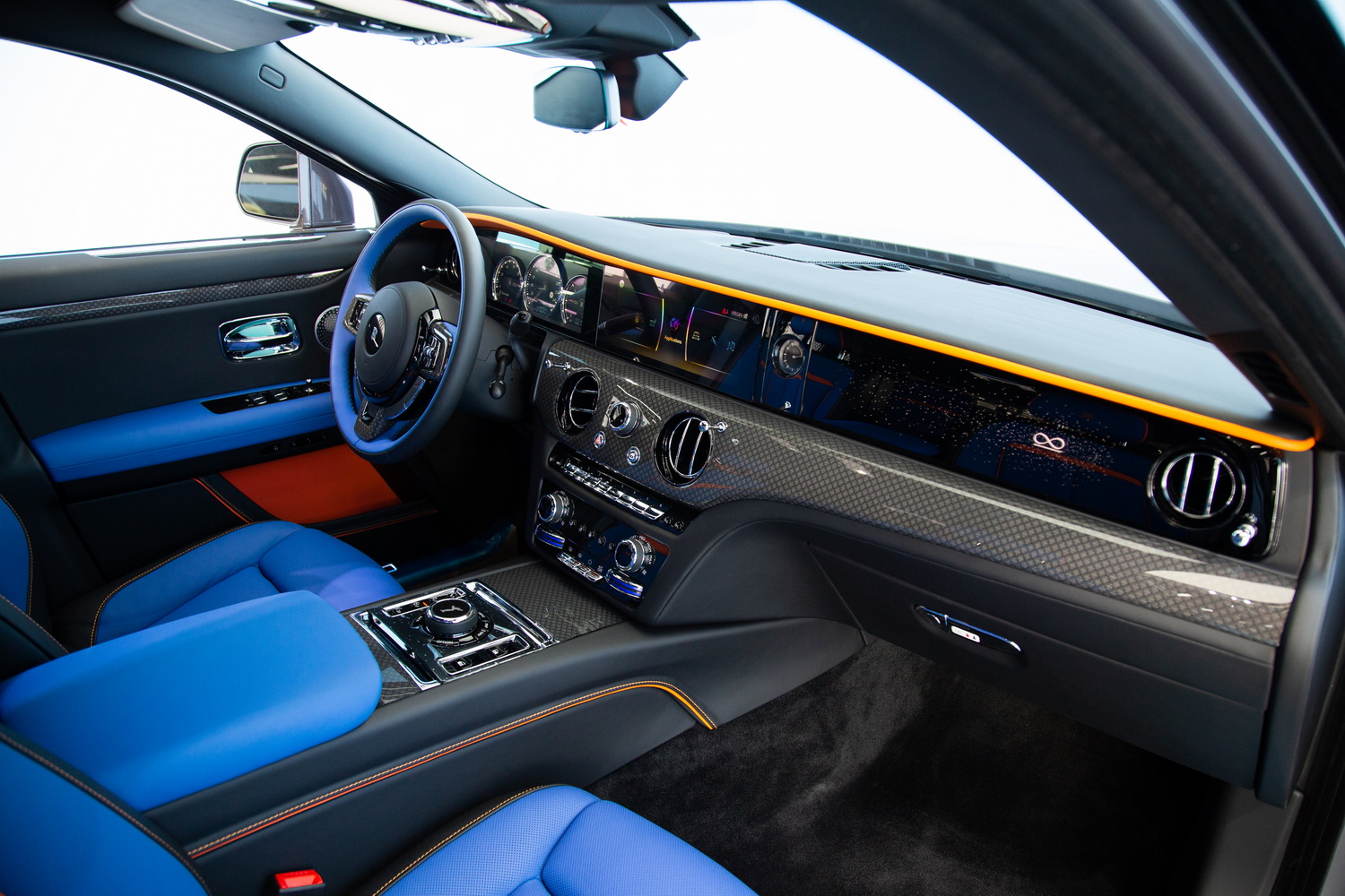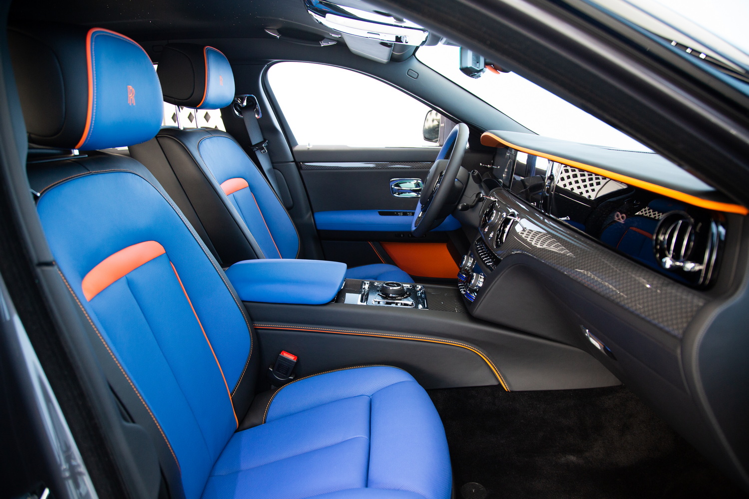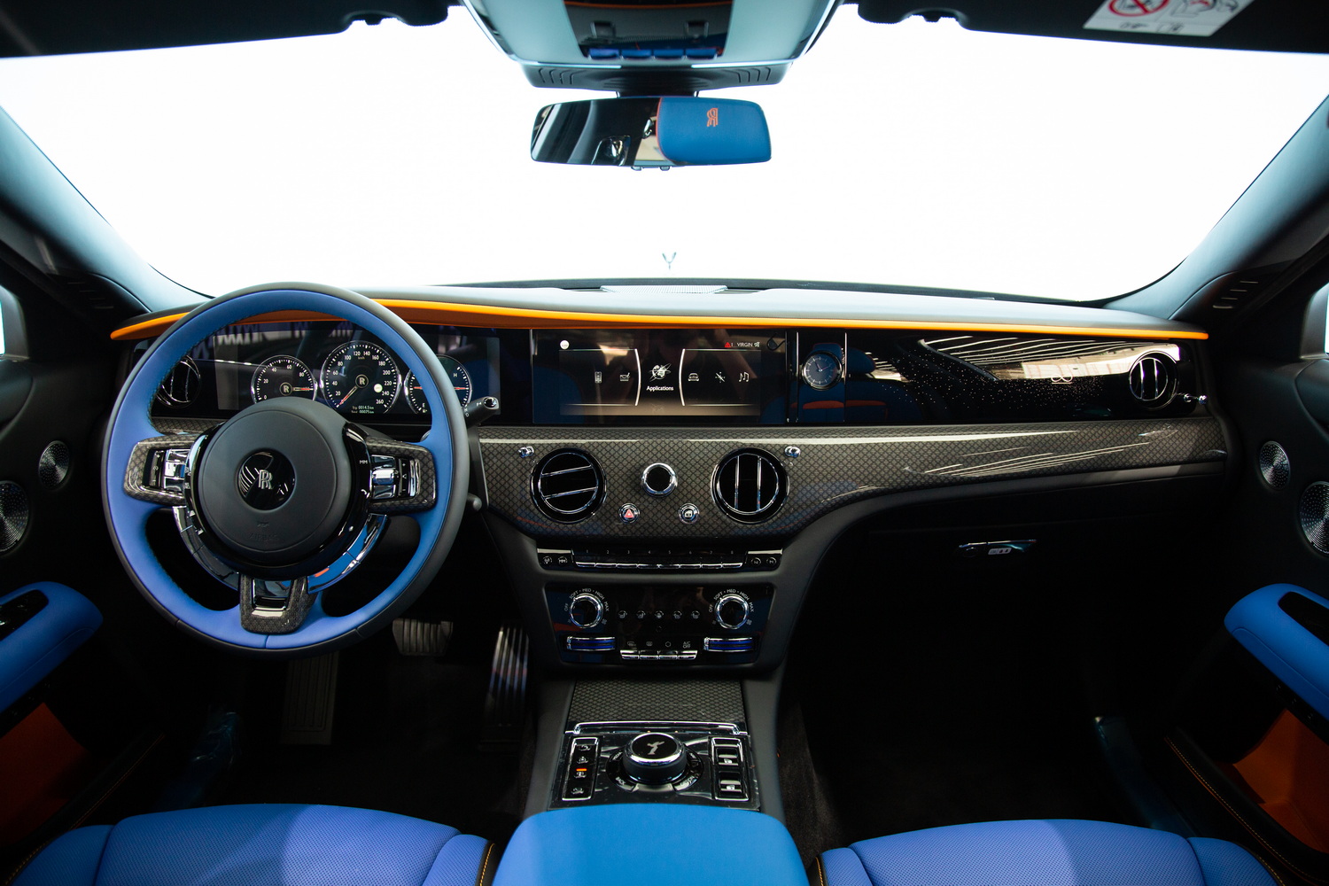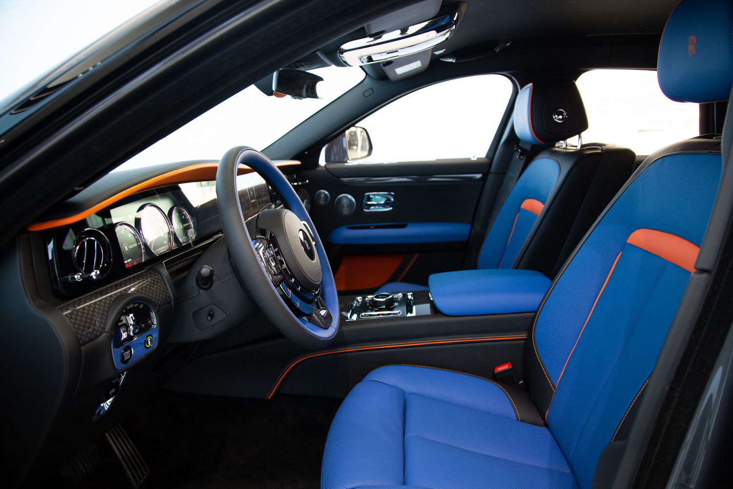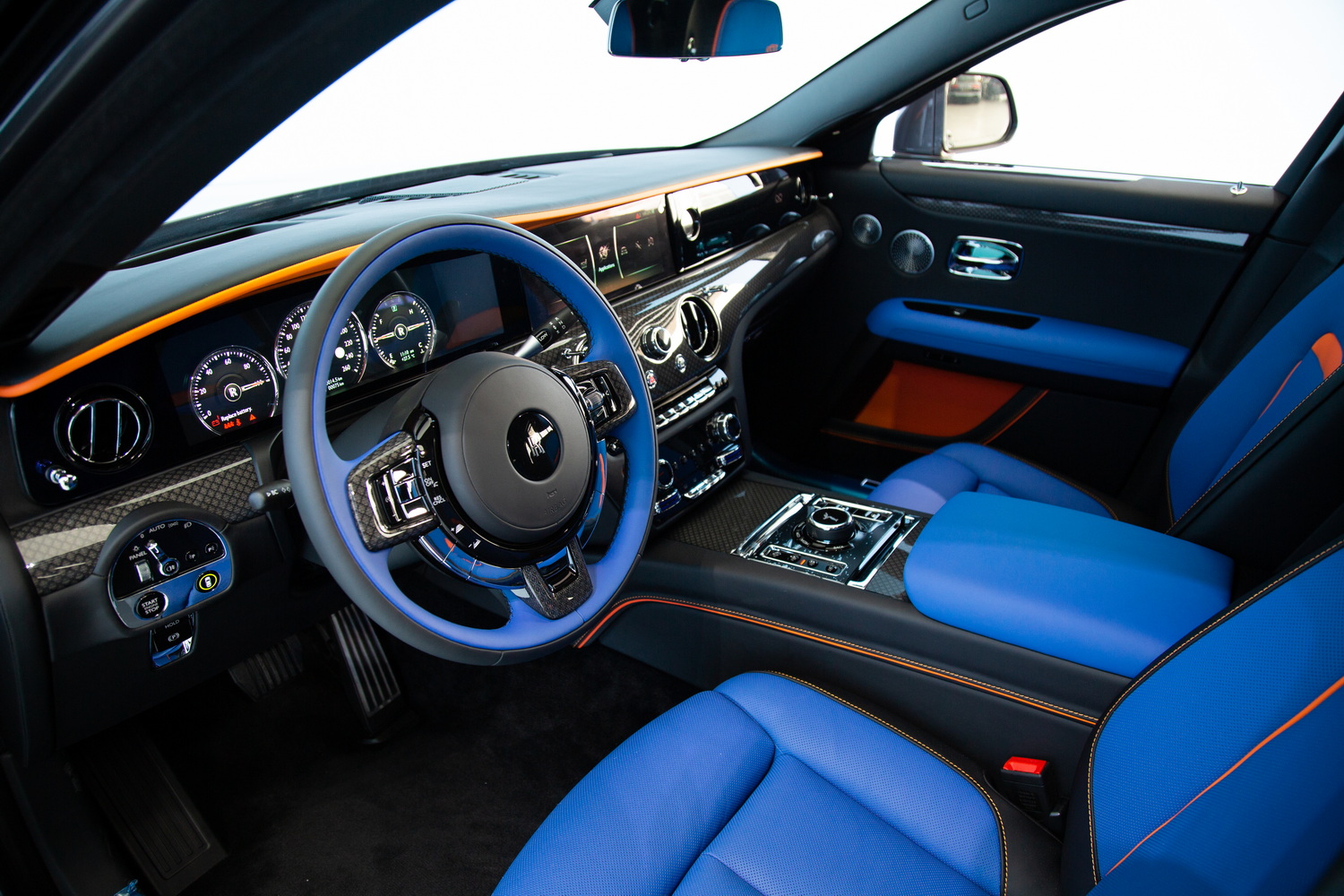 Indulge in a lavish experience with the rich cobalt blue interior, meticulously crafted and accentuated with mandarin detailing. Every detail within the Rolls Royce Ghost Black Badge is a testament to comfort and style, ensuring your journeys are as exquisite as your destination.