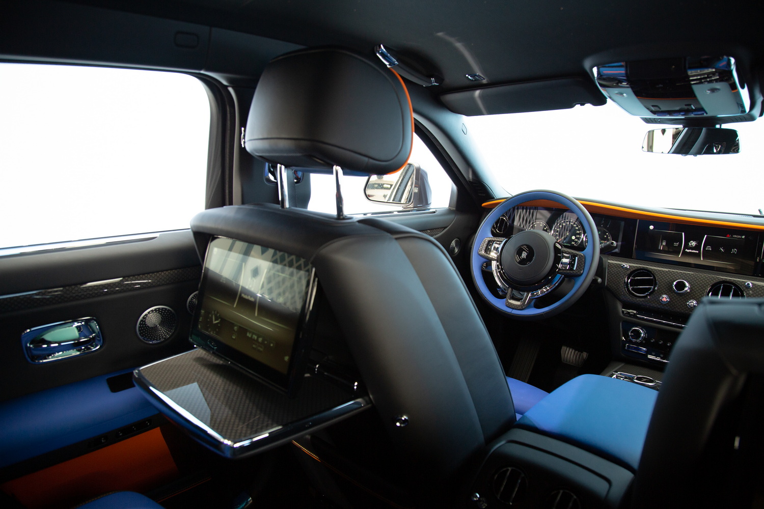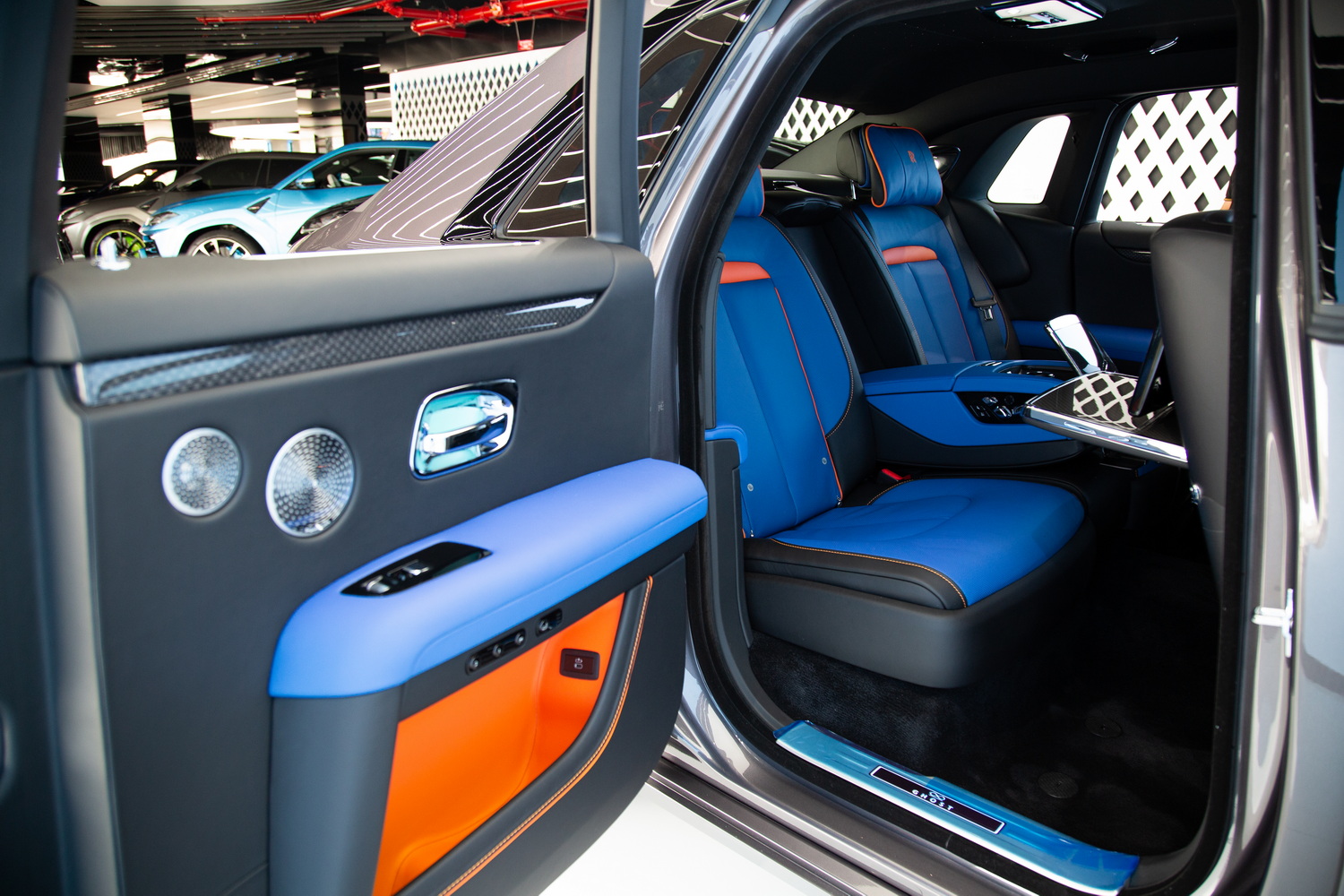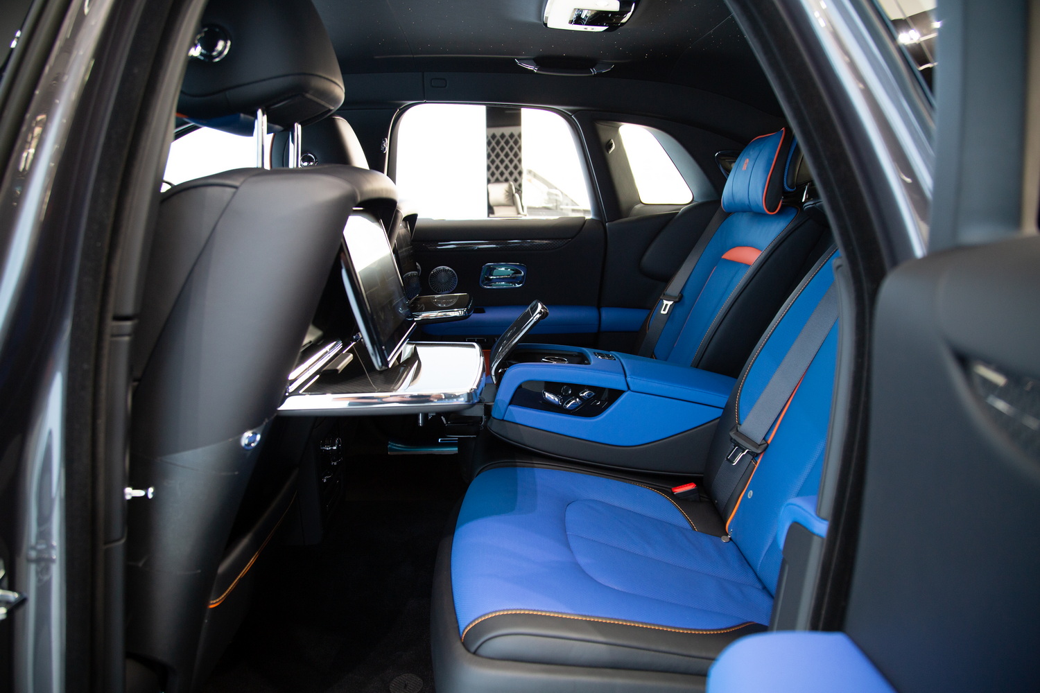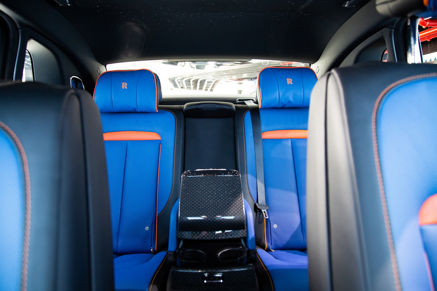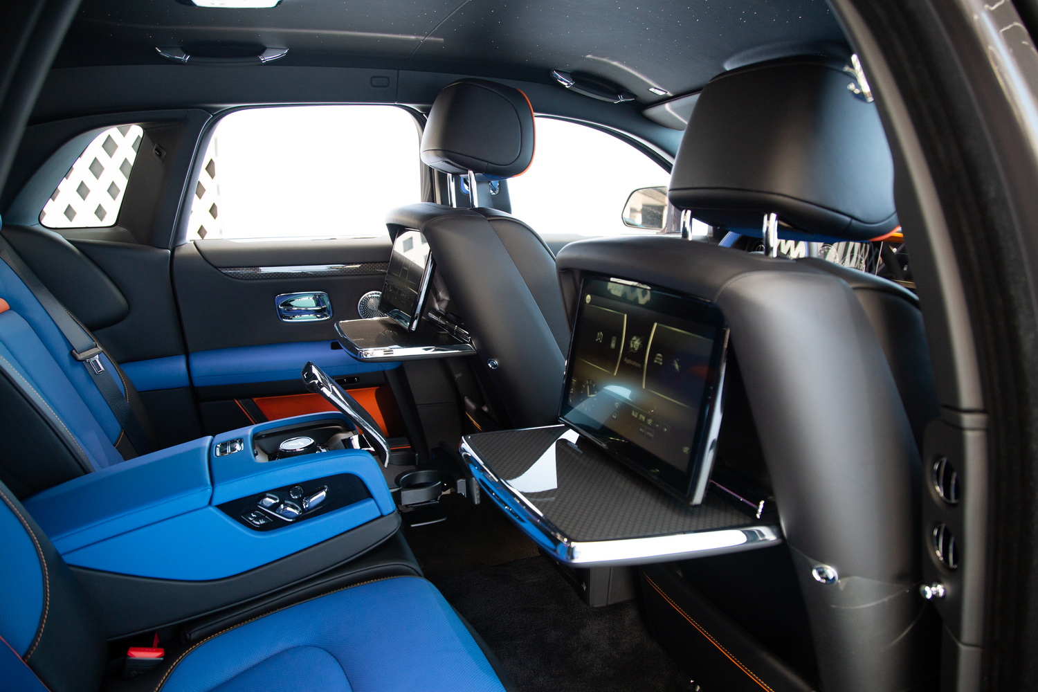 Indulge in a lavish experience with the rich cobalt blue interior, meticulously crafted and accentuated with mandarin detailing. Every detail within the Rolls Royce Ghost Black Badge is a testament to comfort and style, ensuring your journeys are as exquisite as your destination.