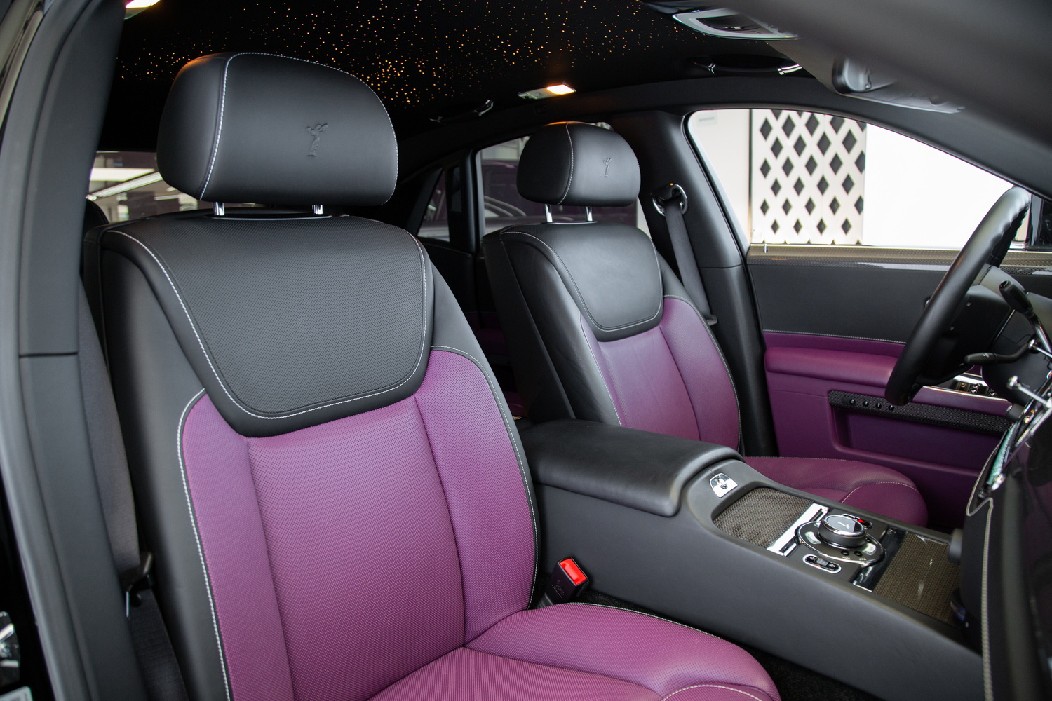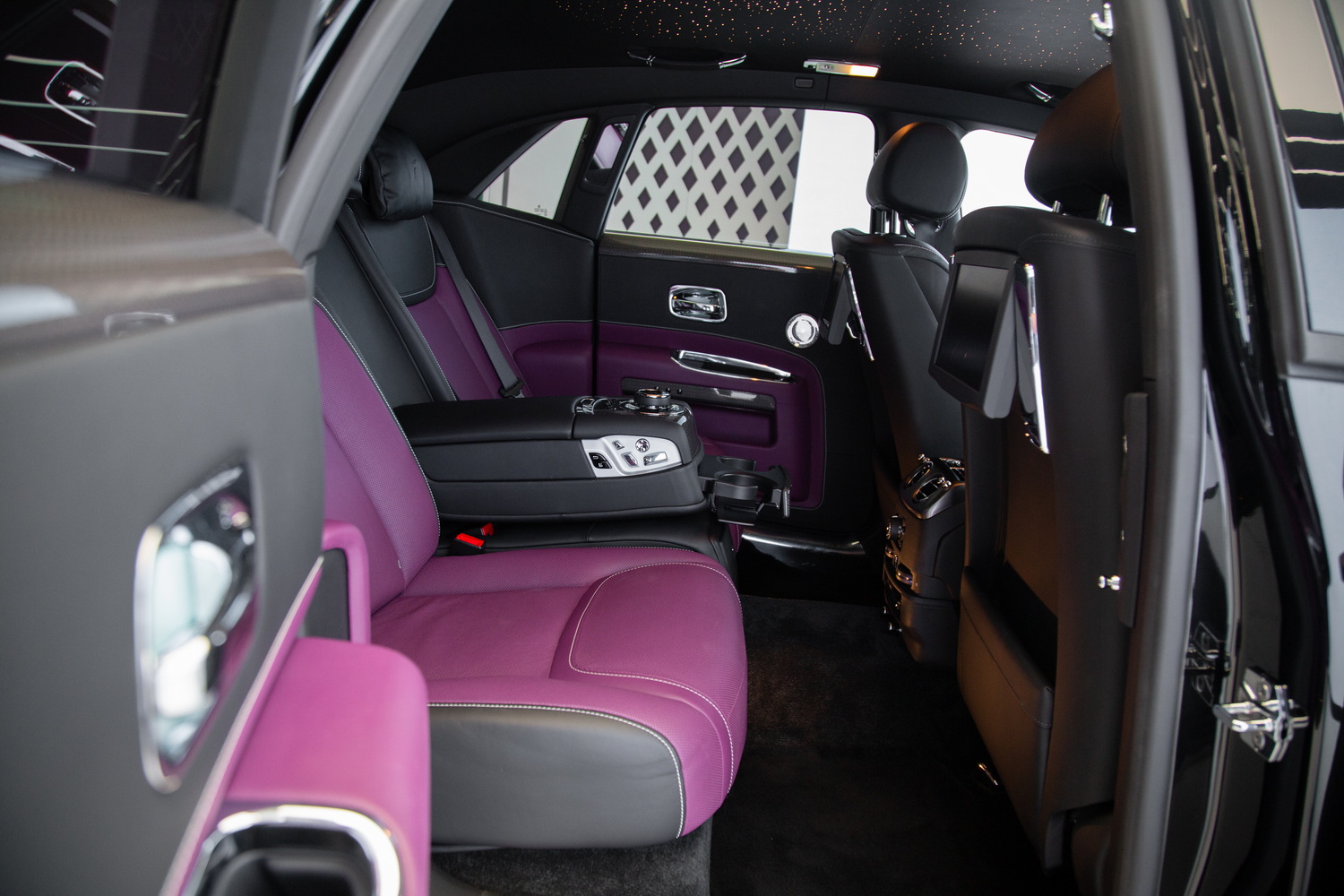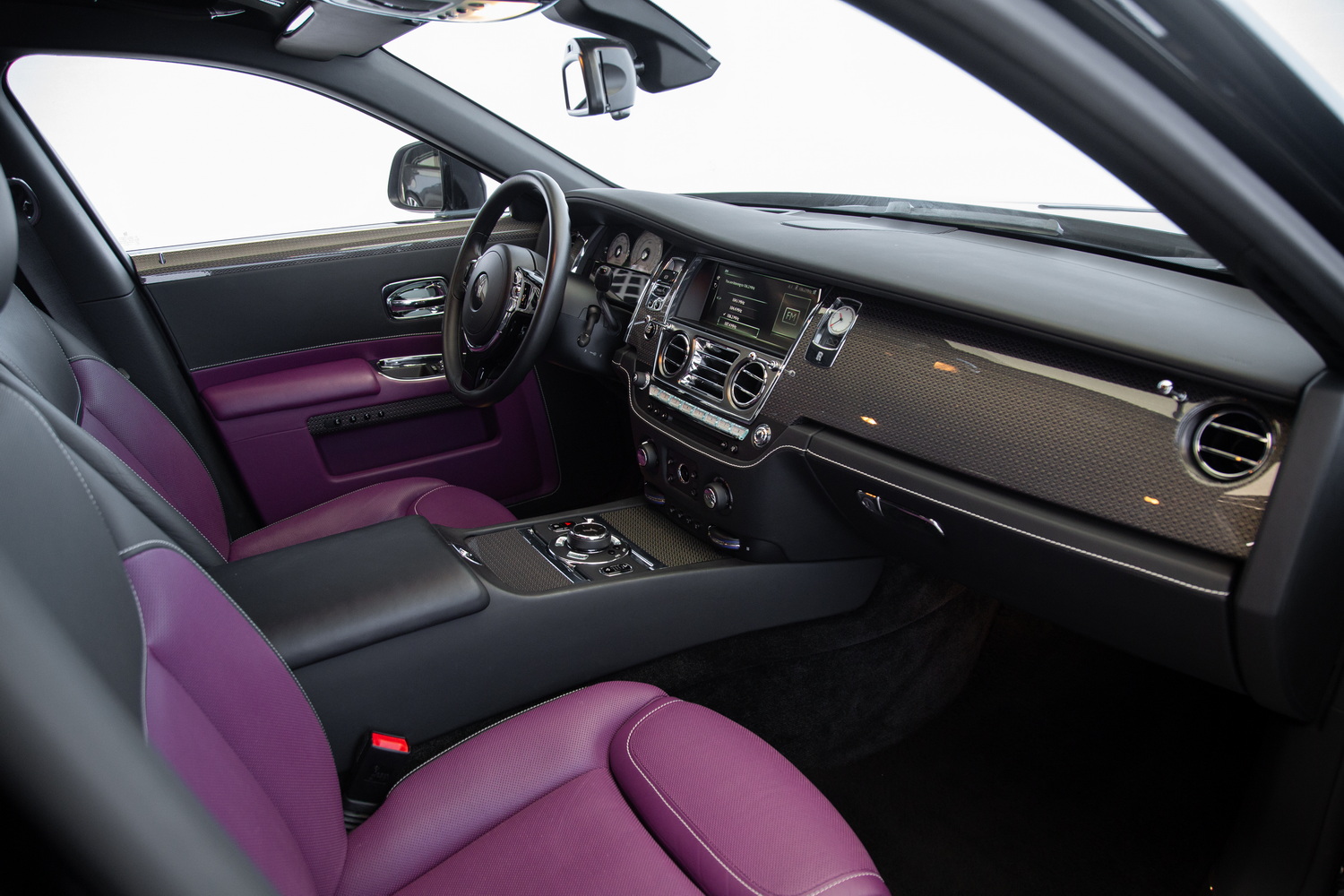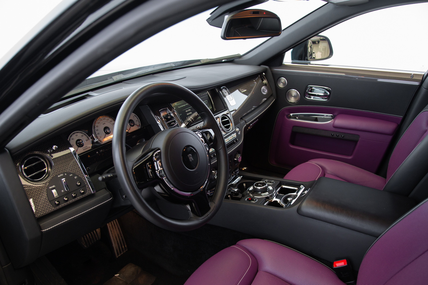 The 2018 Rolls-Royce Ghost Black Badge is designed for those who demand more than just luxury; they seek a vehicle that combines traditional elegance with a more assertive and powerful presence. The black exterior of the Ghost Black Badge exudes a timeless sophistication, while the unique purple and black interior creates a lavish and distinctive environment, showcasing Rolls-Royce's commitment to bespoke craftsmanship and luxury.