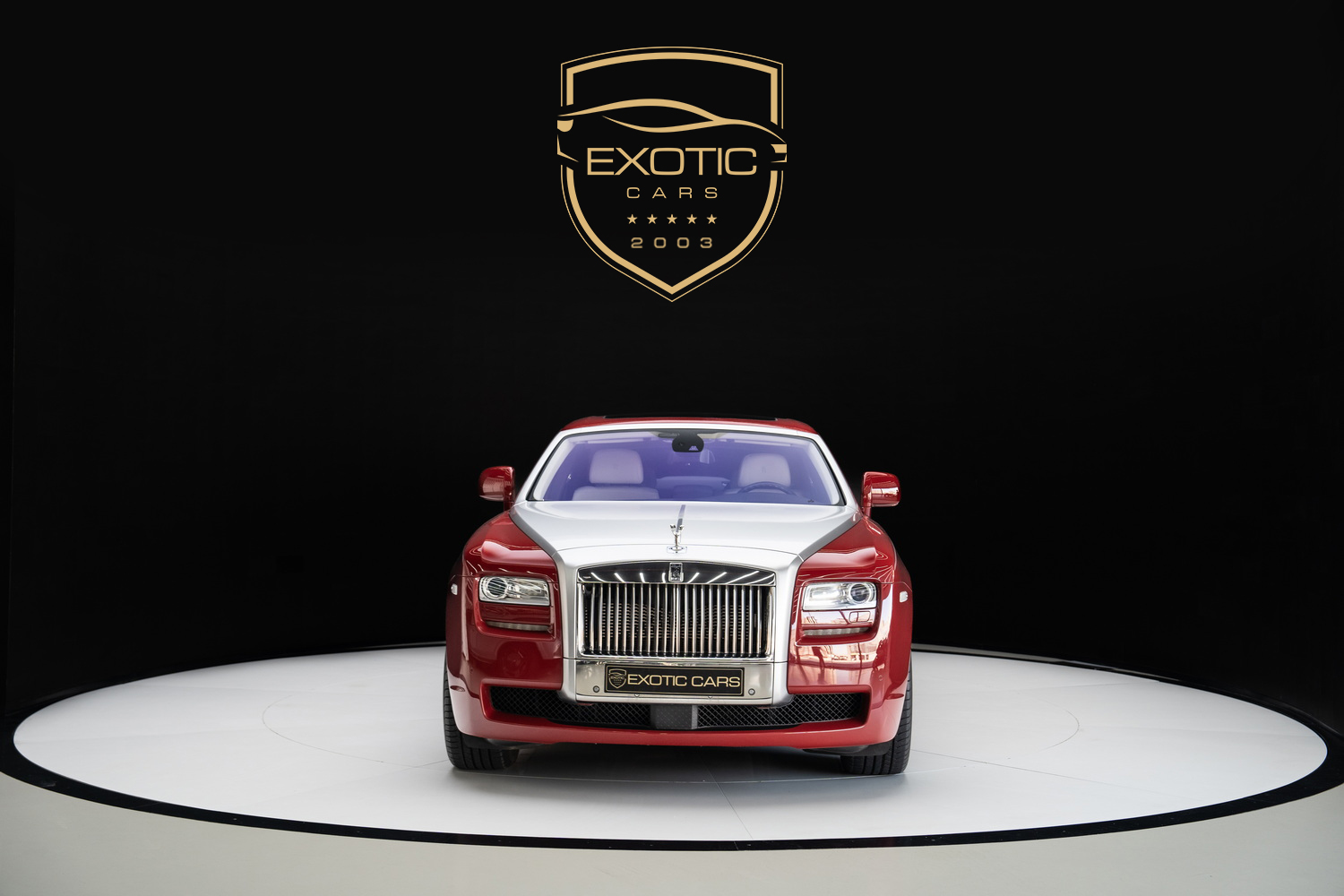 The 2011 Rolls-Royce Ghost, with its red exterior and ivory interior, is available for sale at Exotic Cars Dubai. This luxury sedan offers unrivaled elegance, supreme comfort, and an outstanding driving experience, making it the ideal choice for those who demand excellence.