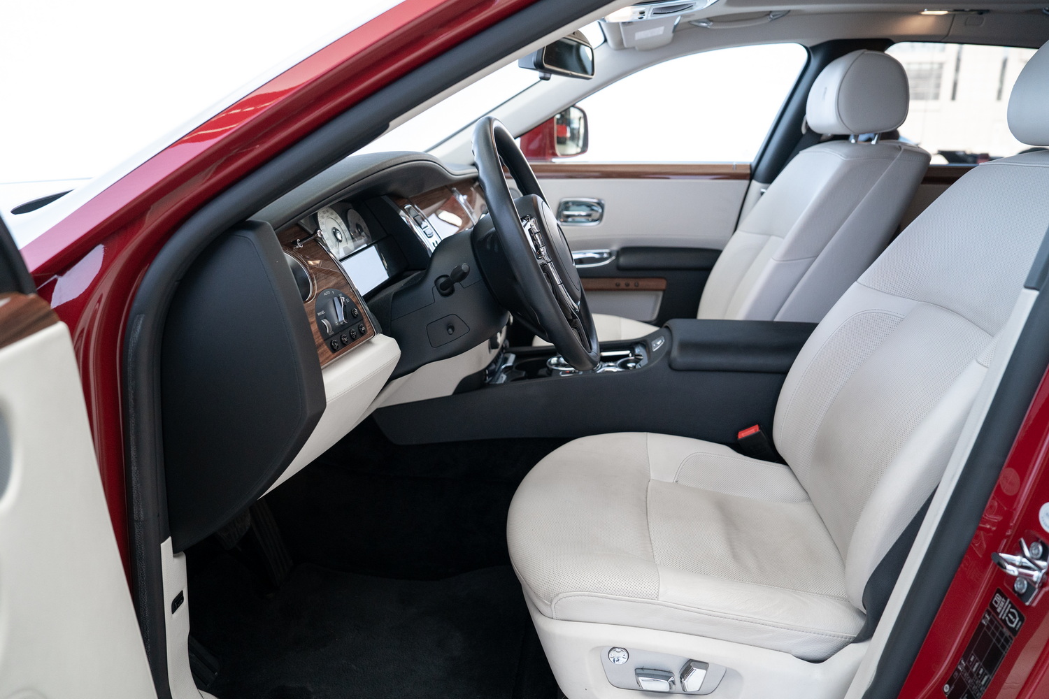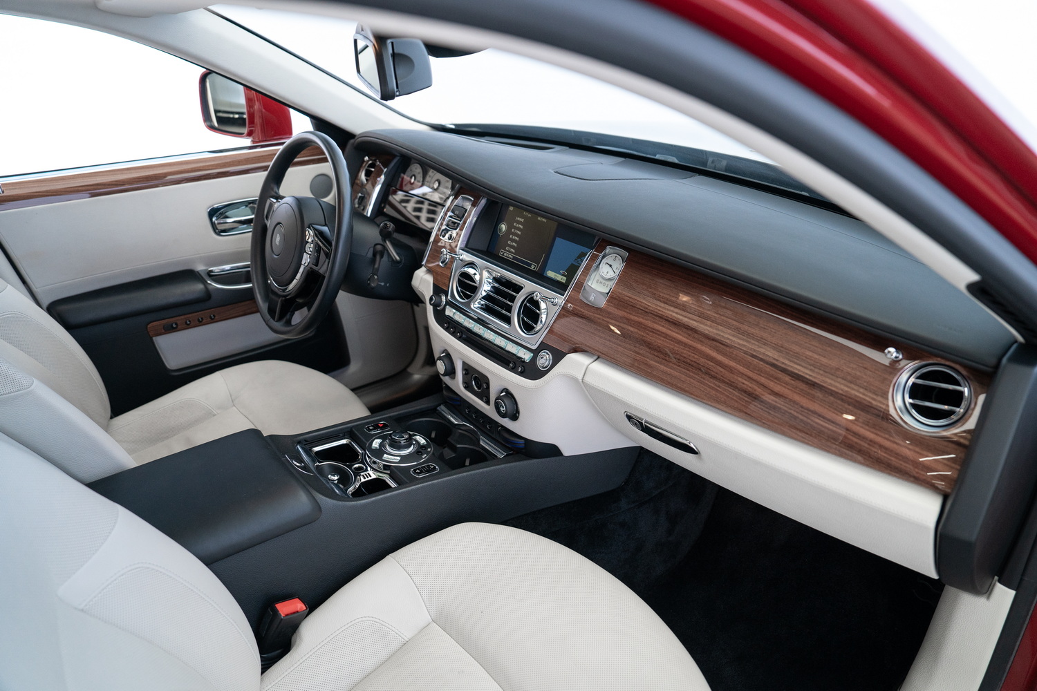 Step inside the 2011 Rolls-Royce Ghost and you'll be greeted by a beautifully appointed ivory leather interior. The opulent leather upholstery is complemented by soft wood veneers and refined accents, creating a serene and indulgent atmosphere. Every detail of the interior is designed with comfort and luxury in mind, ensuring that both driver and passengers experience an unmatched level of refinement. The rich, sophisticated hues of the ivory interior provide the perfect contrast to the bold red exterior, offering a harmonious balance of elegance and class.