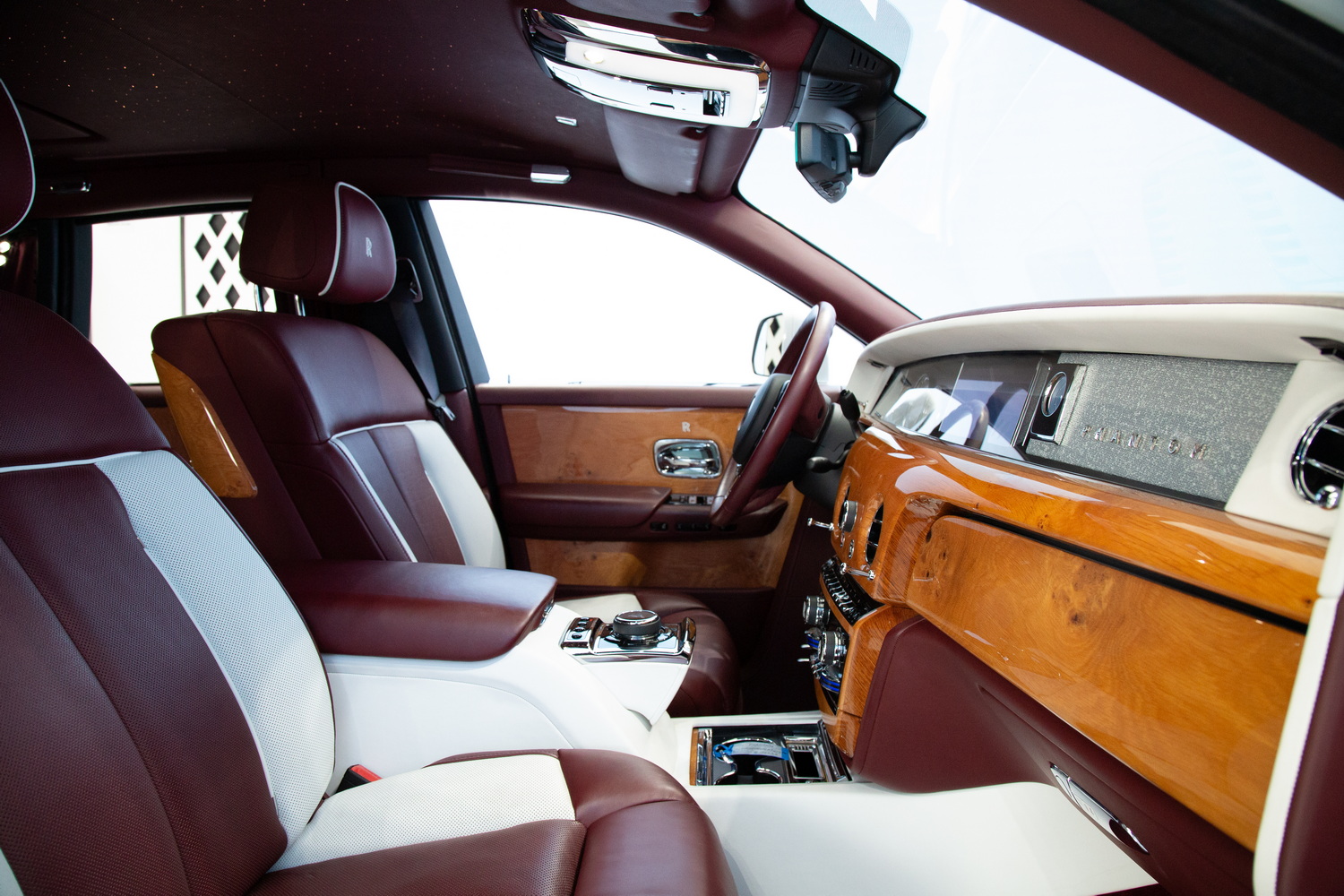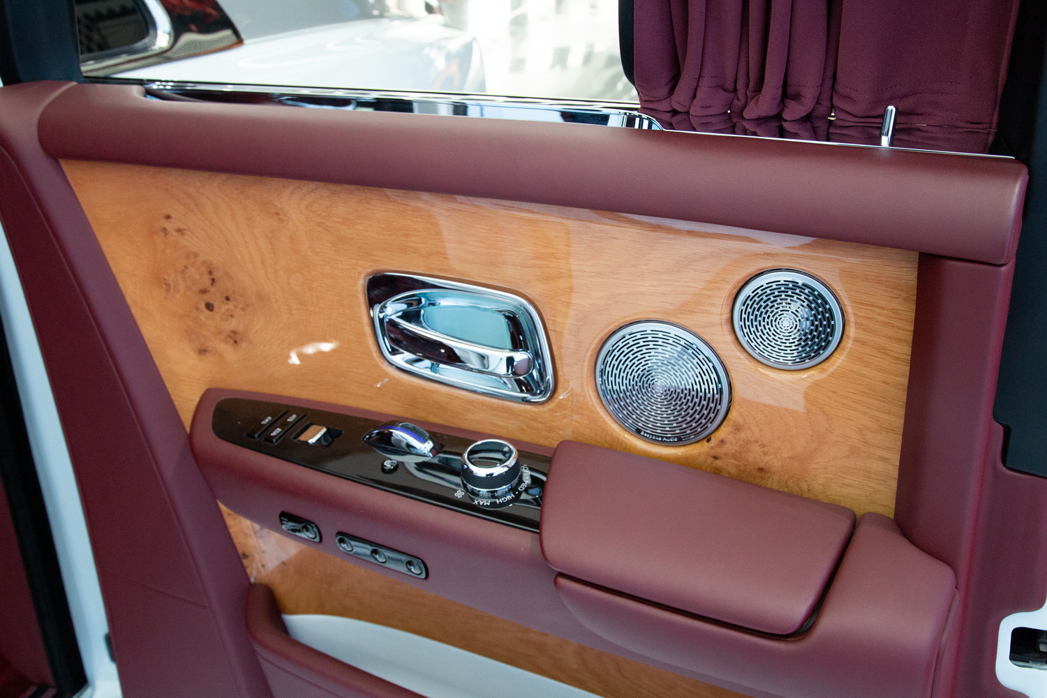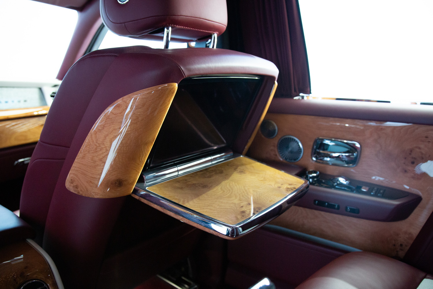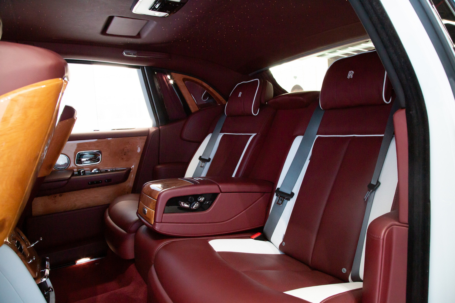 Step inside the lavish interior, where opulence takes on new meaning with a two-tone red and white palette. Bespoke audio envelops you in a symphony of sound, while the rich wooden trim adds warmth and texture to the surroundings. Privacy curtains ensure that every moment within the Phantom is a private sanctuary, far removed from the outside world.